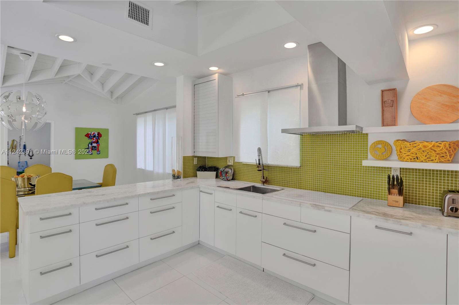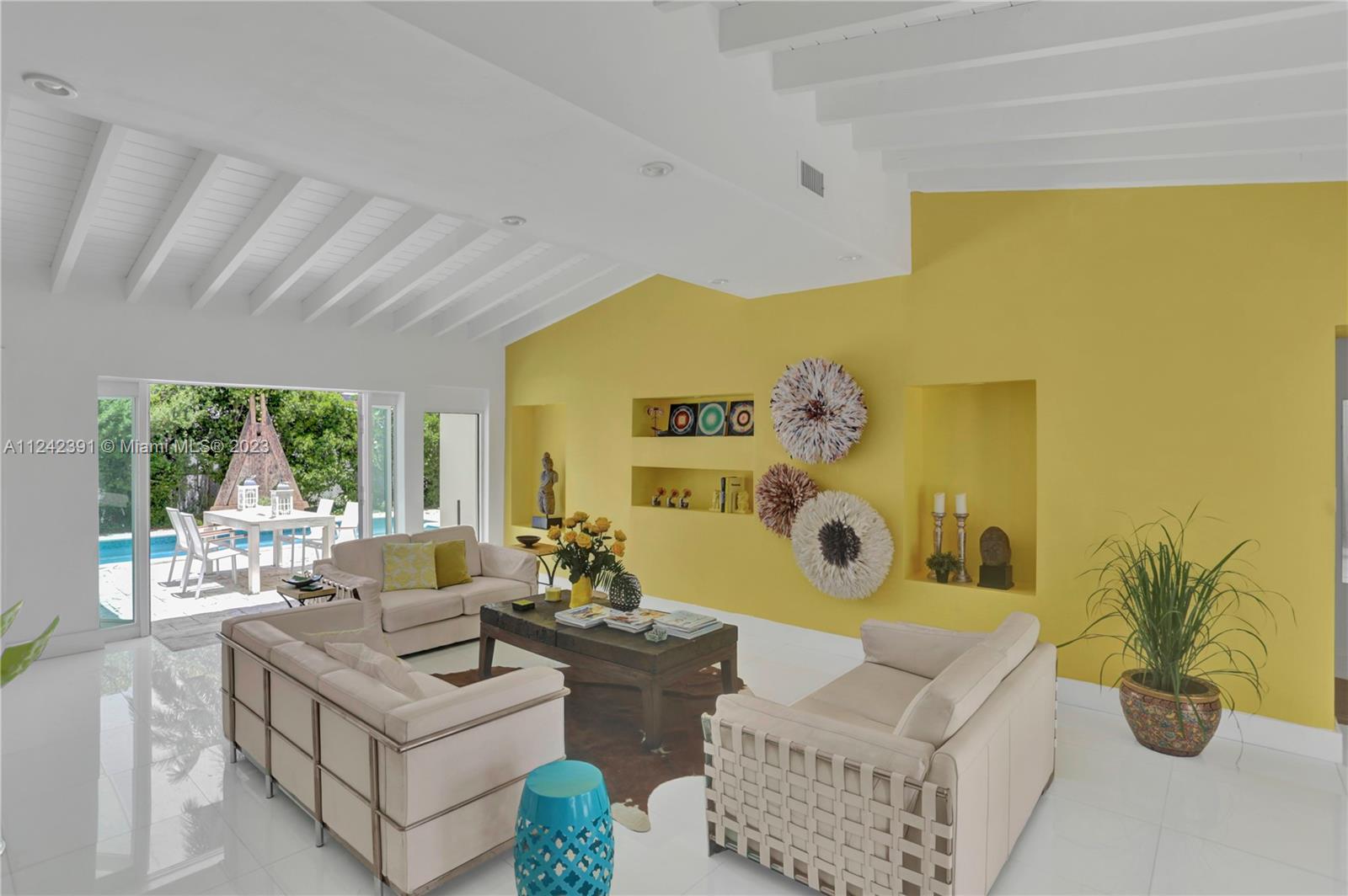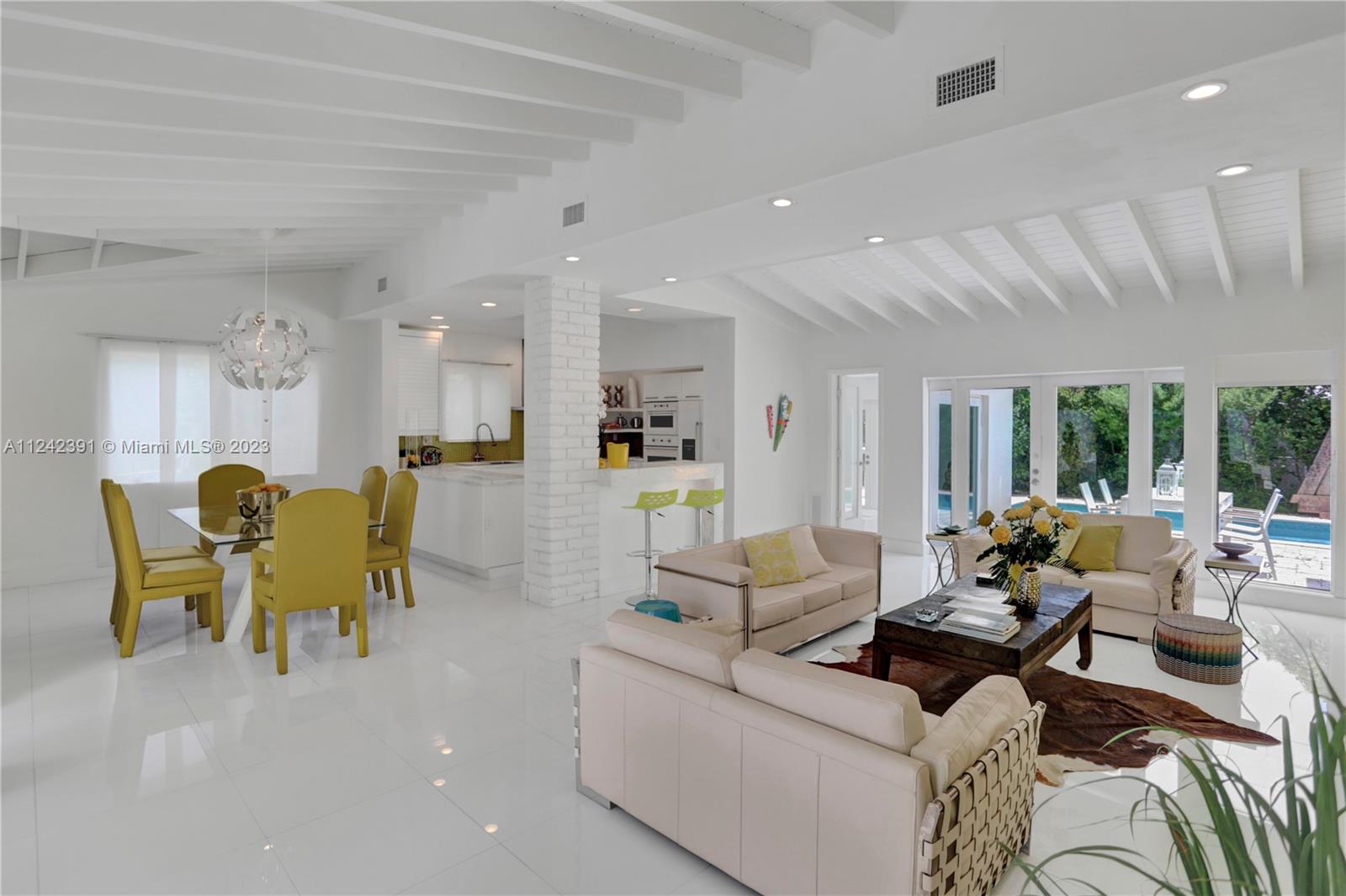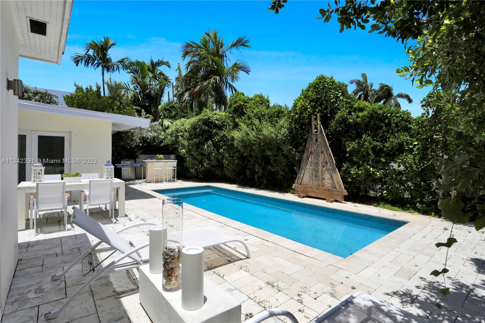The hidden Oasis! Its a Jewel. With 4 BR 2 Baths this dazzling Designer Home blends itself beautifully to a variety of Decors from mid-century modern to more exotic looks from different regions of the Globe. It is a collective Fusion which creates a warm whimsical Environment that you can call home. Enjoy chilling on the Pool with multiple fountains, having BBQ on the Patio with Friends. Enjoy entertaining Evenings from the open Kitchen and Dining Area looking out to the expansive Pool Area. This house will be your wonderful retreat.