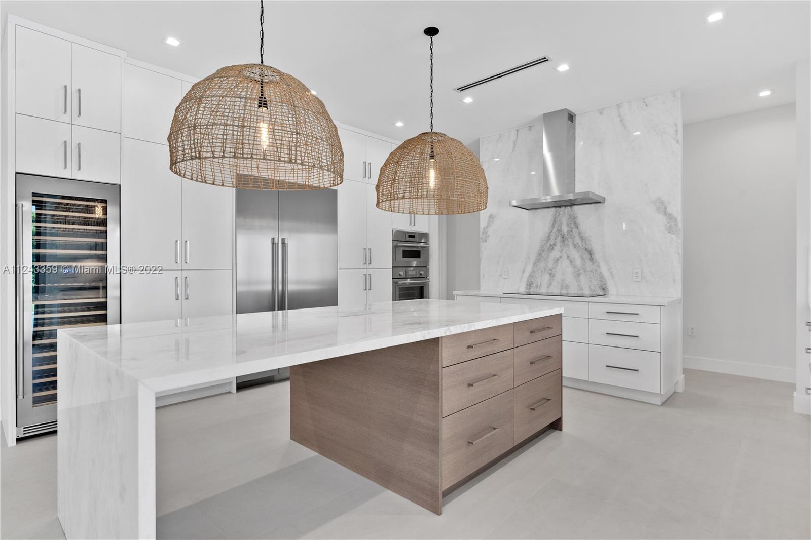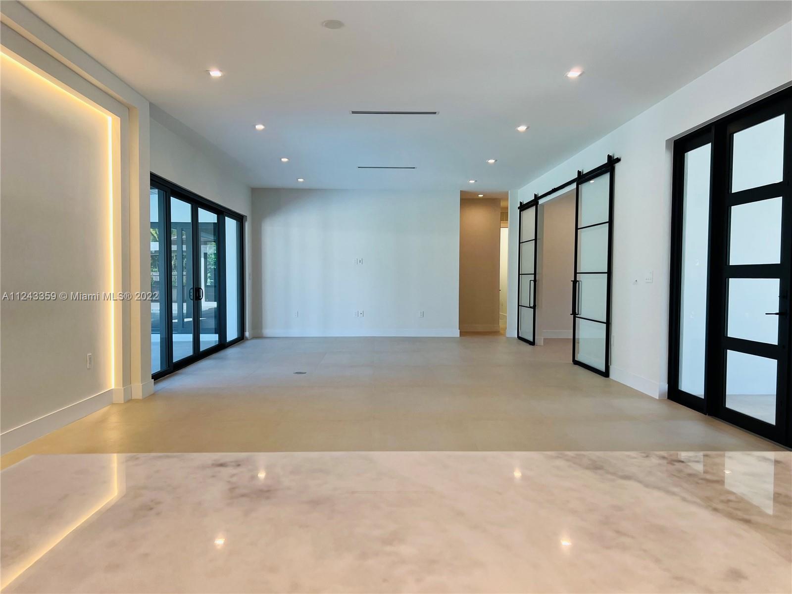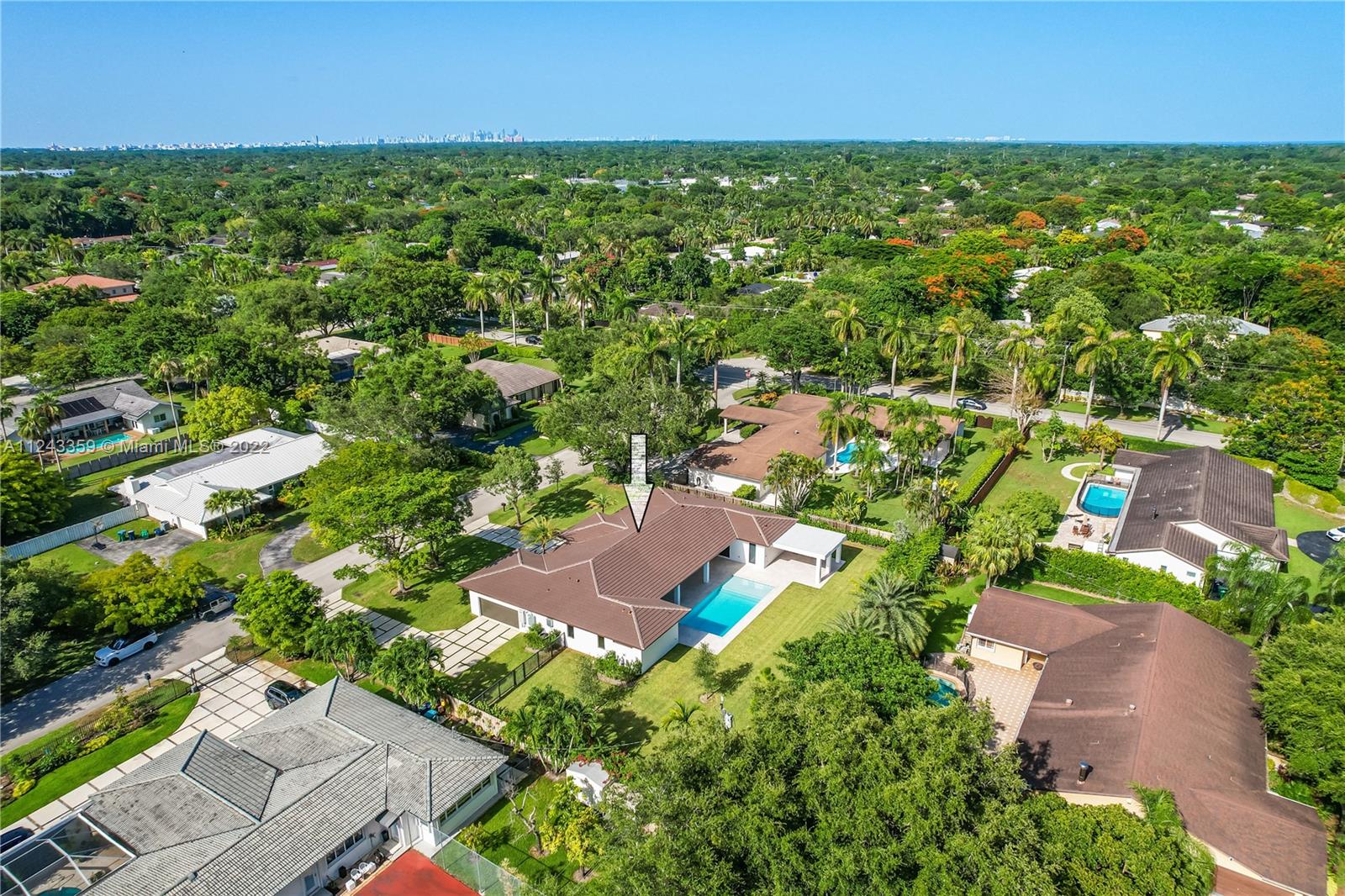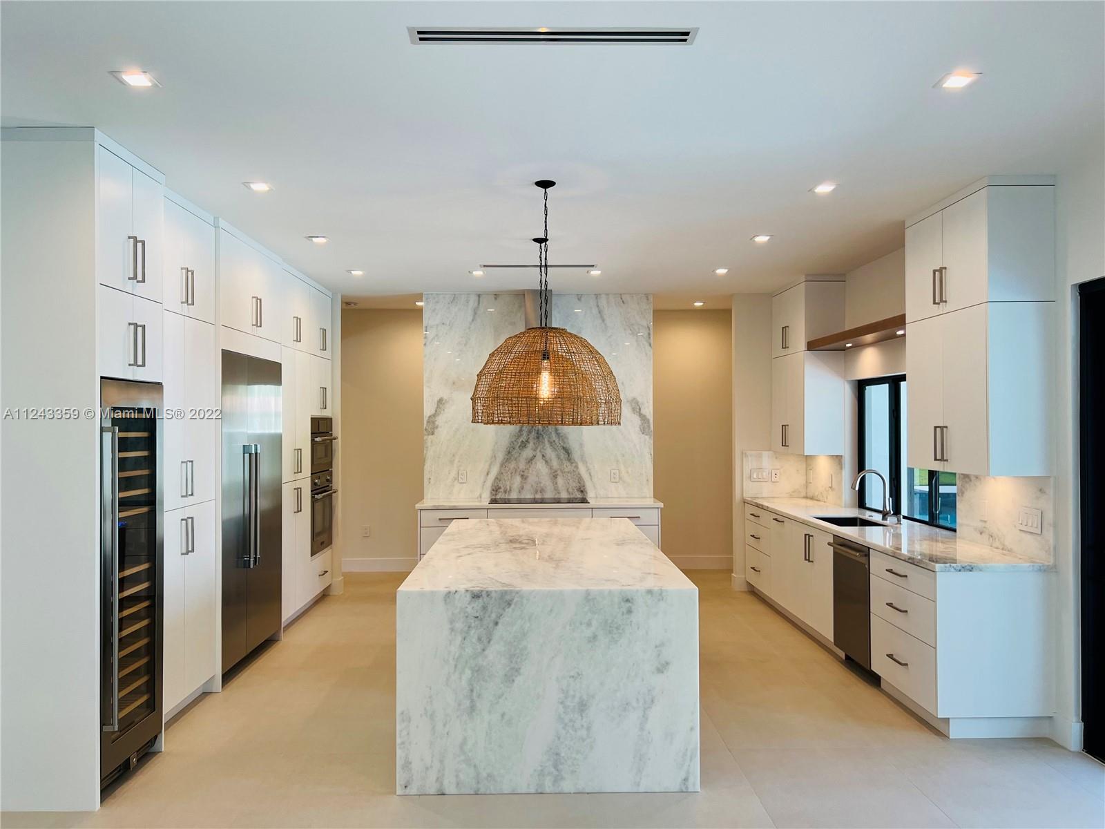 Transforming Miami into a New Level of Leisure. One of a kind 2022 new construction move in ready home located in a peaceful street in the heart of Pinecrest. Over 4K sq feet in a 0.5-acre lot featuring 4 ample bedrooms with modern design bathrooms ensuite and a powder room. Vibrant and luminous open spaces with 10 ft ceilings. The aesthetic is warm whites and rich woods rooted in the essence of graceful minimalism. Masterful selection of fine fixtures and finishes: contemporary gourmet open kitchen, oversize island finished with handpicked natural stone; fully equipped with luxury Thermador® smart appliances, dual zone wine cooler, handcrafted cabinetry, ambient lighting throughout the home. Exterior lounge, summer kitchen, turquoise 16 X 37 pool with a saltwater system and Baja shelf.