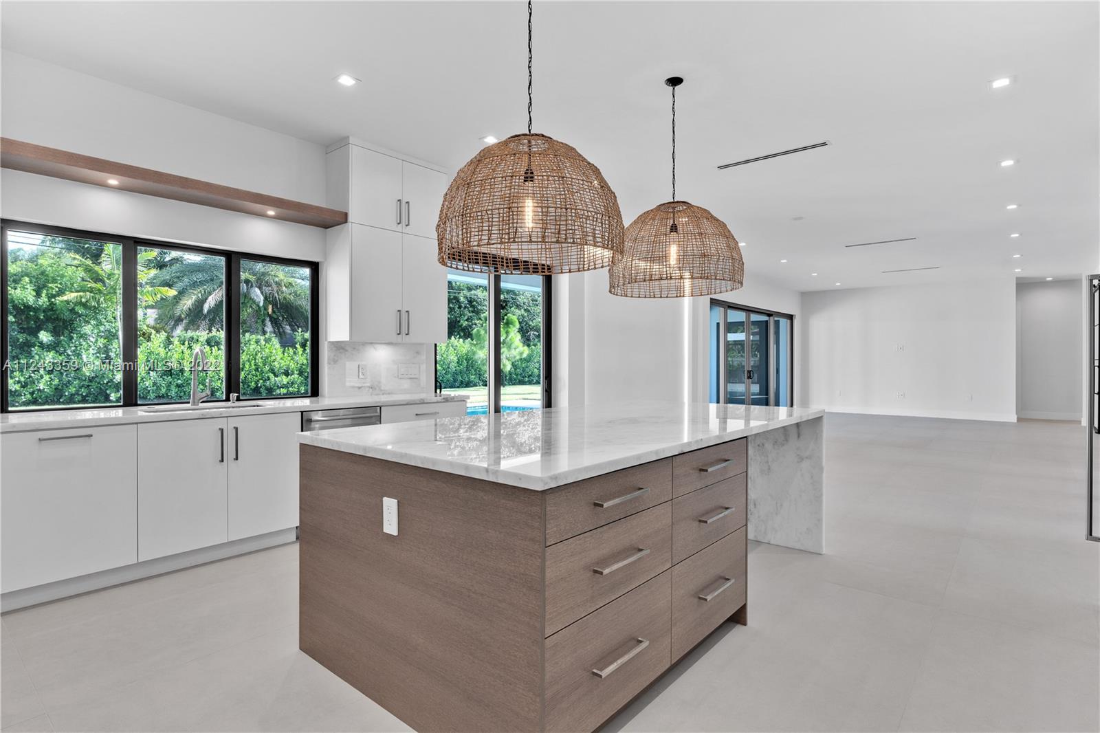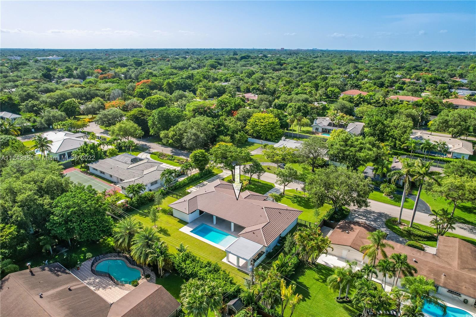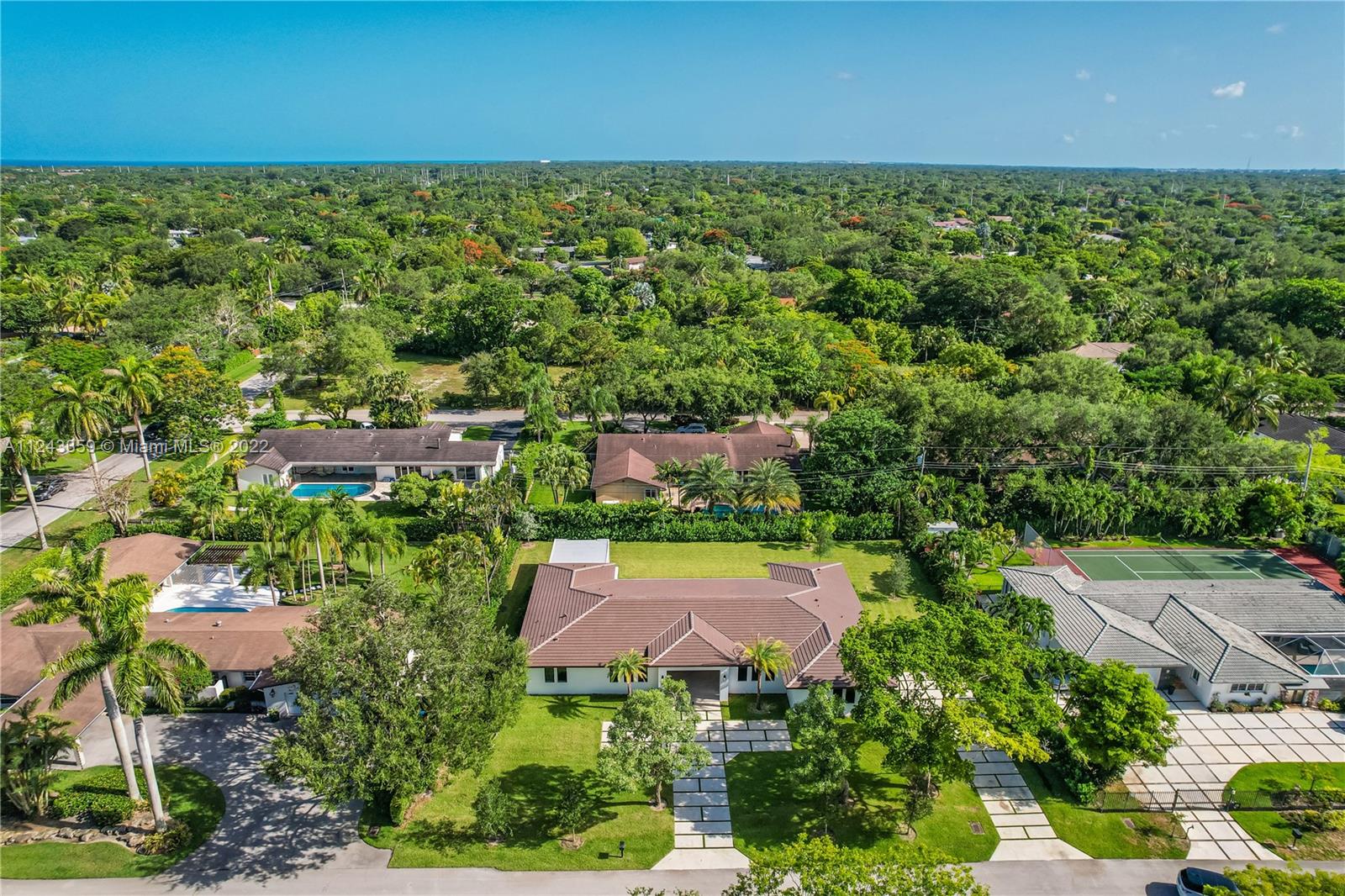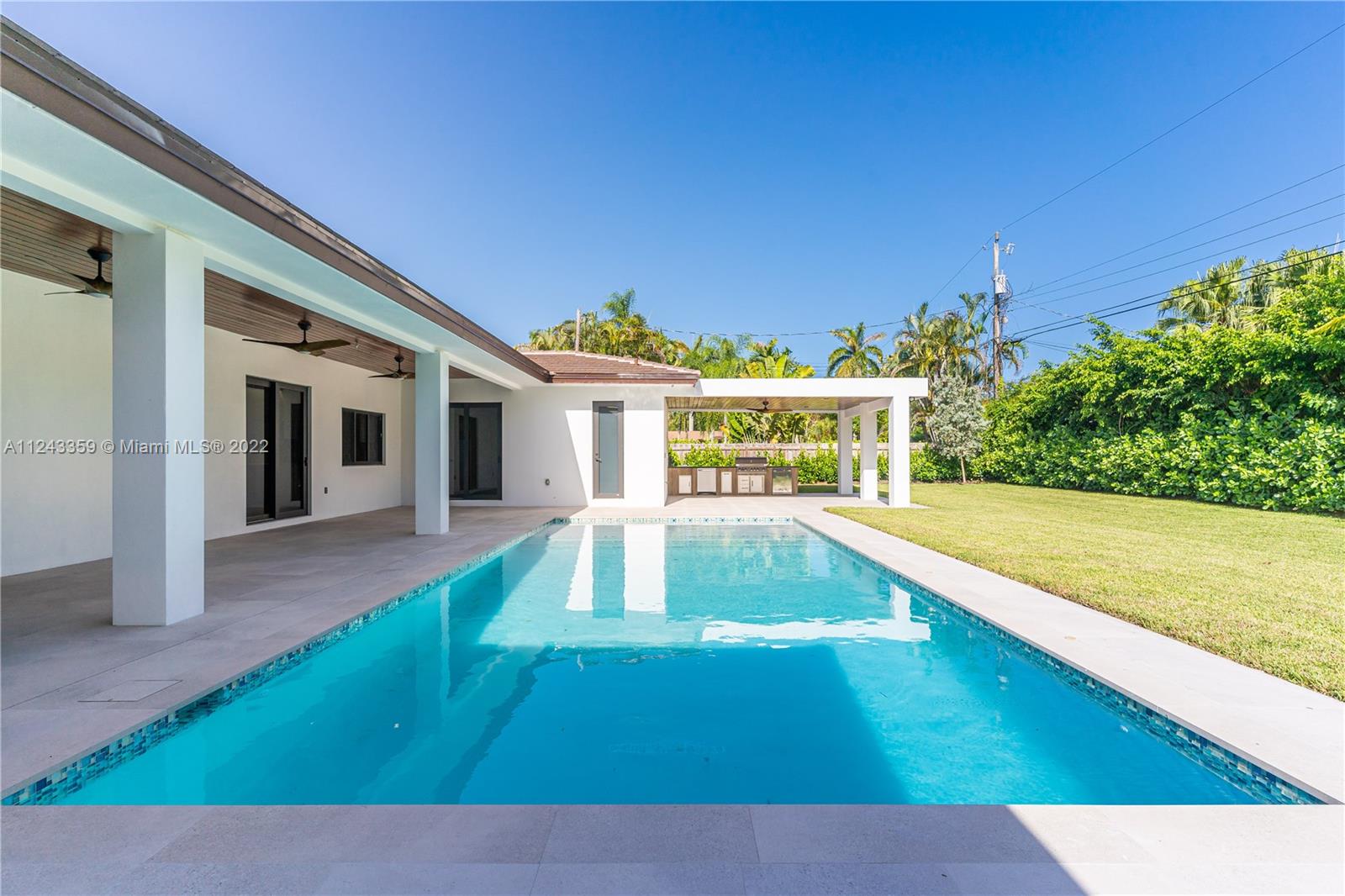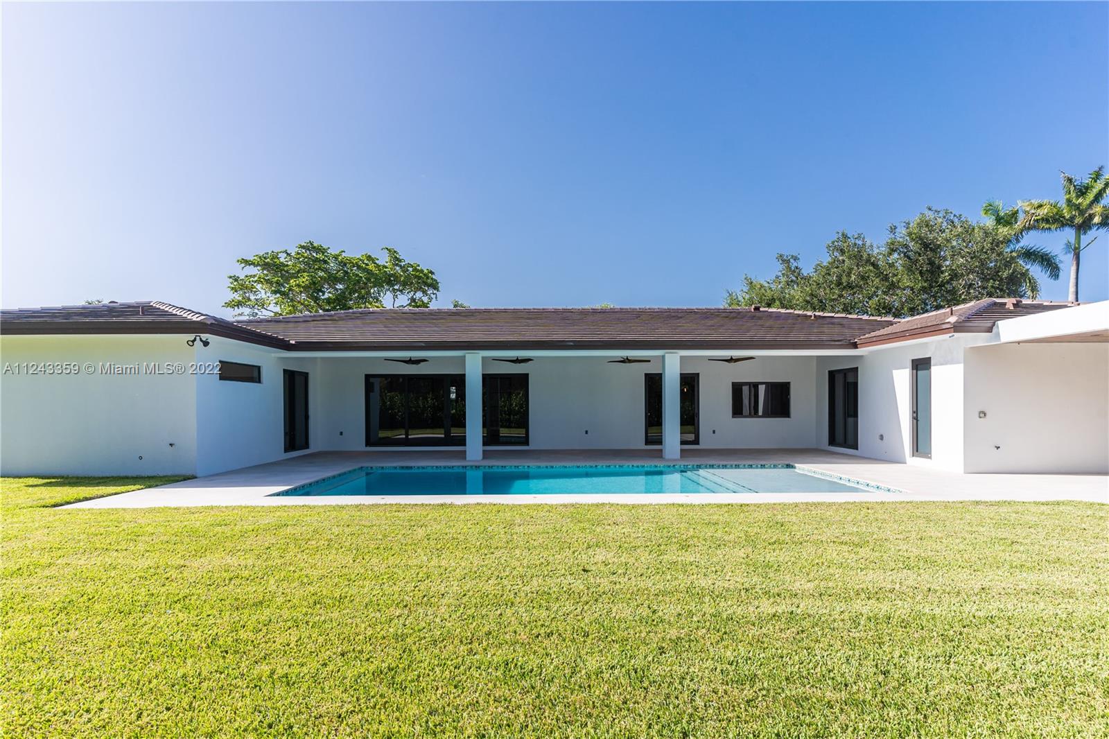 Transforming Miami into a New Level of Leisure. One of a kind 2022 new construction move in ready home located in a peaceful street in the heart of Pinecrest. Over 4K sq feet in a 0.5-acre lot featuring 4 ample bedrooms with modern design bathrooms ensuite and a powder room. Vibrant and luminous open spaces with 10 ft ceilings. The aesthetic is warm whites and rich woods rooted in the essence of graceful minimalism. Masterful selection of fine fixtures and finishes: contemporary gourmet open kitchen, oversize island finished with handpicked natural stone; fully equipped with luxury Thermador® smart appliances, dual zone wine cooler, handcrafted cabinetry, ambient lighting throughout the home. Exterior lounge, summer kitchen, turquoise 16 X 37 pool with a saltwater system and Baja shelf.