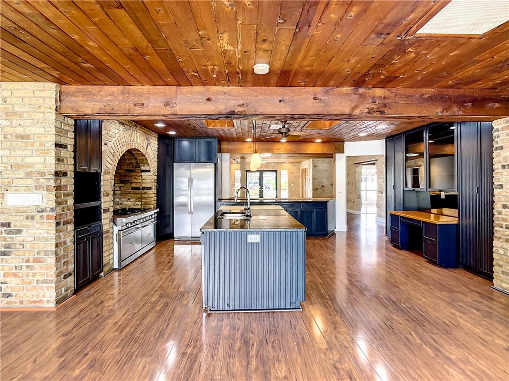 Charming and spacious 5 bedroom, 3 bathroom home perfect opportunity for a large family to make their own special touches, or for an investor to completely remodel. Wood ceilings, custom Brick walls throughout, travertine/stone accent walls. Open brick kitchen with commercial gas oven, flat-top grill/6 burner sauté station, wood cabinets, brick wine rack built into the wall of Florida room. Updated bathrooms, roof and hot water heater replaced in 2020. Completely fenced in corner lot, spacious backyard perfect for entertaining your guests complete with pool and a travertine deck.