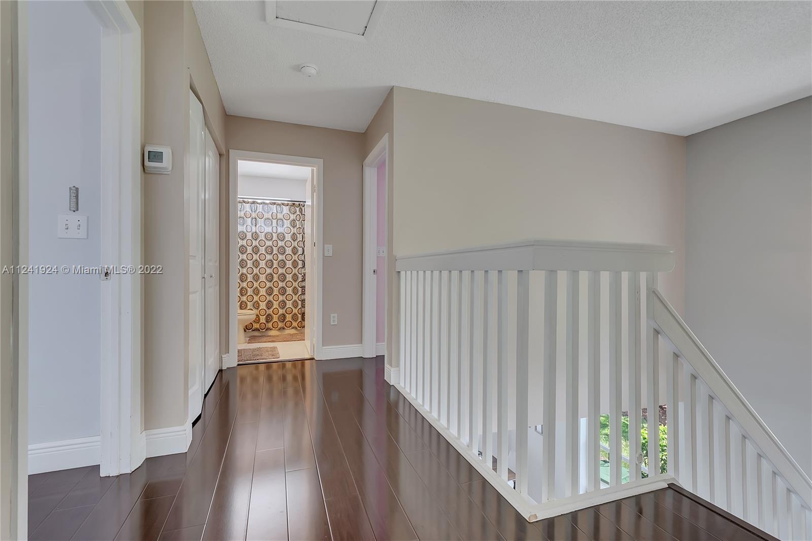 Gorgeous corner lot unit in the West Pembroke Pines neighborhood of Park Crossing inside Towngate. This features lots of windows with all the natural light you could want. 24x24 porcelain tile on 1st floor & laminate is on stairs and 2nd level. The kitchen boasts it's upgraded all white shaker cabinets with granite countertops. All stainless steel appliances. The backyard has all artificial grass. You also have access to the private, gated common area as you walk out of your back gate. Home comes with a one car garage converted in a bedroom and laundry room. Driveway safely fits 5-6 cars. HOA covers all roof maintenance and repairs as well as yearly pressure cleaning. Fantastic neighborhood, filled with kids and a great place to call home!
