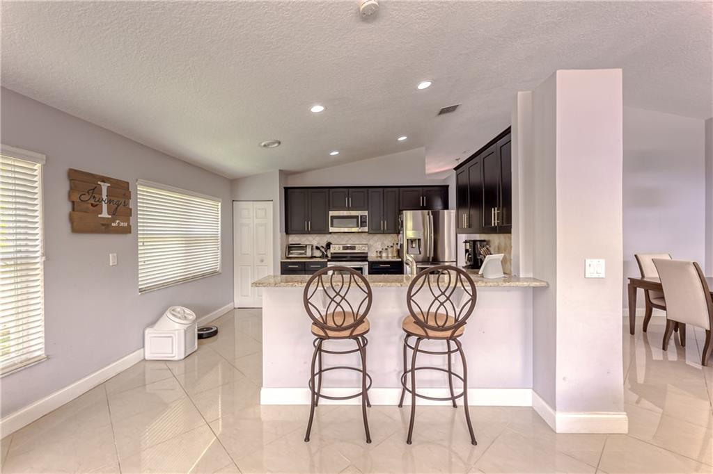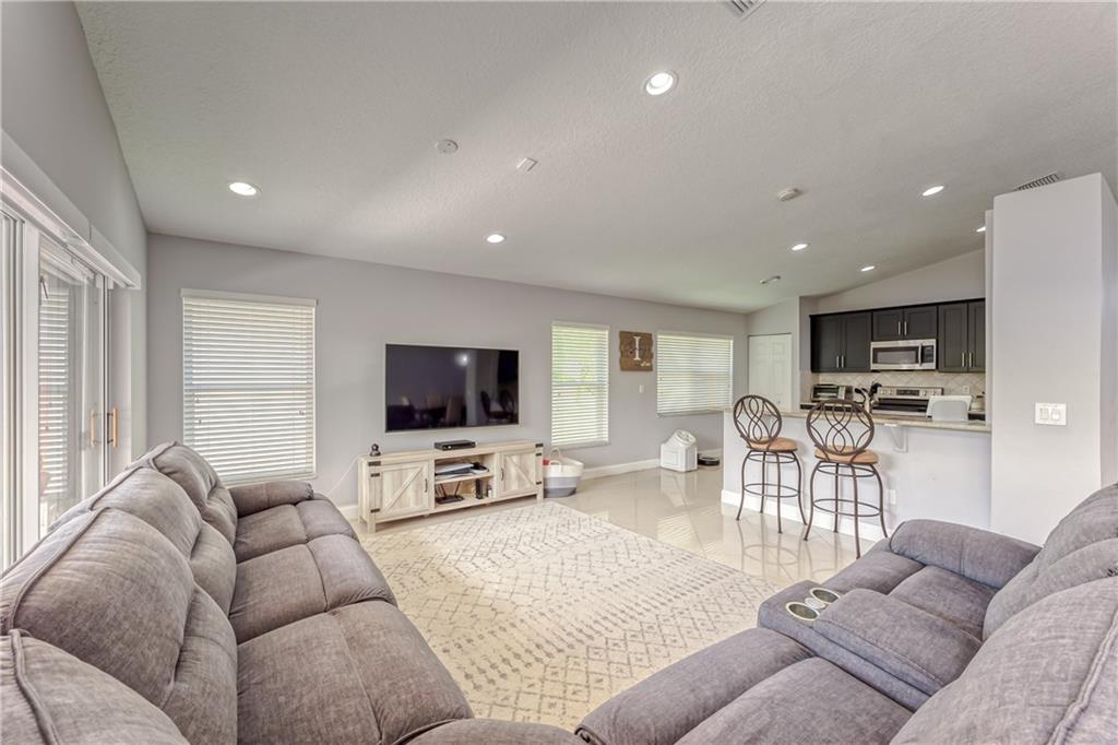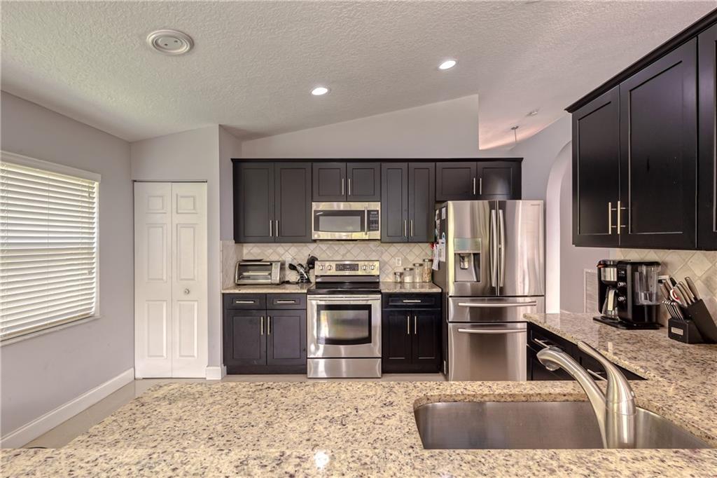 Renovated 3 bed, 2 bath, 2 car garage, split floor plan, in an all ages gated community. Enjoy the open living areas w/ volume ceilings, great natural light, & large sliding doors to the back yard. Updated & open kitchen features espresso cabinets, granite counters, stainless appliances, pantry storage, breakfast bar & recessed lighting. The open kitchen, large living area & formal dining room make an ideal space for entertaining. Marble flooring throughout the living areas & rich engineered wood in the bedrooms. Large primary bedroom has volume ceilings, 2 walk in closets, double vanity, separate tub & shower, linen closet, & more.