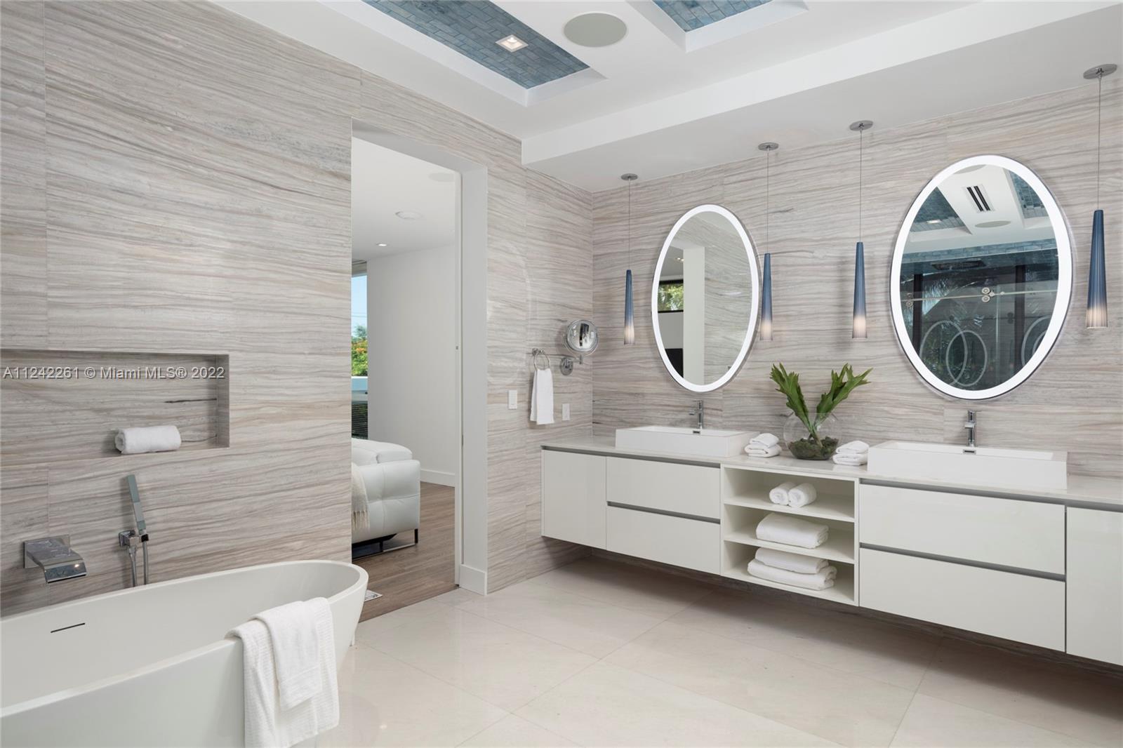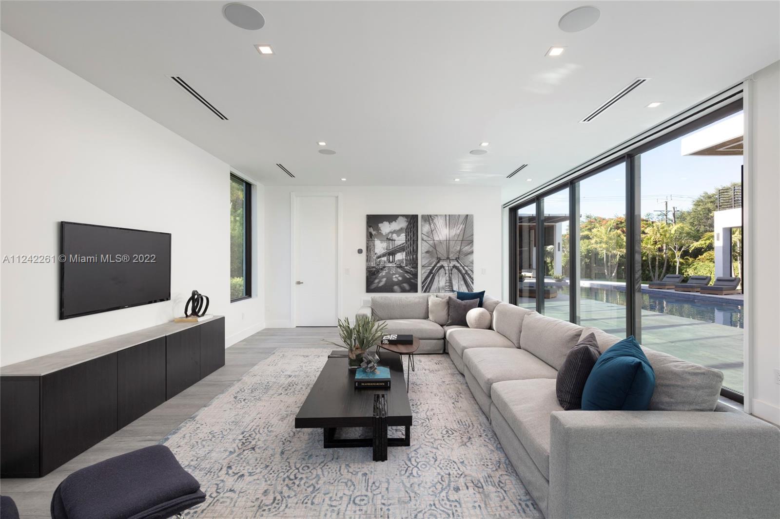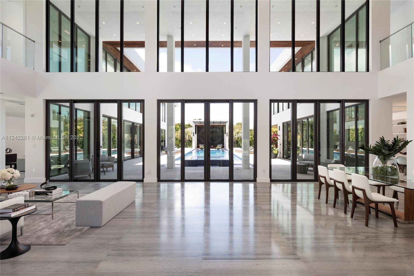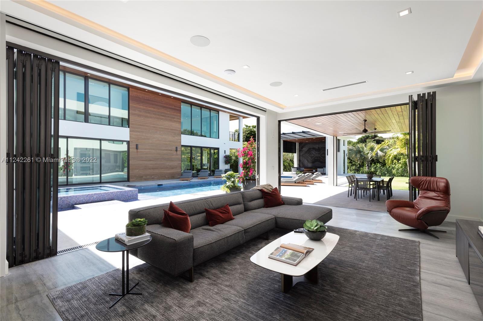 A North Pinecrest modern masterpiece that effortlessly blends elegance and nature. Through walls of glass, take in 360 views of tranquil water elements, sunlight, and foliage. Newly completed, this estate features smart home technology, high end finishes, home theater, elevator, large den, two driveways & thoughtful extras. The 1,300 SF primary suite will exceed expectations with wraparound windows, sitting area, spa-like bathroom & walk-in closet with laundry. Experience seamless indoor/outdoor living with folding glass doors opening to your 75’ tiled pool and jacuzzi, summer kitchen with electric screens, and cabana with dramatic marble slabs & full bath. Wood and lighting accents flow from outside to in, adding warmth to the sleek design. This Pinecrest home is in a class all its own!