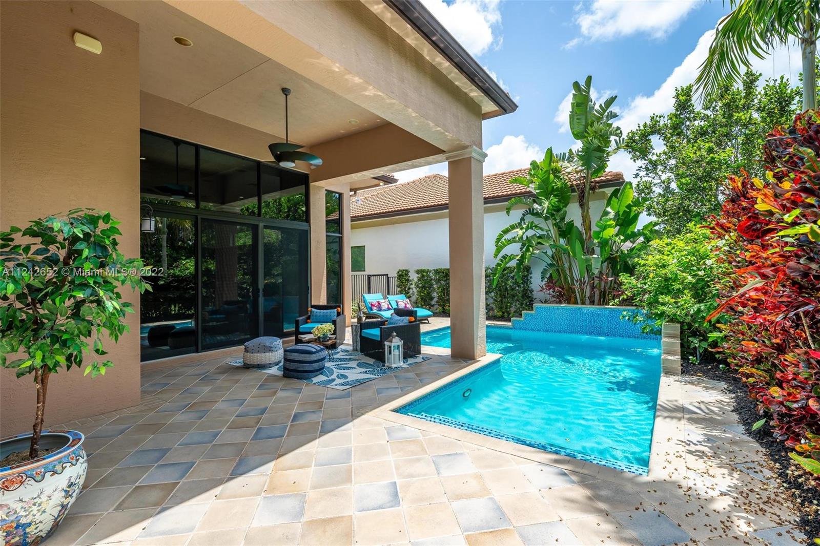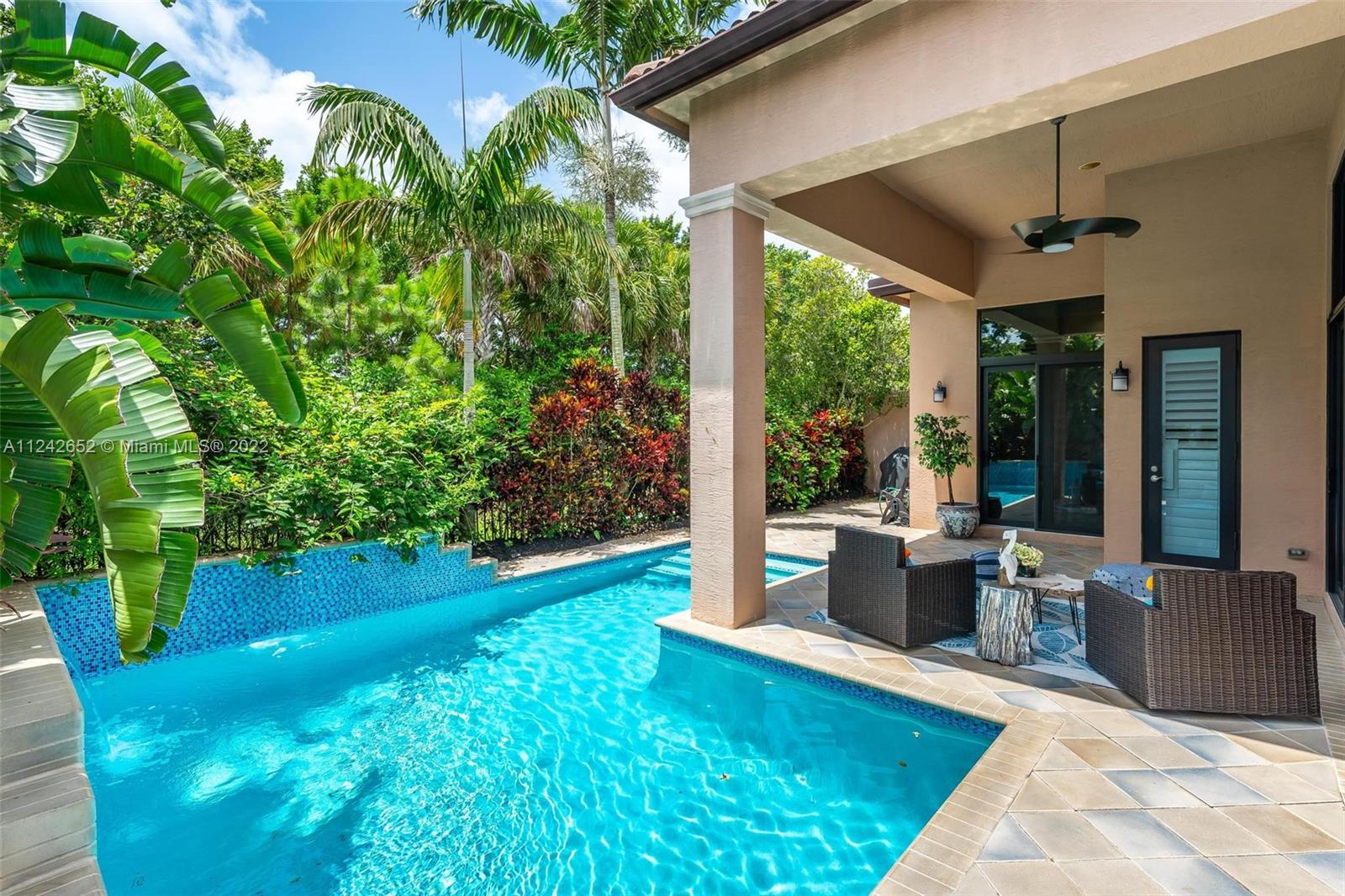 Bright and upgraded ONE story pool home with 3 en-suites, powder room and cabana bath, located at one the most exclusive communities in Boca Raton, restaurants, bars, pool, spa, tennis courts, club house, gym classes, pilates, events, truly a 5 * resort living! White porcelain tile throughout, solid wood custom cabinetry, smart home features, start of art surround system, chef's kitchen with top of the line appliances, kitchen-aid gas stove ang fridge, impact windows and doors. This beautiful house offers you volume ceilings, generous over 3,400 sqft lay-out gives you a large social area, a dedicated office and a media room, a covered patio and a waterfall pool. Maintenance is $919/M + $126 for landscape + $150 mandatory restaurant credit. Generator installed. Furniture is negotiable.