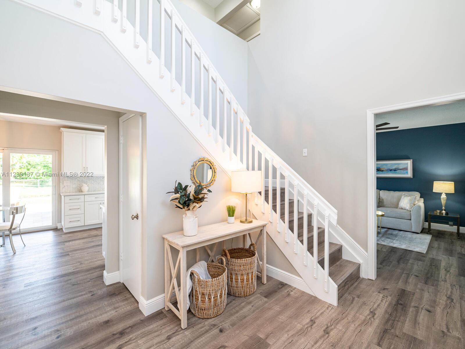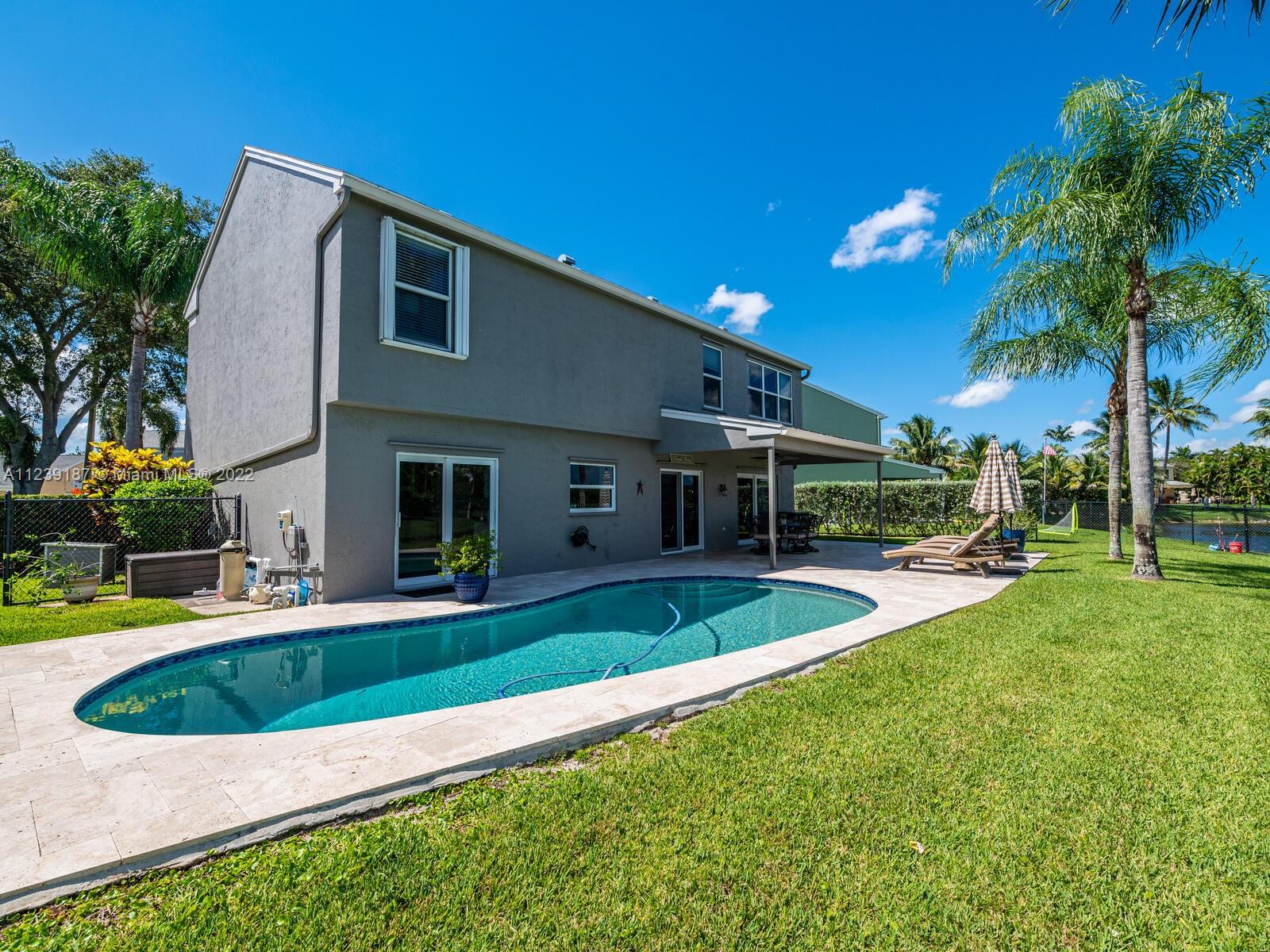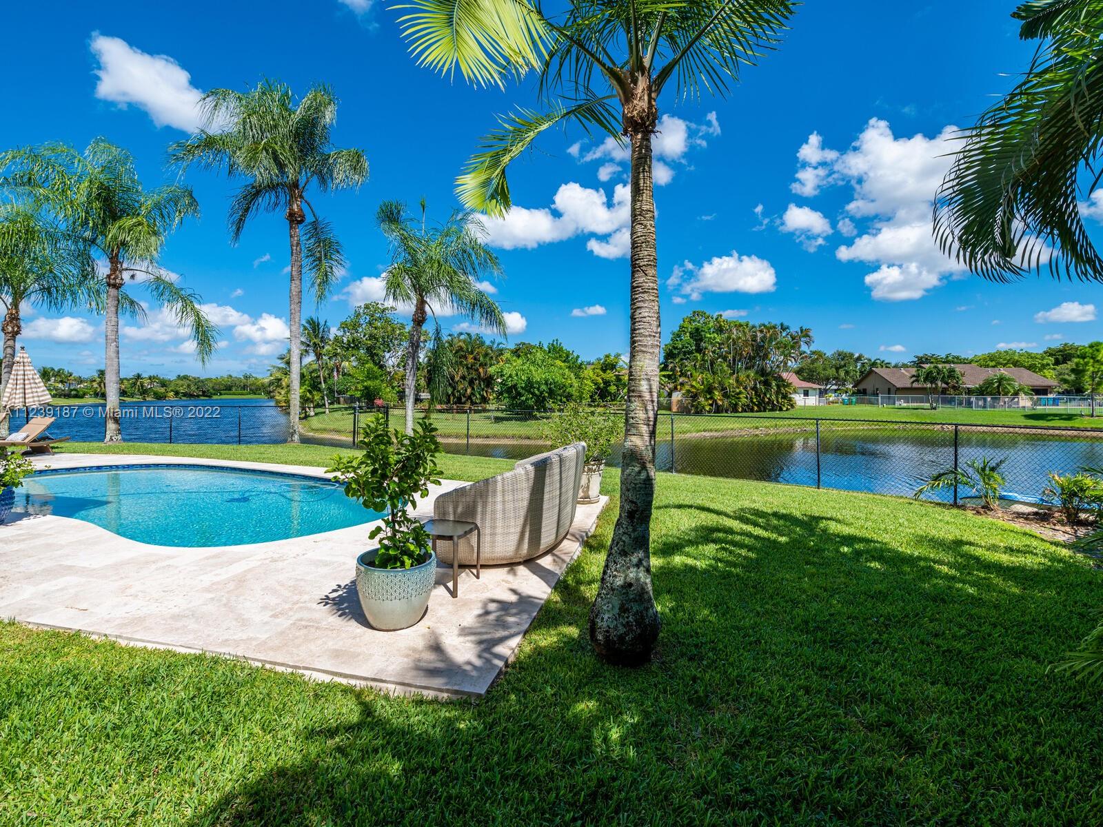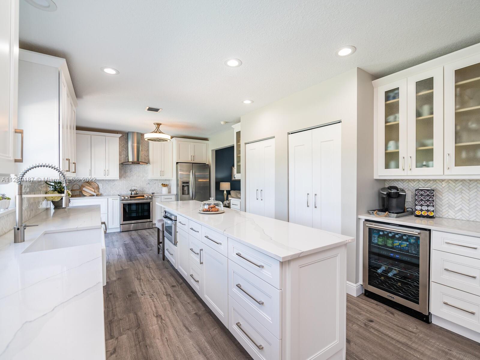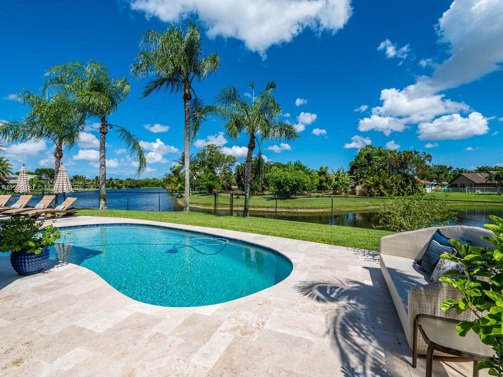 Gorgeous Cooper City 4 bedroom lakefront pool home. Stunning newly remodeled kitchen with huge center island, quartz counters, white shaker cabinets, soft-close draws, all new stainless appliances, LED lighting, new waterproof wood laminate flooring with lake and pool view. Newer impact windows and sliding glass doors. Panels & accordions for extra protection. Recently resurfaced - salt system pool and paver driveway and walkway. Other features include new a/c, sprinkler water from lake, patio fan w/blue tooth speakers. Reroofed after hurricane Wilma.