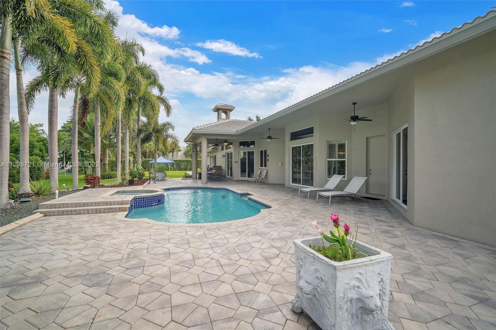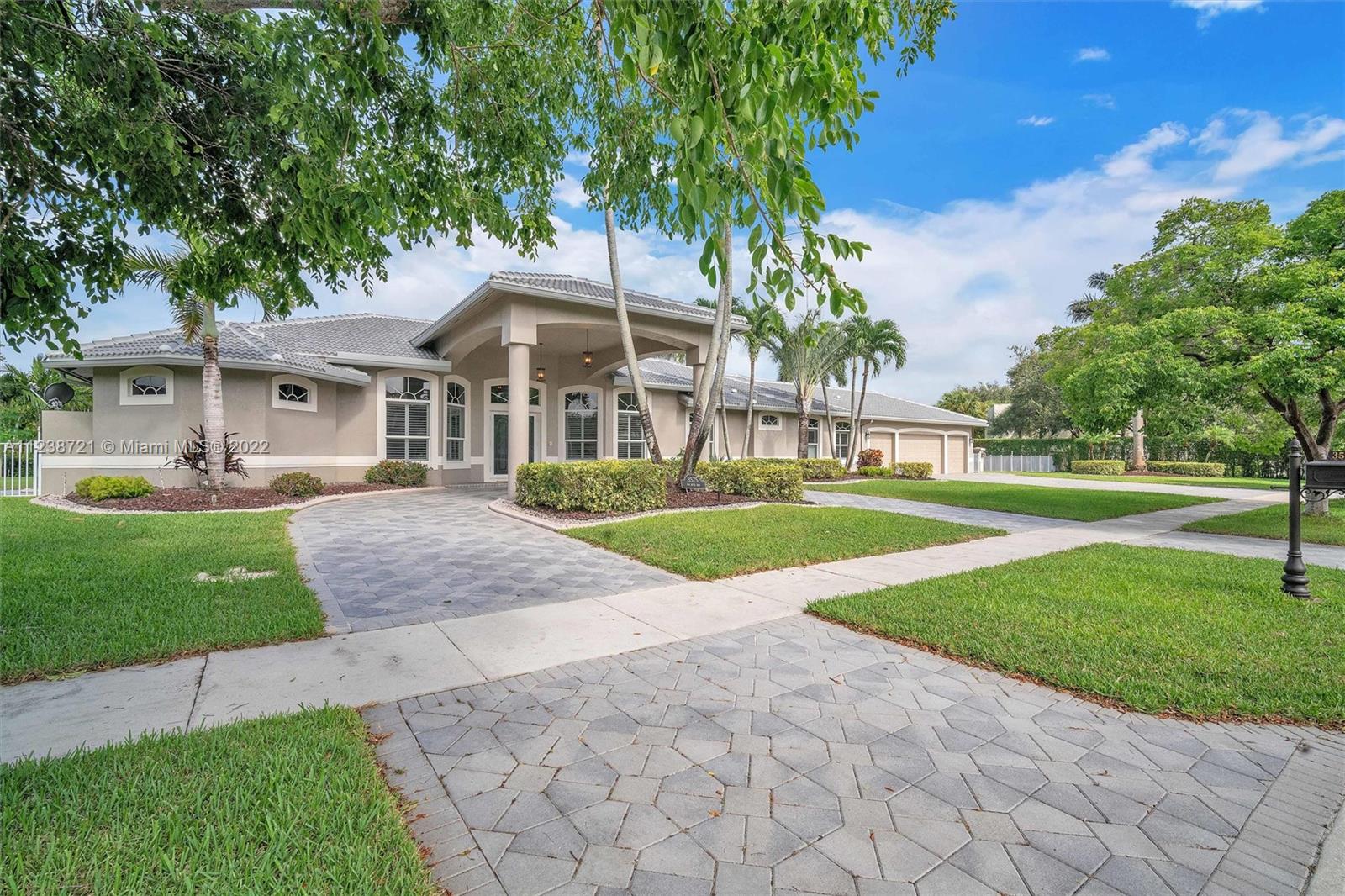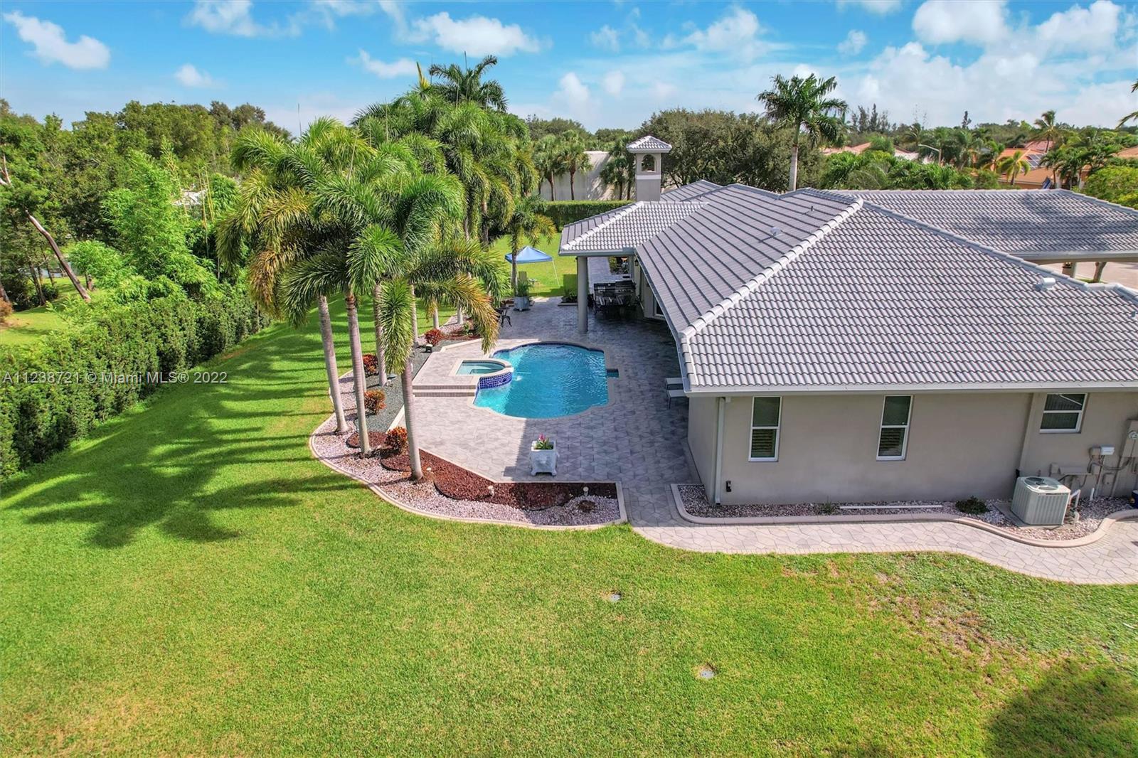 Superb tropical paradise. Spacious, heavily upgraded 5 BR, 4 bath, one story pool home. Huge triple lot, 3/4 plus acres adjacent to Diamond Head community park. Optional 5th BR current open music room. Top Cooper City schools, walk to Cooper City High. Gourmet kitchen, granite counters, cherry wood cabinets. Double brick paver circular drive with porte cochere entryway. Luxurious master suite, his/her walk-in closets, roman tub, walkthrough shower. New roof, impact windows, plantation shutters, fireplace. Awesome backyard, patio, heated pool/spa, waterfall. Spectacular 4 car garage with extra work space, storage, 220V EV charger. Many more extras, amenities throughout home, community. Great location for easy commutes in all directions, close to parks, schools, shopping, dining, much more!