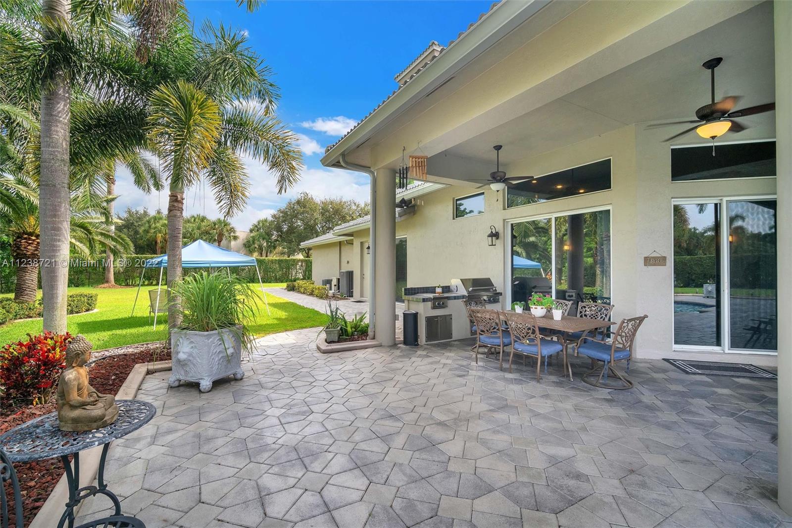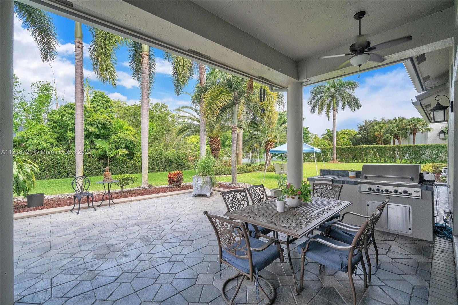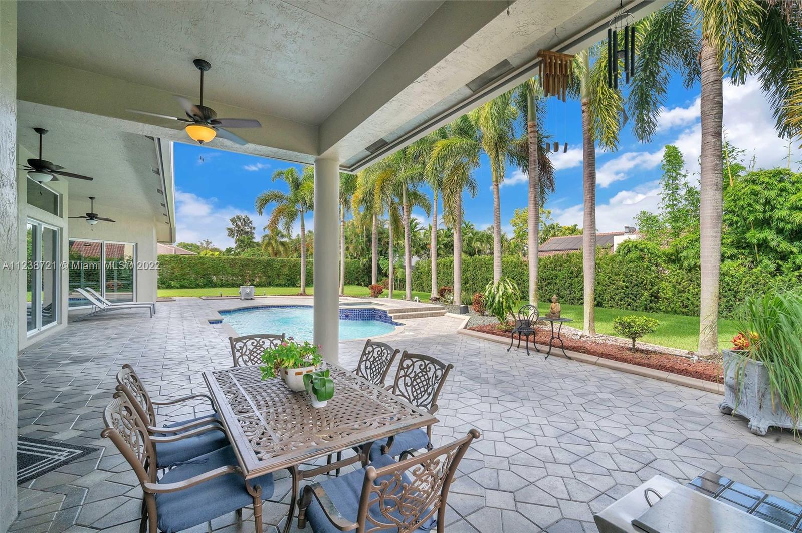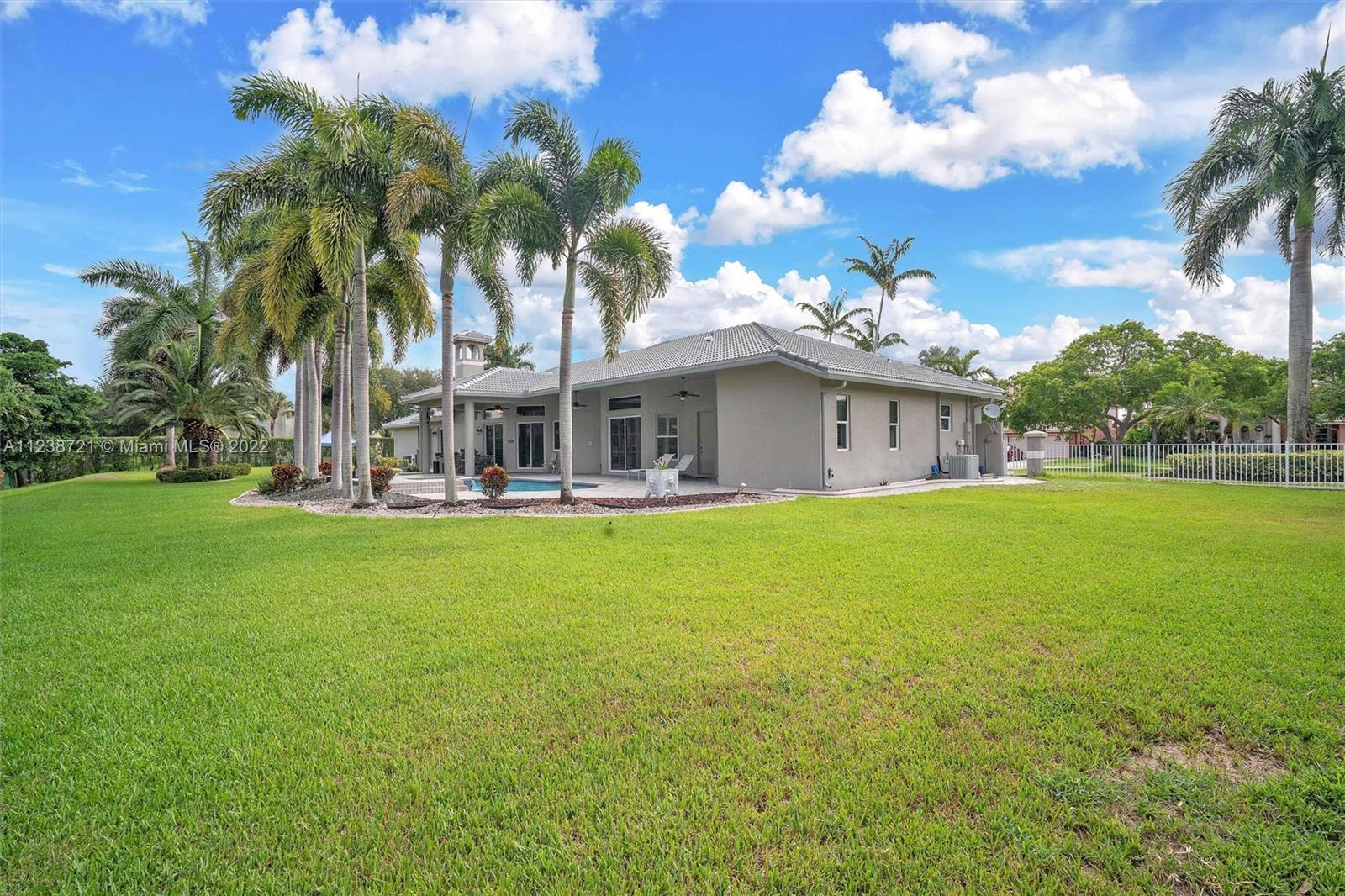 Superb tropical paradise. Spacious, heavily upgraded 5 BR, 4 bath, one story pool home. Huge triple lot, 3/4 plus acres adjacent to Diamond Head community park. Optional 5th BR current open music room. Top Cooper City schools, walk to Cooper City High. Gourmet kitchen, granite counters, cherry wood cabinets. Double brick paver circular drive with porte cochere entryway. Luxurious master suite, his/her walk-in closets, roman tub, walkthrough shower. New roof, impact windows, plantation shutters, fireplace. Awesome backyard, patio, heated pool/spa, waterfall. Spectacular 4 car garage with extra work space, storage, 220V EV charger. Many more extras, amenities throughout home, community. Great location for easy commutes in all directions, close to parks, schools, shopping, dining, much more!