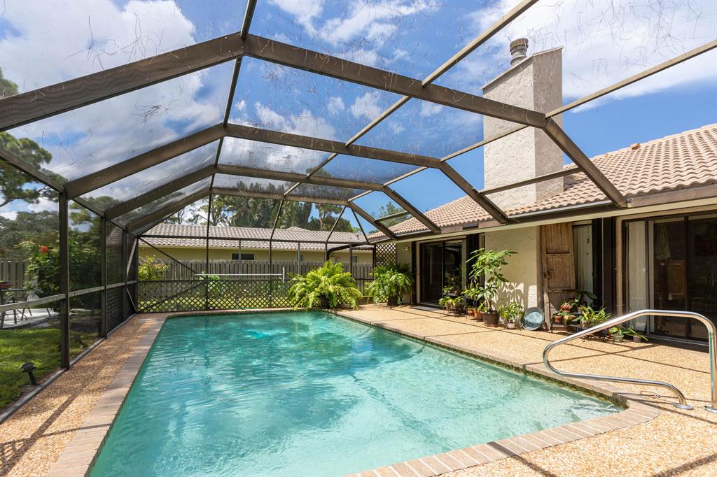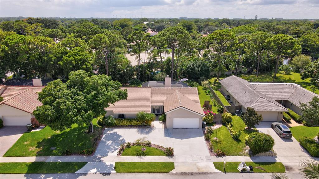 Open and welcoming beautiful home with private pool located in the desirable Timbercreek neighborhood just south of Lynn University between Military Trail and St. Andrews Blvd. Here you'll find an oversized lot (13,796 ft) with newer (2020) circular driveway, attached garage, entry leading into an open-concept home featuring new AC, newer washer/dryer, new Samsung refrigerator. White kitchen cabinets and dark granite island countertops for prepping and tasting delicious meals. Owner's suite features walk-in closet, en suite bath with double-sink vanity. Huge backyard with mature trees, a Barbecue patio surrounded by Plumerias and ferns; screened in pool; new sprinkler system. Enjoy peace of mind with accordion shutters (up to code) and hurricane-rated garage door. Come see for yourself!