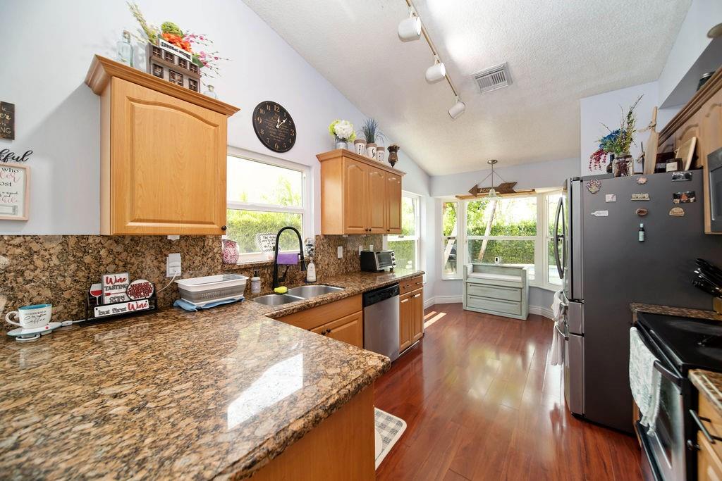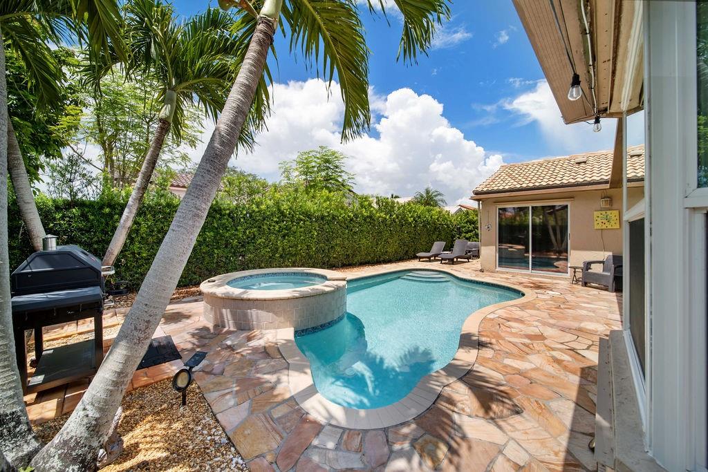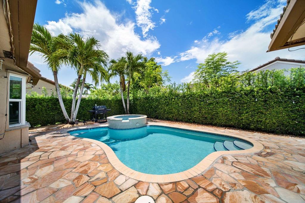 This tropical oasis in Pembroke Pines is located around shopping, restaurants, and I-75. Excellent rated schools K-12. As you enter the home, beautiful hardwood floors flow seamlessly throughout the home and your eat-in kitchen is complete with custom cabinetry and granite countertops. Your privacy fence surrounds your backyard sanctuary that is layered in rock pavers which provides a lagoon-style feel so you can enjoy your custom heated pool(Salt Filtration System) and overflow jacuzzi. The elegant Spanish tile roof was replaced in 2018. Additionally, the pool pump, pool filter, and automatic irrigation pump were installed in 2021. To keep your home cool and safe all year long, the windows are energy efficient and hurricane rated.