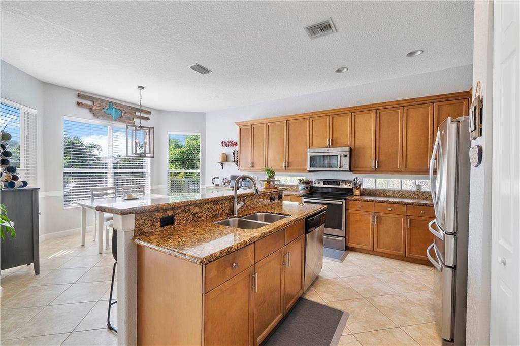 PRICE REDUCTION MOVE-IN BEFORE SCHOOL STARTS! Pretty 2 story, 4 bedroom, 3 bathroom pool house on lake & beautiful orange sunset views, Open floor plan with flowing Living room-family-kitchen-dining overlooking the pool & lake, Italian tile flooring downstairs & wood flooring upstairs, 1 bedroom & bathroom downstairs, Master bedroom upstairs with balcony for serene orange sunsets, newly painted interior & exterior, newer A/C, Fenced in pool area, 2 clubhouses with oversized heated swimming pools & state of the art gymnasium's, Tennis, Basketball, Waterpark, party rooms,Low HOA fees. Guard Gated community with 24/7 roaming security & strict enforcement,Walking paths all around the community for miles & outside the perimiter of Heron Bay also, Lots of nature and greenery, A+ Schools, Parks