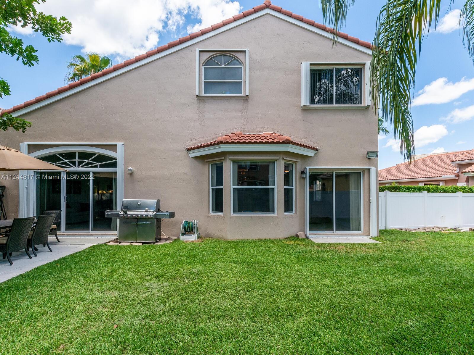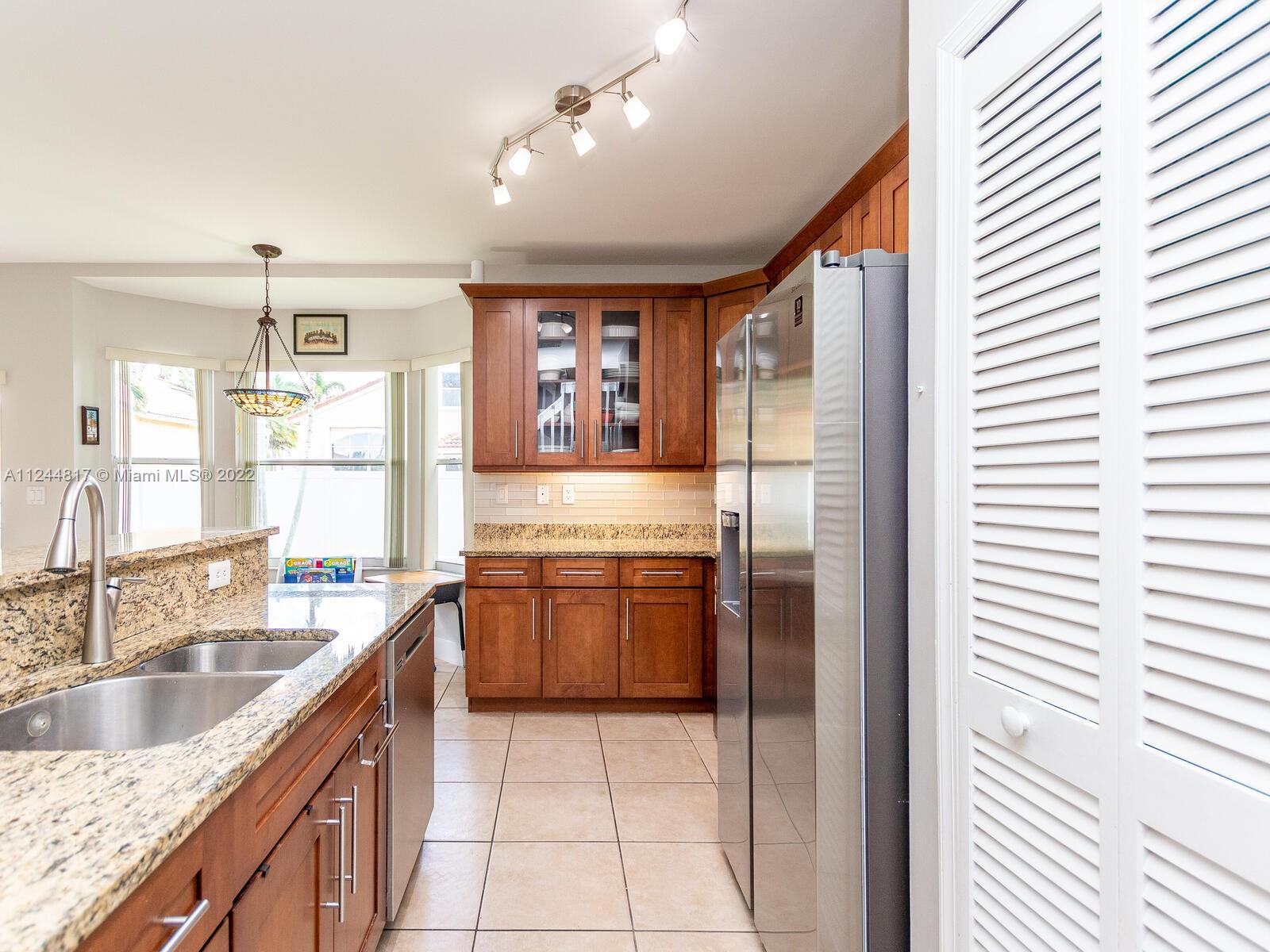 Located in sought after Kensington at Chapel Trail, this beautiful 4 Bed, 3 Bath "Fairgate Model" features a full bedroom and bath downstairs. Upon entry, an airy living/dining room greets you. Large open kitchen offers solid wood cabinets, new stainless-steel appliances, dual sink, and granite countertops. The entire downstairs living area features tile flooring. Retreat upstairs into your spacious primary bedroom that offers en-suite bathroom w/ dual sink vanity & an alcove soaking tub. Feel safe with your private fully fenced backyard with fruit trees, and plenty of yard space to host barbecues or other family gatherings. Maximize insurance discounts with the 2011 roof and accordion hurricane shutters. A rated Pembroke Pines Schools, and walking distance to Chapel Trail Elementary!