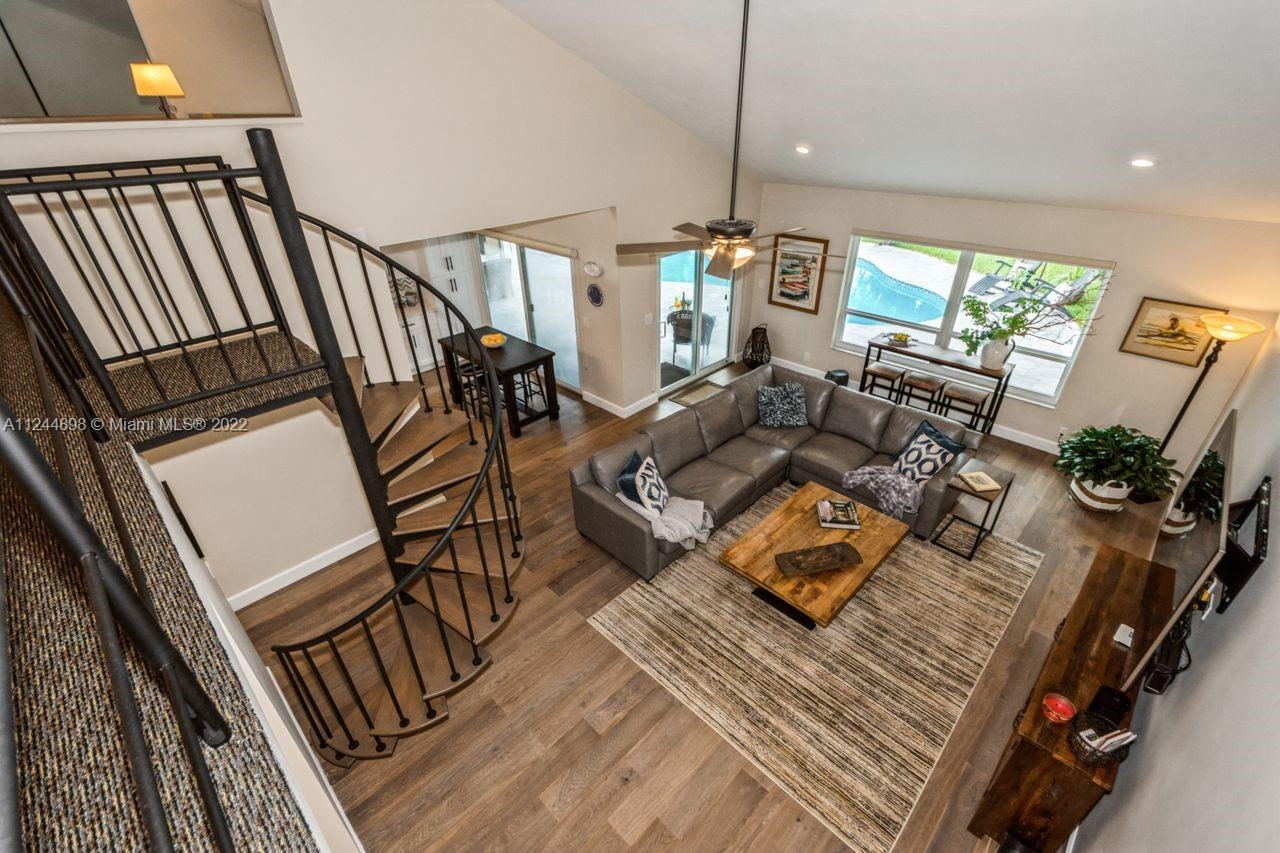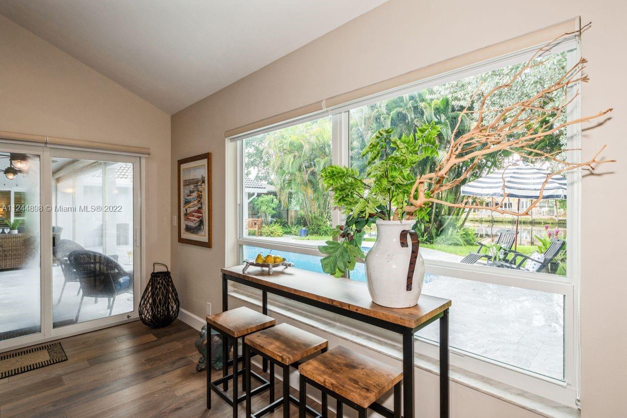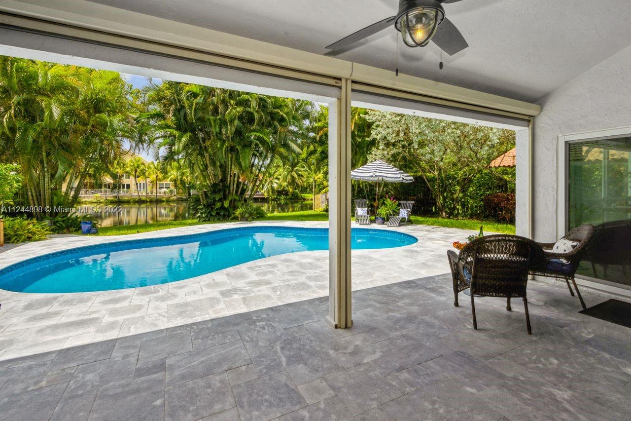 Location meets perfection! Live exceptionally in this serene and beautiful 4 bed, 3 full bath pool/spa oasis situated in the heart of Plantation. Home welcomes you into a large living/ dining area overlooking the lake view with high ceilings, newly remodeled kitchen, high impact windows and doors, wood flooring in family room/kitchen and bedrooms, large family room with a full bar area, spiral staircase which takes you into a loft/library can be converted into a gym, office or workout room, large master bedroom and bath with access to a private and serene spa. Enjoy the outdoor life in the oversized terrace with roll down screens perfect for entertaining, large laundry area/lots of cabinetry, so much more! Centrally located between 3 major Int’l airports, beaches. Paradise is here! Hurry!