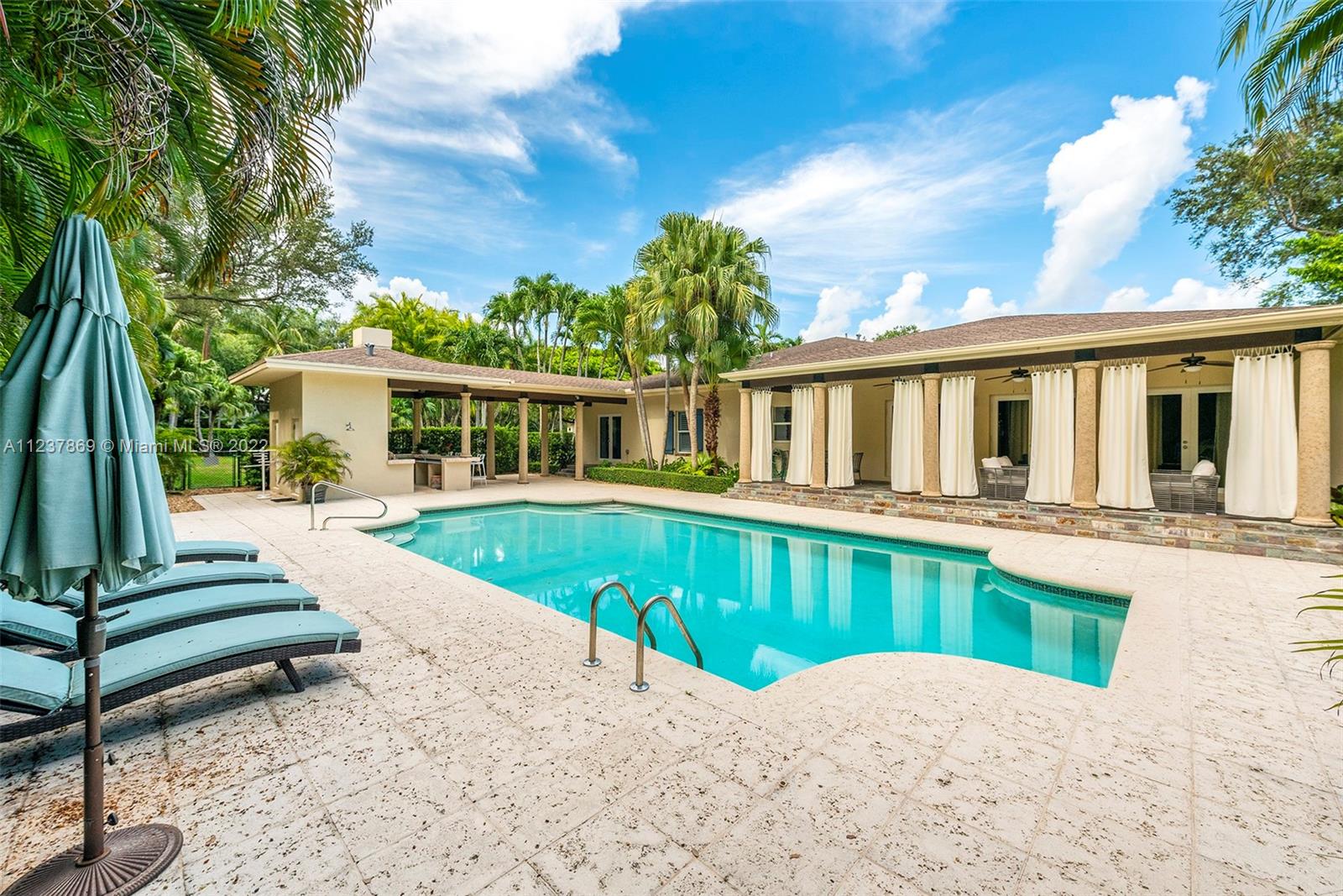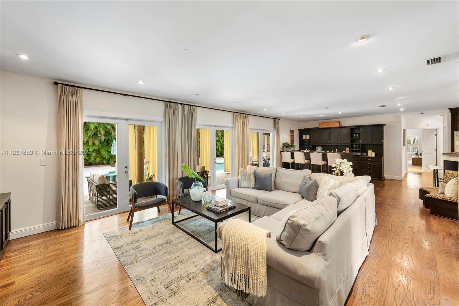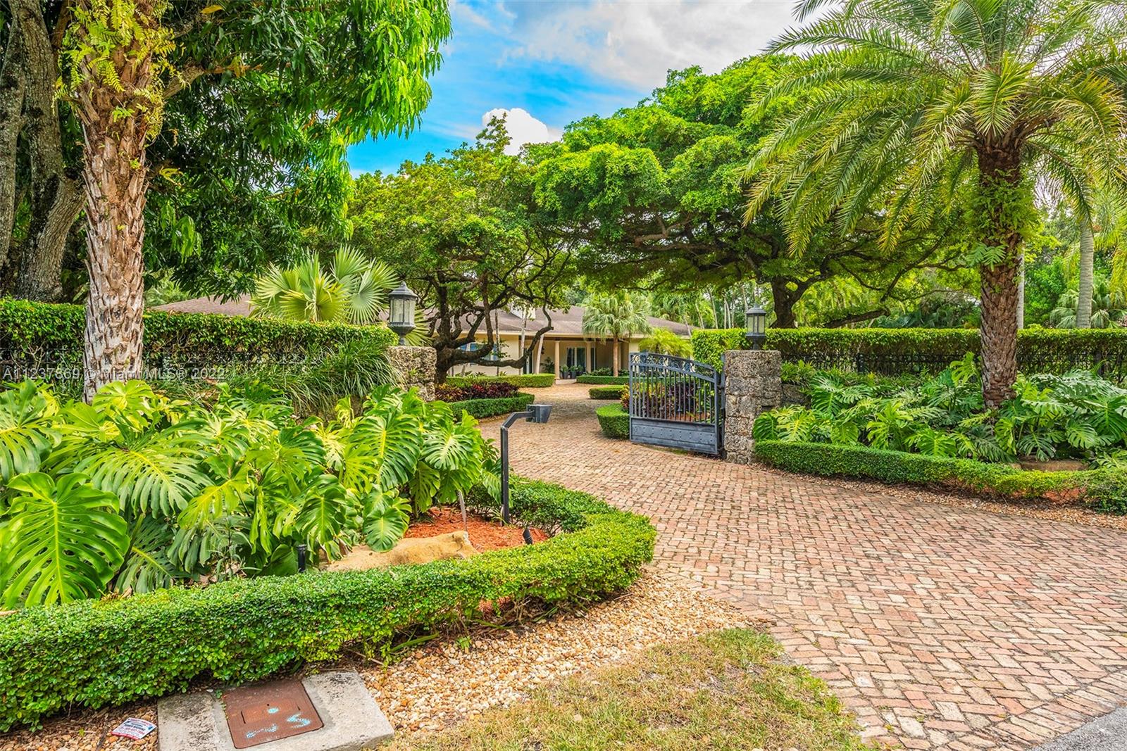 Exquisite & Elegant! This stunning transitional & renovated north Pinecrest Gem sets on a picturesque, lushly landscaped acre, surrounded by amazing wonder of nature, under mature & majestic tropical trees & plantings. Superlative designed with fabulous floor plan featuring 5 ensuite bedrooms plus office, familyroom, playroom, two patios, 3 car garage (airconditioned)! Beautiful formal living & dining. Gourmet chef's dream kitchen w/top-of-line appliances. A full wet bar coupled in the familyrm. Lavish master with luxurious bath & an incredible walk-in closet! Gorgeous Pool/patio with summer kitchen & cabana bath! Additional basketball court! Luxurious & finest detailed appointments in every turn! All-encompassed in this coral-rock walled & gated piece of paradise! (See Broker's remarks)