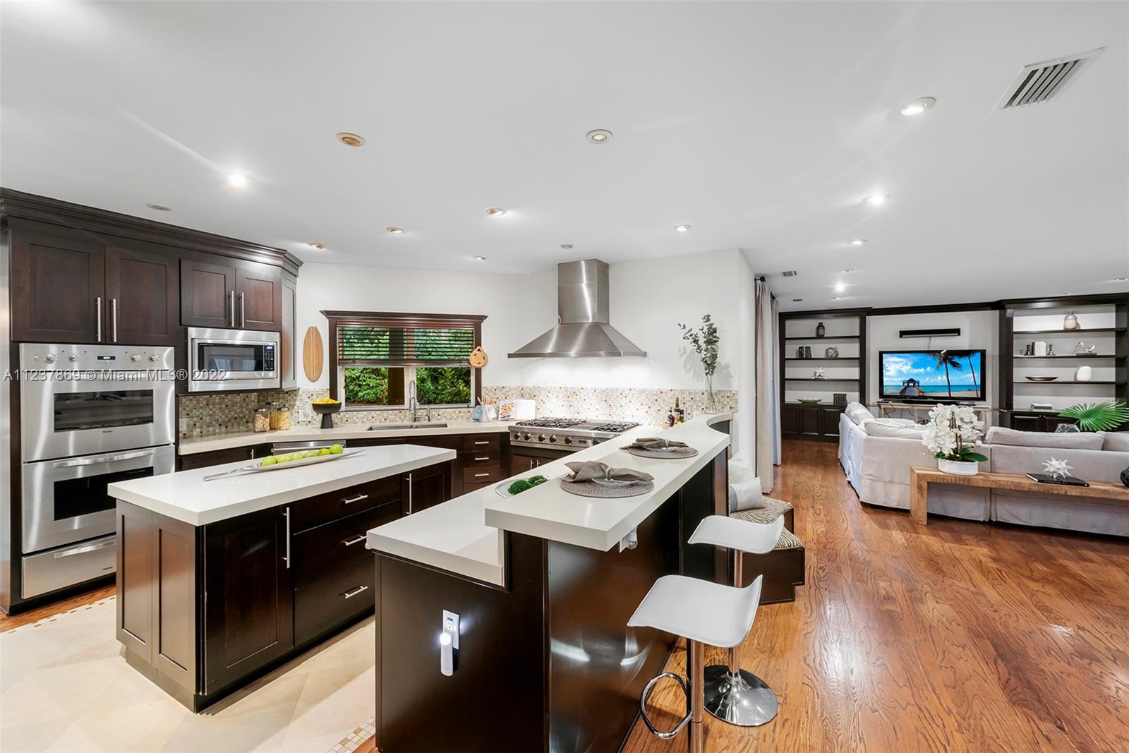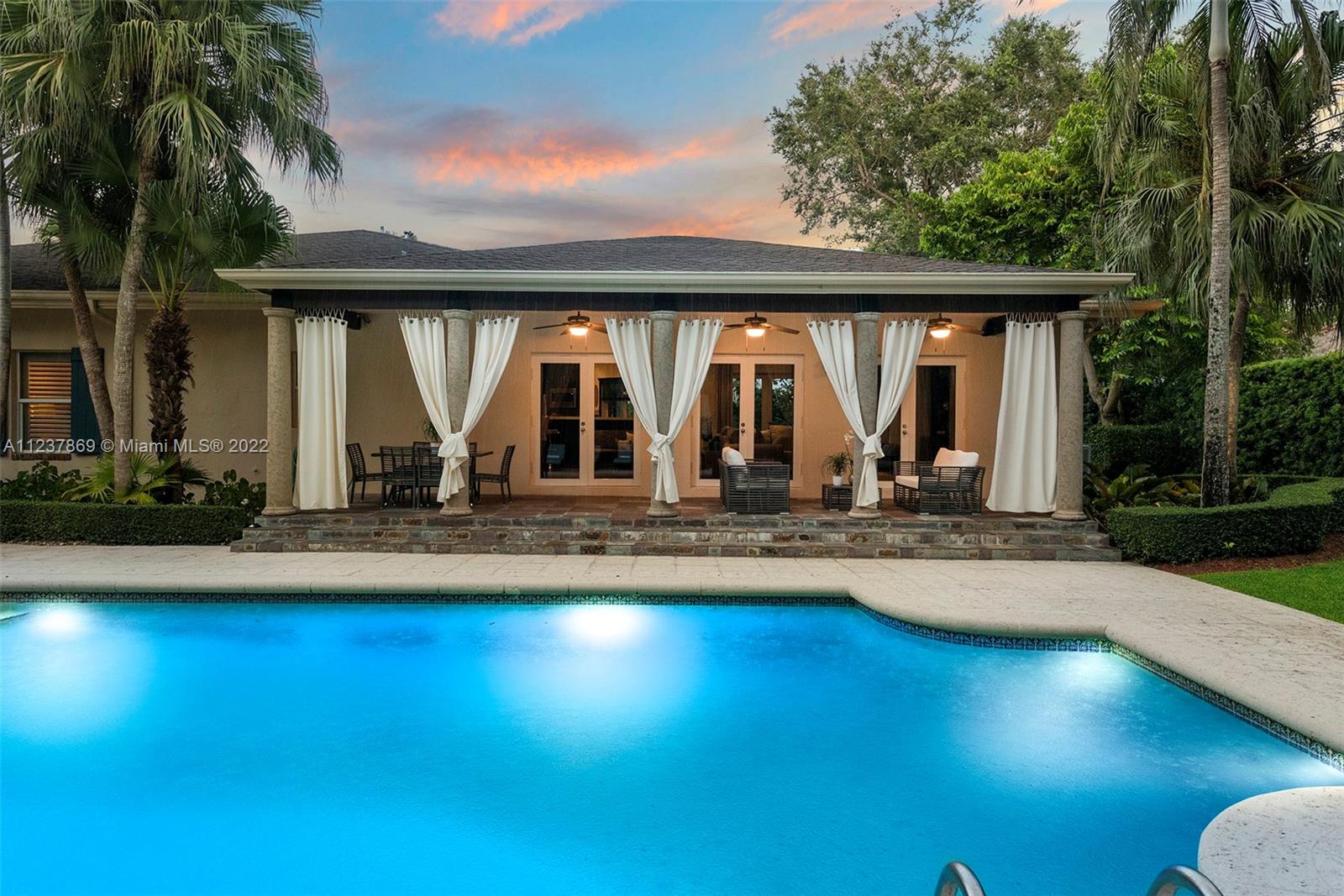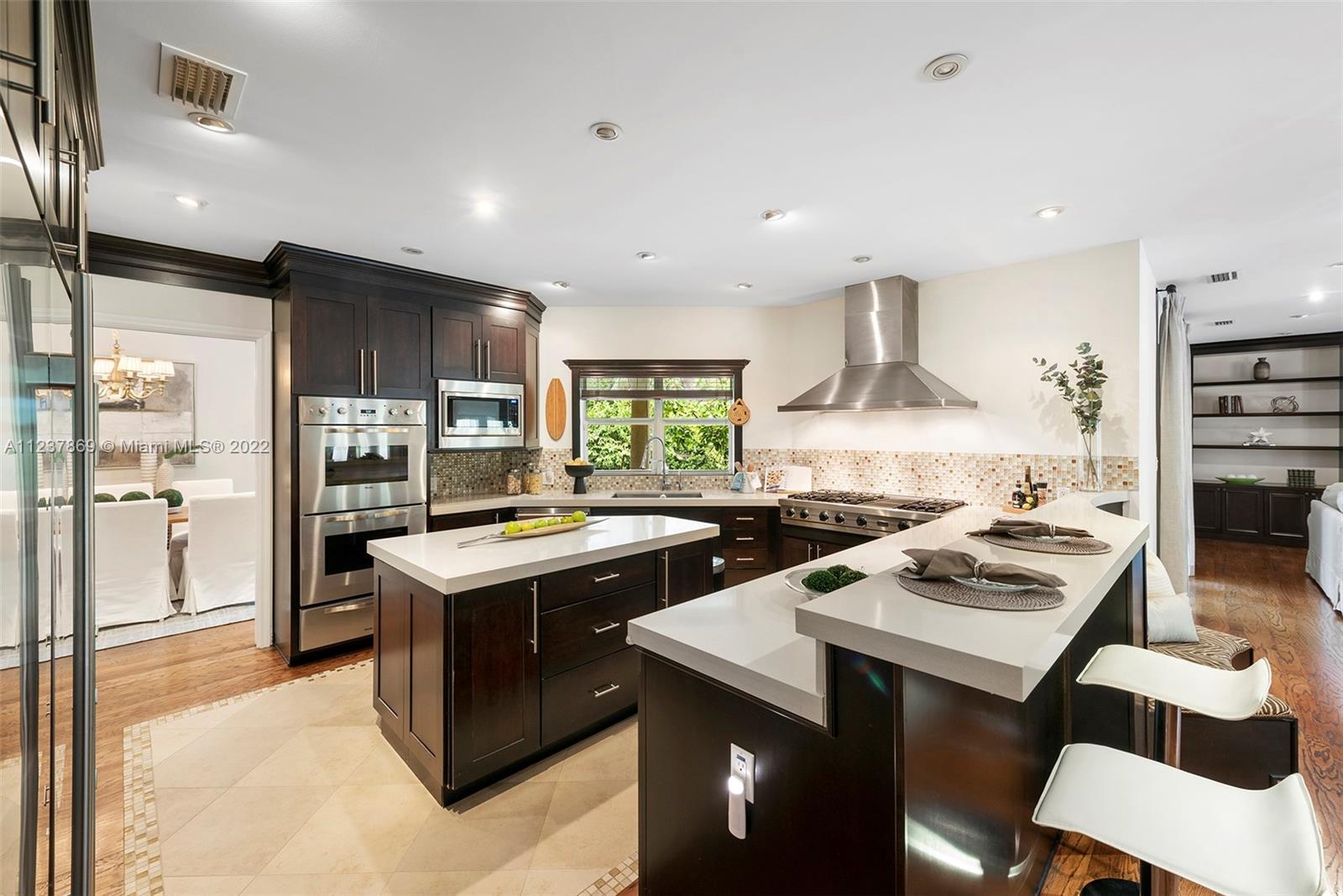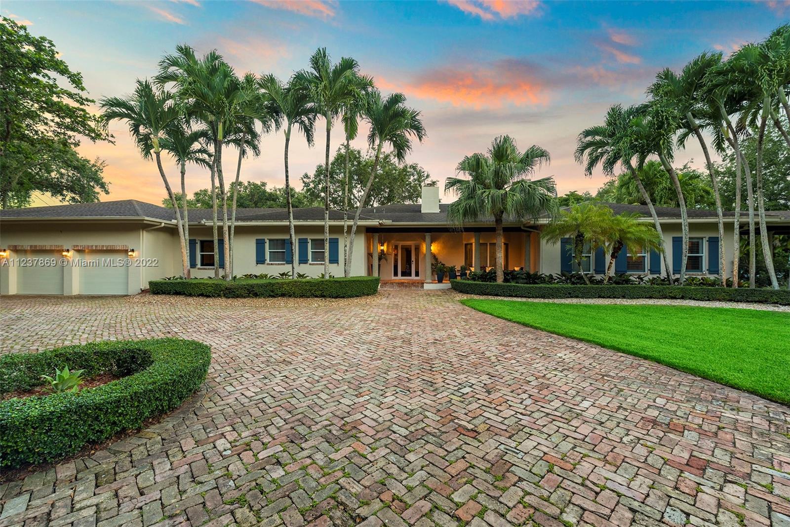 Exquisite & Elegant! This stunning transitional & renovated north Pinecrest Gem sets on a picturesque, lushly landscaped acre, surrounded by amazing wonder of nature, under mature & majestic tropical trees & plantings. Superlative designed with fabulous floor plan featuring 5 ensuite bedrooms plus office, familyroom, playroom, two patios, 3 car garage (airconditioned)! Beautiful formal living & dining. Gourmet chef's dream kitchen w/top-of-line appliances. A full wet bar coupled in the familyrm. Lavish master with luxurious bath & an incredible walk-in closet! Gorgeous Pool/patio with summer kitchen & cabana bath! Additional basketball court! Luxurious & finest detailed appointments in every turn! All-encompassed in this coral-rock walled & gated piece of paradise! (See Broker's remarks)