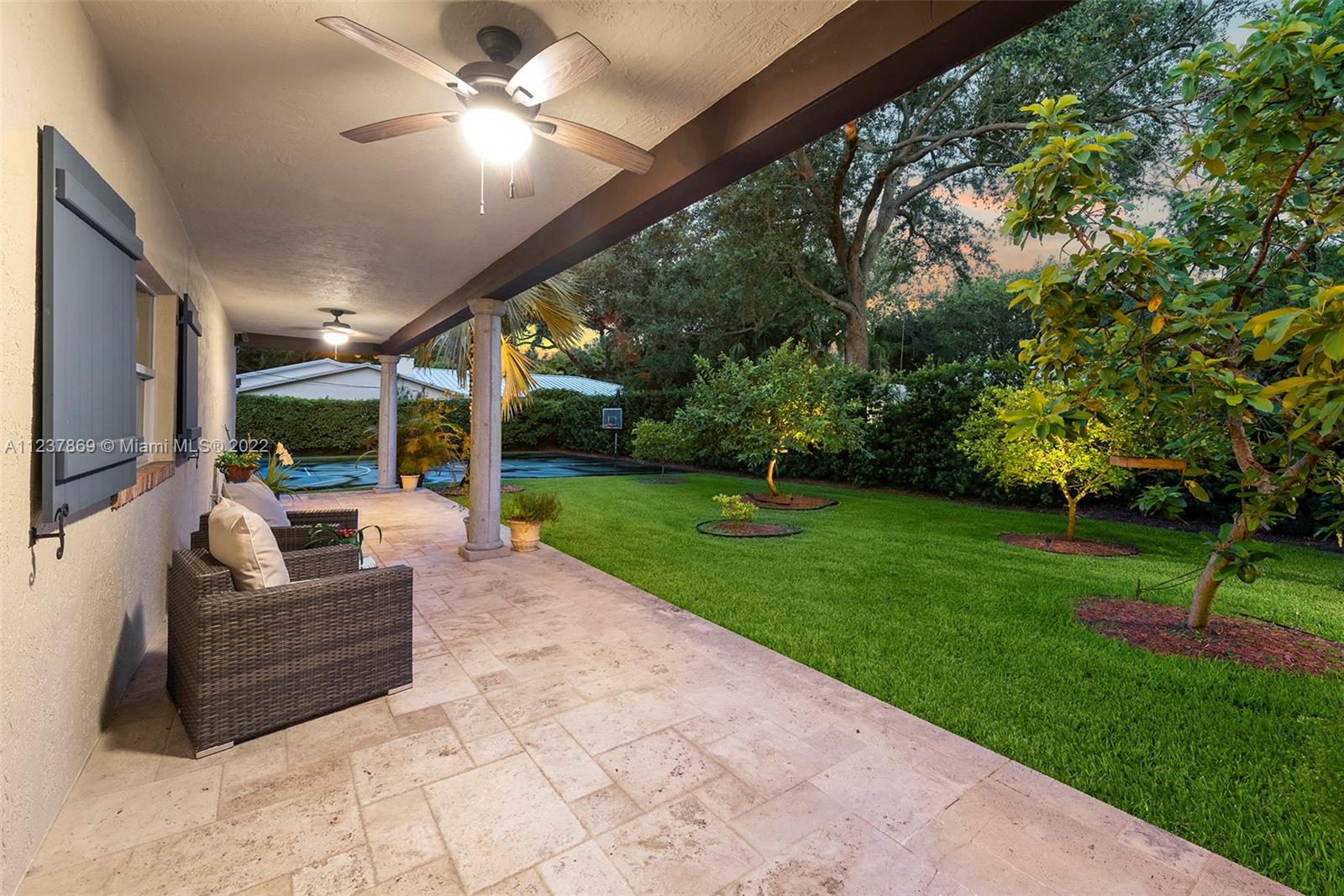 • Exterior Feature:Awnings, Fence, FruitTrees, Lighting, OutdoorGrill, OutdoorShower, Porch, Patio