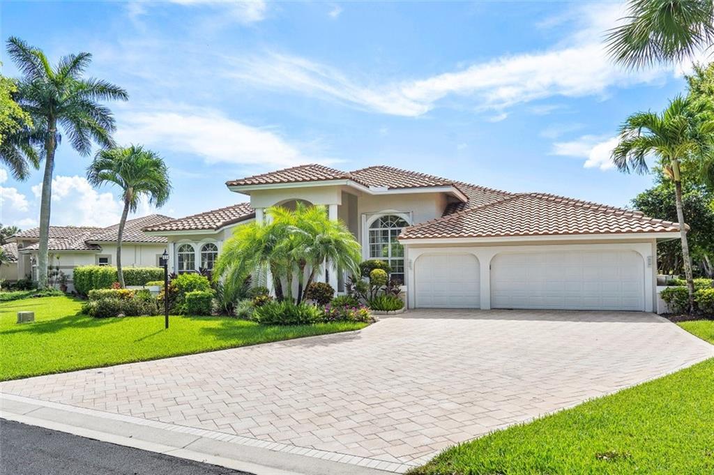 Simply a gorgeous home with a 2019 roof. This home offers everything needed to enjoy the quintessential Florida lifestyle! Sited on an expansive & manicured corner lot with a sprawling front lawn. Glass double doors lead to a sun-drenched interior with soft creamy white accents. Floor-to-ceiling glass doors/windows throughout and open living spaces beautifully blend the serene pool area, covered loggia, and outdoors with the light & airy interior. The spacious kitchen & family room area features a crisp white island kitchen with granite counters, butted glass, SS appliances, & a pass-through window, making it perfect for indoor/outdoor living. The Sublime owners' suite with a spa-like bath, walk-in closets & splendid views, is a serene retreat. This home will not disappoint.