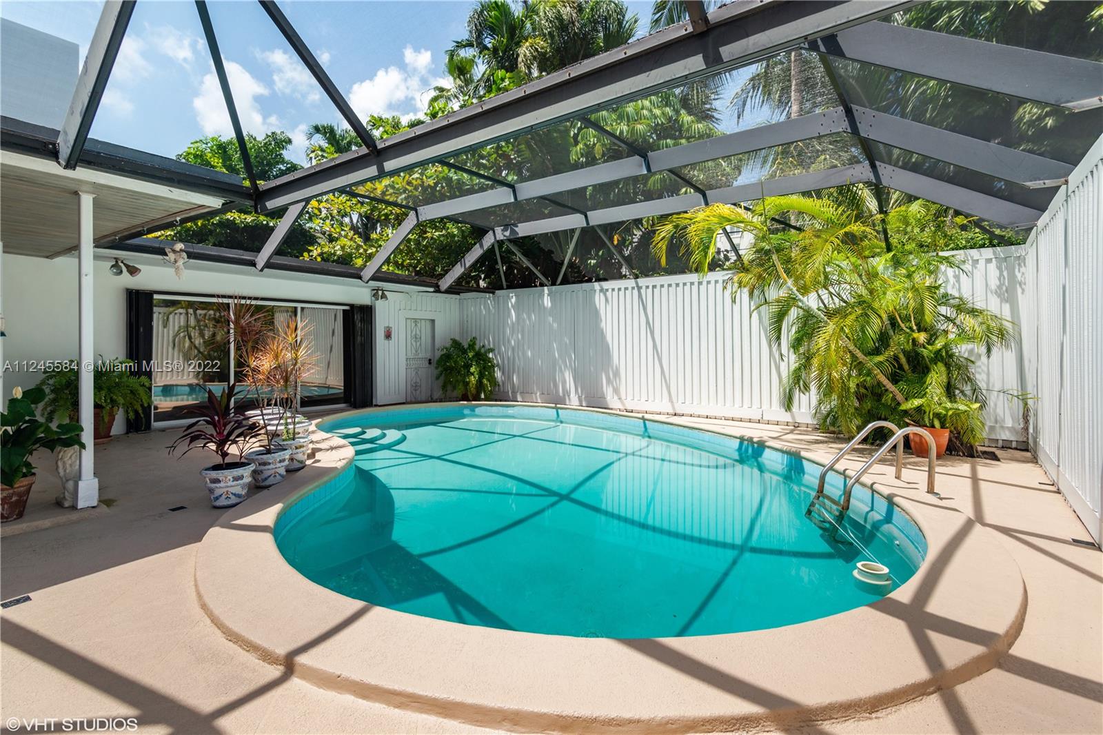 One of the last original Mackle homes in Coconut Grove, this is the least expensive listing in the most expensive area. Three bedrooms and two immaculate vintage bathrooms include the addition of the 1/1 guest suite. The living area overlooks the pool in the backyard and the garden in the front. The pool is surrounded by a high sturdy privacy fence with additional land and garden around it. An indoor laundry room and one car garage are all freshly painted. Update, renovate or build new in this multimillion dollar subdivision. This house has had only two owners over the course of 60 years and is located just half a block from the Glencoe "residents only" access to Biscayne Bay via a tree canopied walkway in a charming and private neighborhood, just south of Vizcaya.