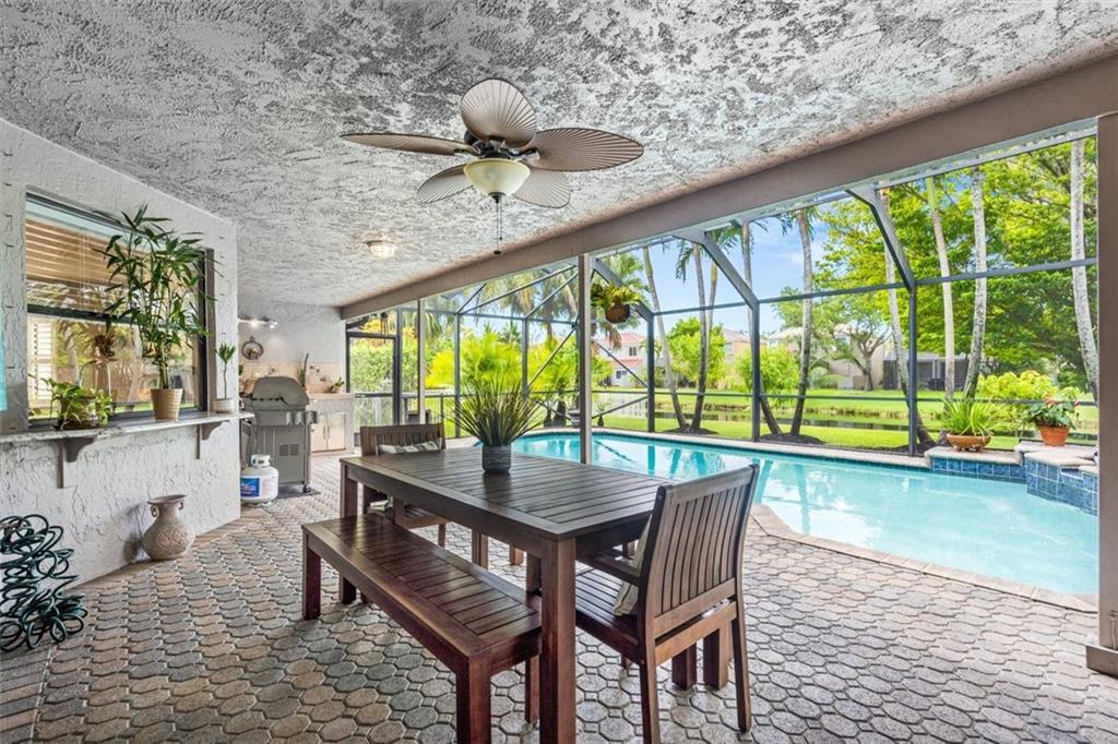 Amazing waterfront residence on a premium lot in West Glen welcomes you home with lushly landscaped grounds, tranquil water views & resort inspired pool, spa & lanai. Step through your double door entry to find an entertainer's dream home w/ expansive open floor plan, chef's kitchen featuring top of the line granite, solid wood cabinetry & center island. Enjoy natural light pouring through the kitchen window! Patio provides endless entertainment opportunities. Chic grey & white coloring throughout! Generously sized bedrooms, impeccably maintained primary & cabana bathrooms, finely appointed w/ high quality finishes. All the comforts of a luxury home. Find your lifestyle desires & create your tropical oasis placing your family in ambiance! Incredible offering!