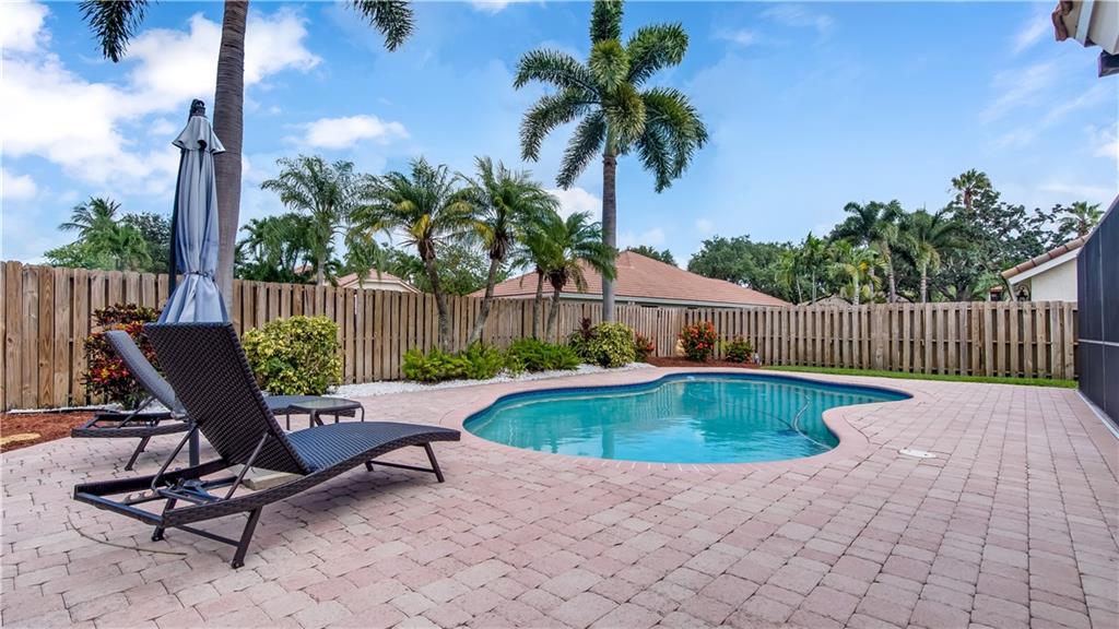 Magnificently updated & remodeled 4 BDRM OR 3 BDRM W/OFFICE. Private pool & fenced yard, oversized lot, in Fox Run at Jacaranda. Move in condition, nothing for new owner to do. Lushly landscaped front & back, oversized brick paver drive & walkway, double door entry looks out to pool/entertainment area. Volume ceilings, UPGRADES: 2022 - Office/4th Bedroom, formal dining room, Chandeliers in Main Bedroom & DiningRoom, Plantation shutters in office & dining room. 2021 - Exterior fans in lanai, pool vacuum. 2019 - Main bathroom remodel w/soaker tub, stall shower & dual vanity, water filtration system. 2018 - Interior paint, A/C Unit replaced & UV light to purify air. 2017 - Total kitchen remodel w/granite countertops, large peninsula bar, appliances & wine fridge. 2016 - Roof replaced & paint