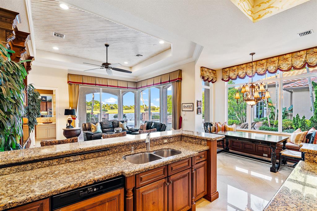 The estate with breathtaking water views you've been waiting for--with a PREMIER GOLF MEMBERSHIP AVAILABLE AT CLOSING! Kenco's former model home with over-the-top elegance and quality upgrades throughout. The builder's ''Sonoma w/ Guest House'' boasts 4BR, an over-sized 20'x22' Club Room, and five full + two half-baths. The infinity pool's edge vanishes into the serene lake, emphasizing the premium water views and creating a dramatic effect that serves as a picturesque backdrop every day and night. Enjoy wide lake views and Nicklaus-designed Tradition golf course views (Holes 12-15.)
