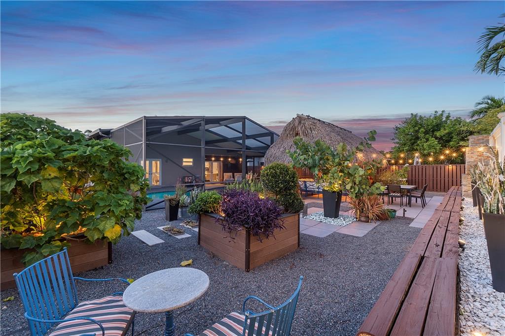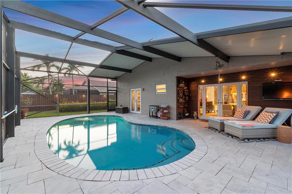 Parkwood Masterpiece w/Incredible English-Style Gardens! No detail is spared in this meticulously maintained, stunning, bright, spacious updated 3BR, 2BA, 2CG, screened pool home w/marble pool deck, lrg private fenced backyard w/Tiki Hut for extended covered space! Contemporary Home feat: Open Flr Plan, Impact Wind & Doors 2018, Vaulted ceilings, LED high hats lighting & crown molding throughout, wood-look Tile Flooring throughout, upgraded baths, chefs kitchen w/custom cabinets, & oversized island, quartz counters, SS appl, wine cooler, double oven, bosch dishwasher & tons of storage. Large Laundry Room, Nest Thermostat, Tankless WH, wood shutters, 5 1/4 baseboards, Lrg Primary BR w/walk-in closet & French doors that lead to pool/patio area. Roof 2007, A/C Aug 2021! LOW HOA FEE $83/Mo.+++