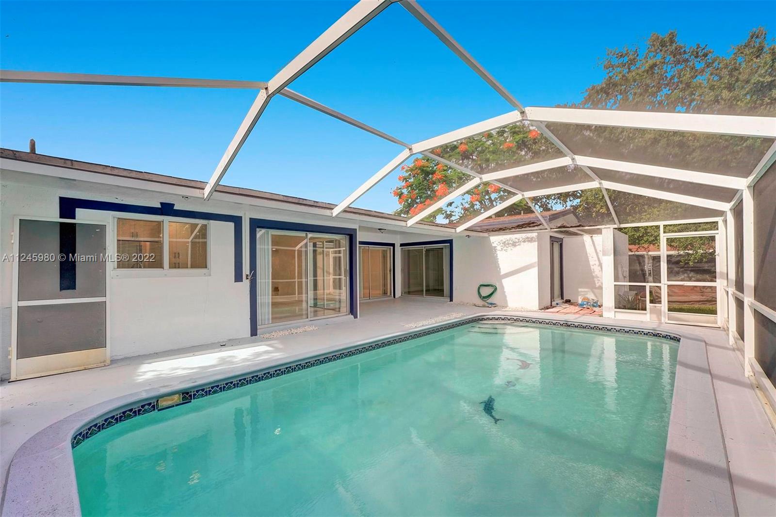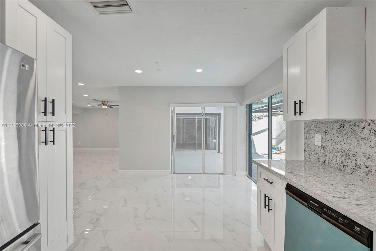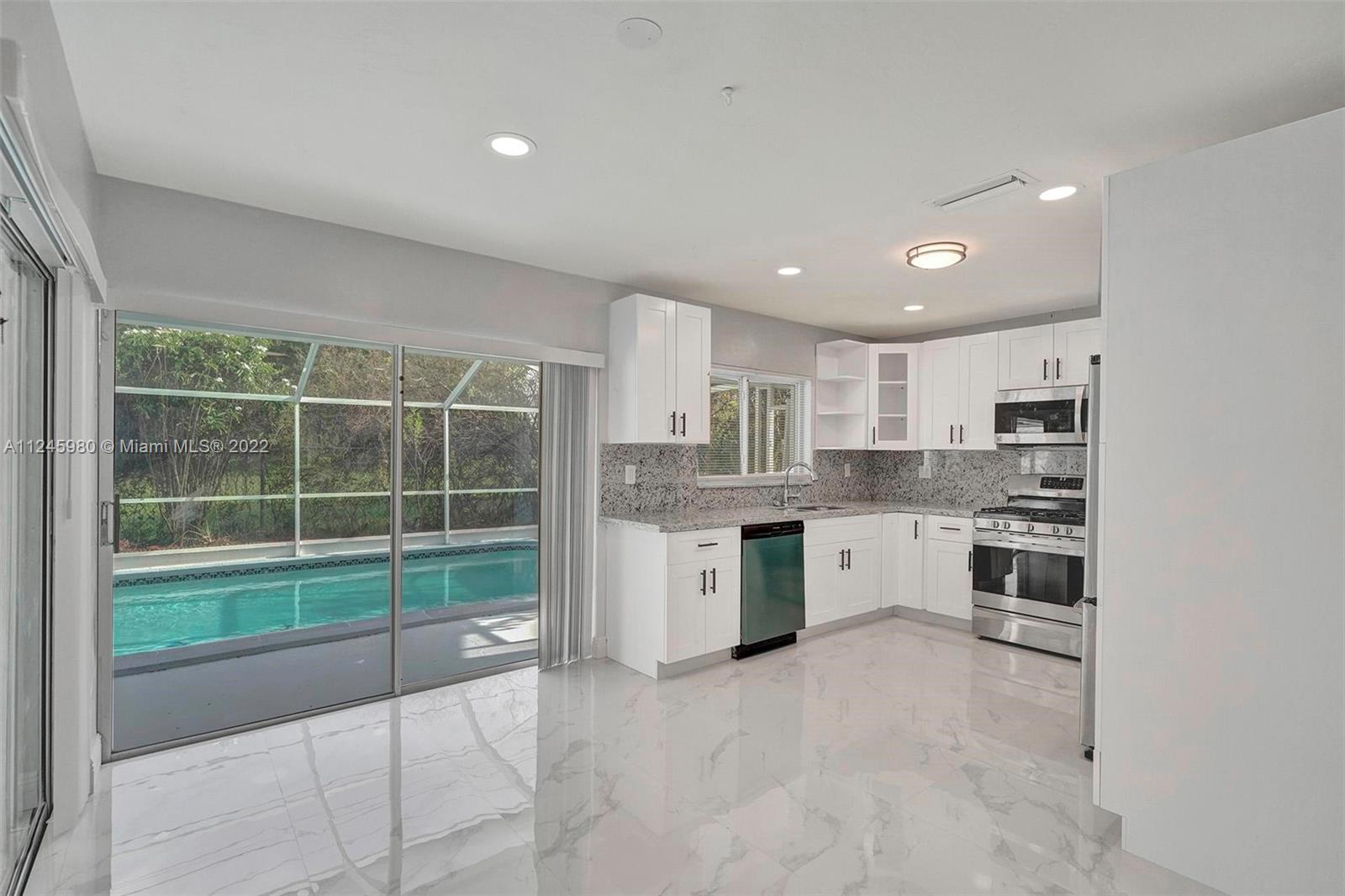 Substantially upgraded spacious 3 bed 2 bath 2 garage home with pool. This beautiful property is located in the sought after MIRAMAR ISLES neighborhood of East Miramar. Upgraded bathrooms, Kitchen with white single shaker cabinets with Granite counter top, SS appliances. 24/48" porcelain tile in the common area and water resistant gray laminate in the bedrooms. Covered patio extended to the spaciously Screened Pool over looking to greenery. Close to the Hardrock stadium, major highways and Hallandale beach, etc..