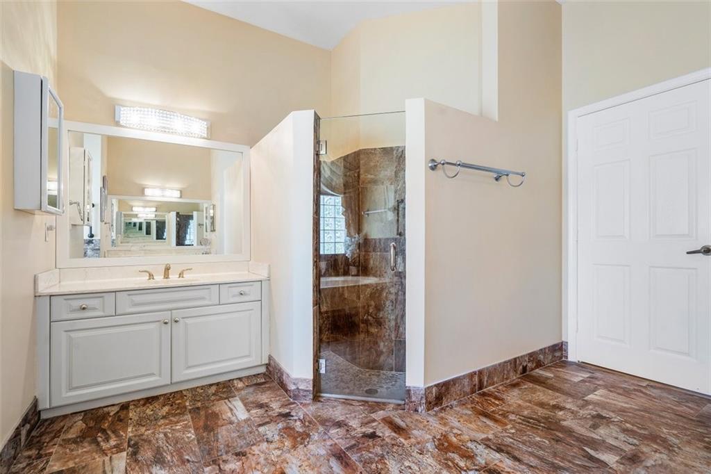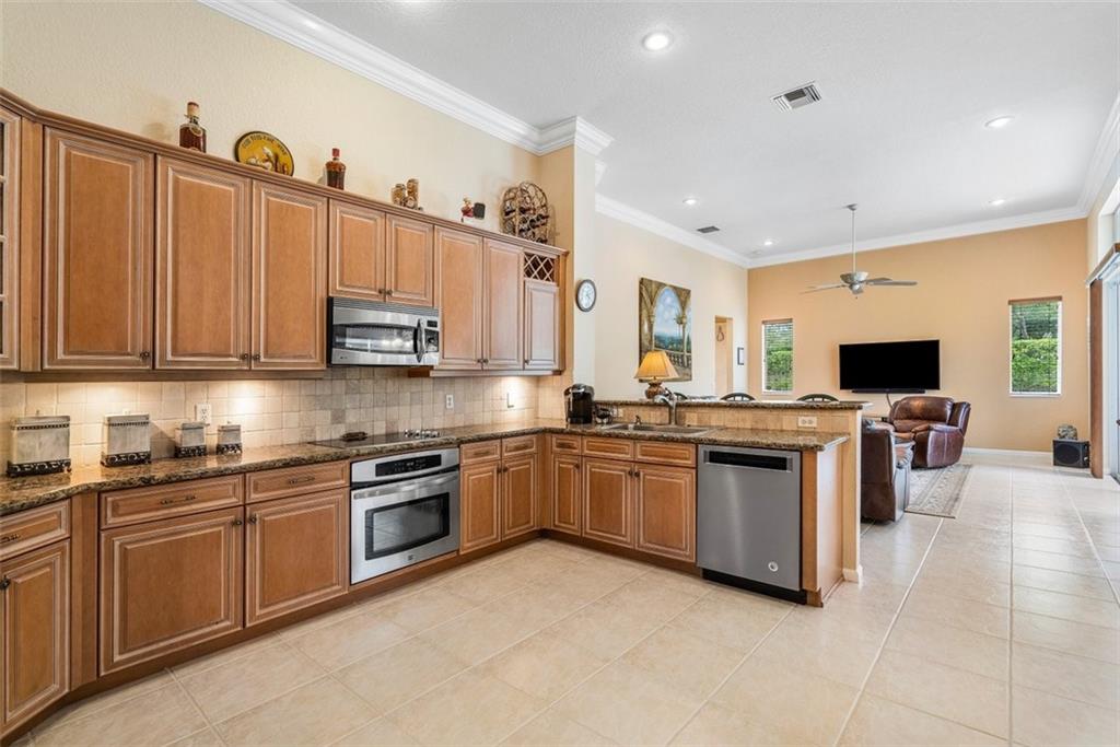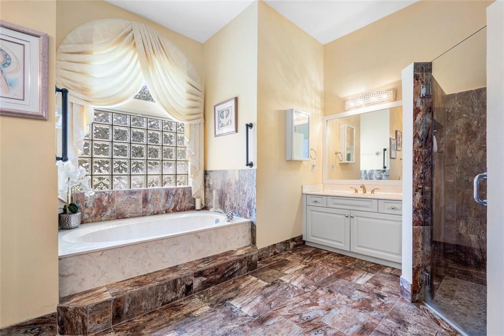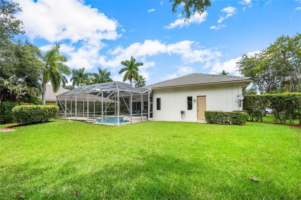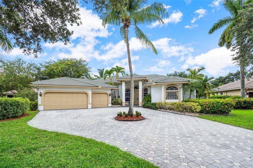 An impressive curb appeal, sprawling front lawn, & a large driveway add to this home's splendor. A living room with a wall of windows, soaring ceilings, a bar & beautiful views of the pool & grounds greet you upon entering. The open family room/kitchen area is impressive in size, perfect for large-scale gatherings. The kitchen offers an abundance of fine cabinetry, granite, SS appliances & breathtaking "seamless butted" glass windows. A luxurious & spacious primary suite features a sitting area, spa-like bath & serene views! The huge backyard & the resort-style pool are perfect for spending time with family & friends. A triple split design with large secondary bedrooms & private spaces makes it perfect for today's need for personal & work space. Walk to A Rate schools & parks.