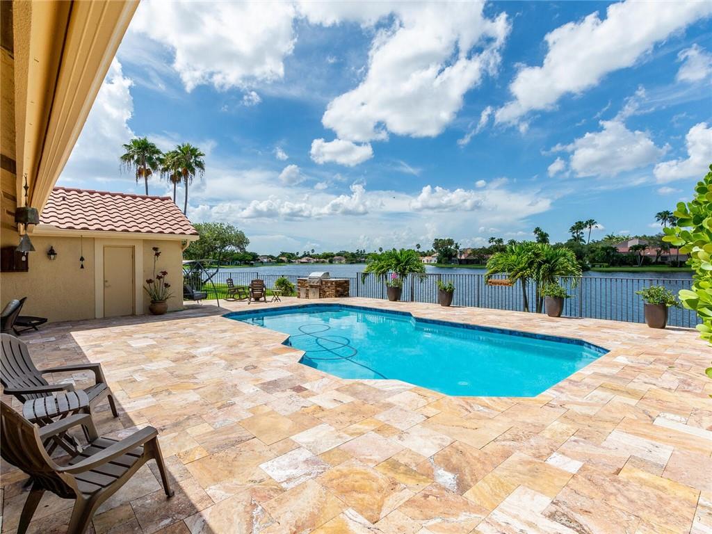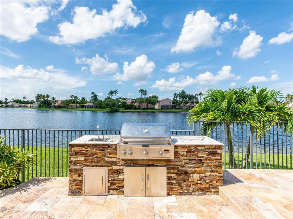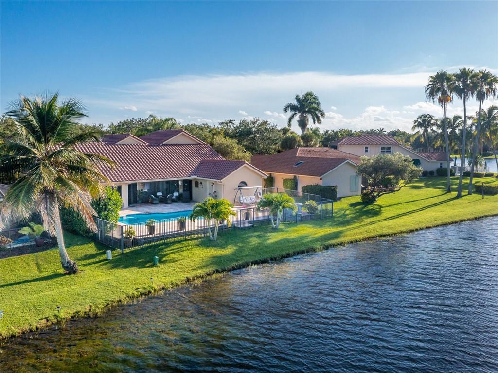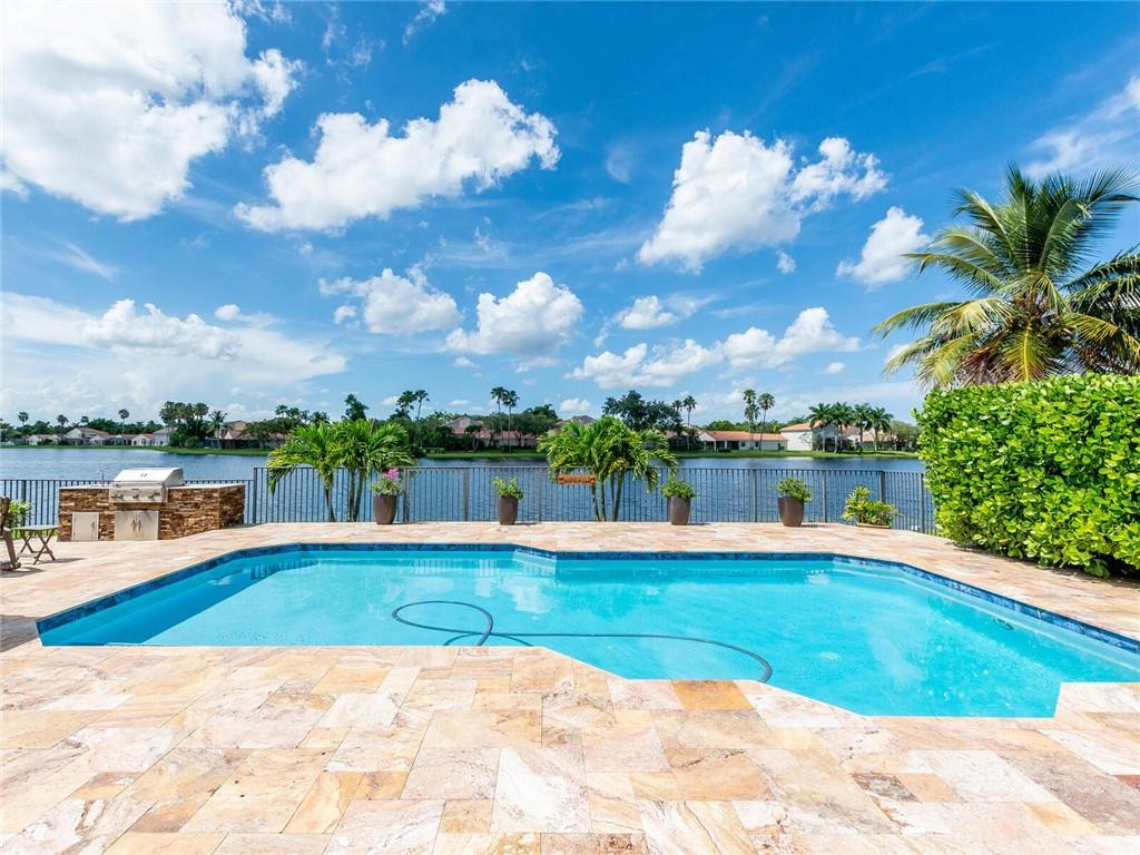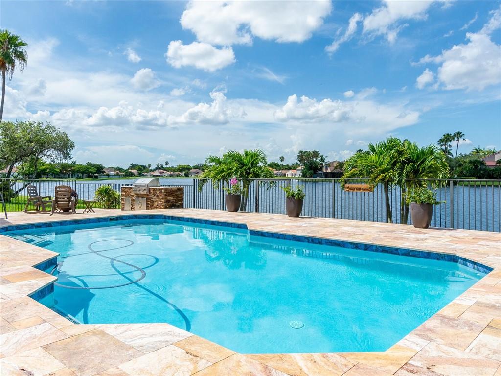 Wow!! Absolutely Stunning!! Premium waterfront location with expansive views! Full impact windows & doors. Updated kitchen and baths, wood cabinets, high volume ceilings, crown molding, travertine floors, walkway and patio. Kitchen features center work island, SS appliances, wood cabinets, wine cooler, under cabinet lighting, separate breakfast area. Roof replaced. Master and 2 bedrooms on 1st floor, 2 bedrooms upstairs with high end laminate flooring and updated bath. Incredible pool/patio area with extended travertine deck, built-in grill, large covered area and fenced yard. Fabulous location within walking distance to Country Isles Elementary, Publix, Town Center and Parks. Won't last!!