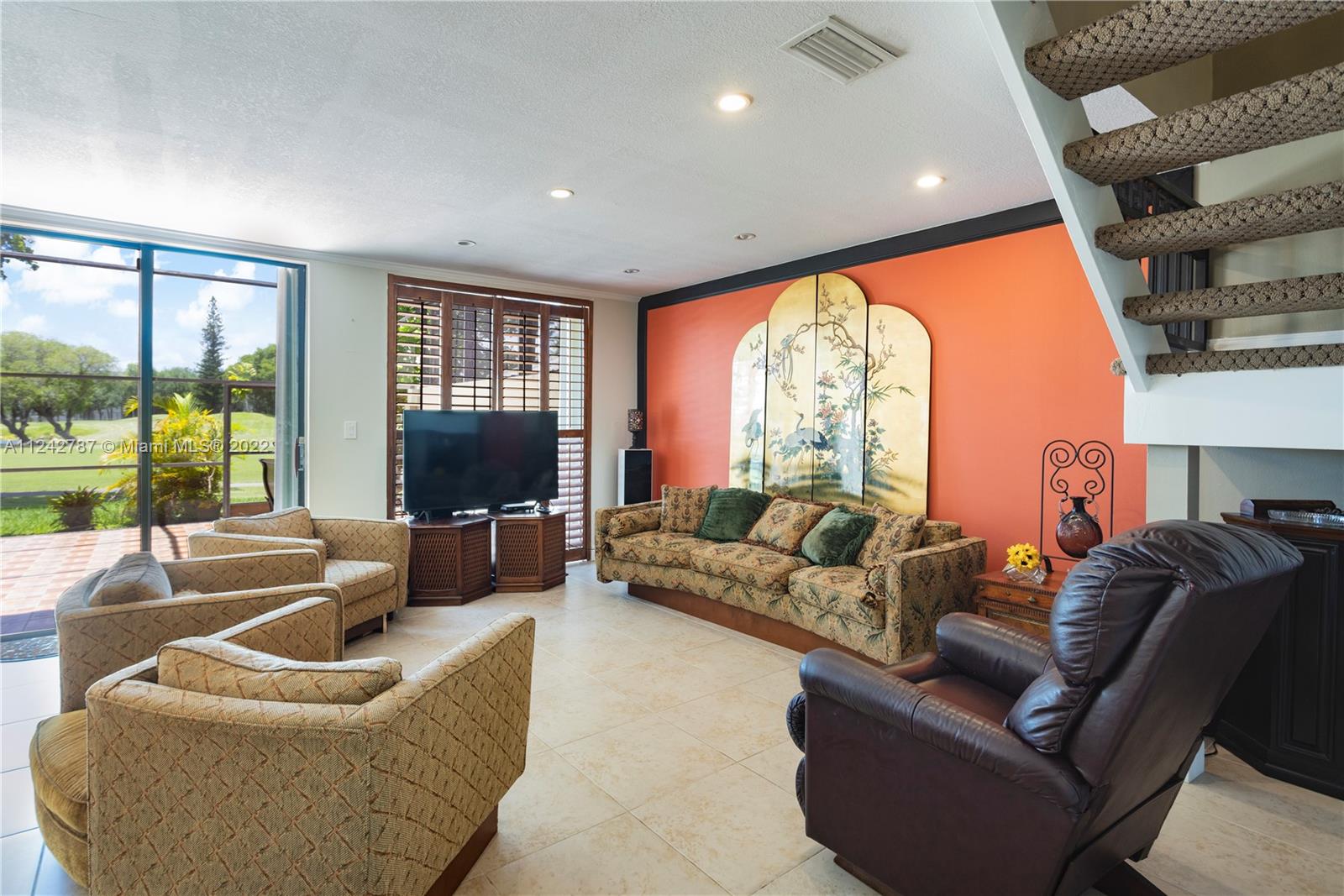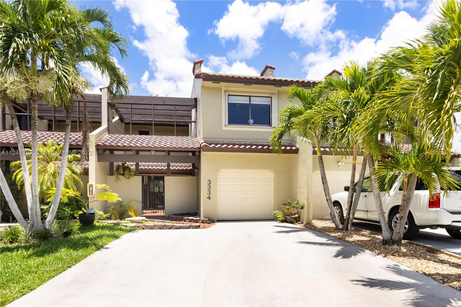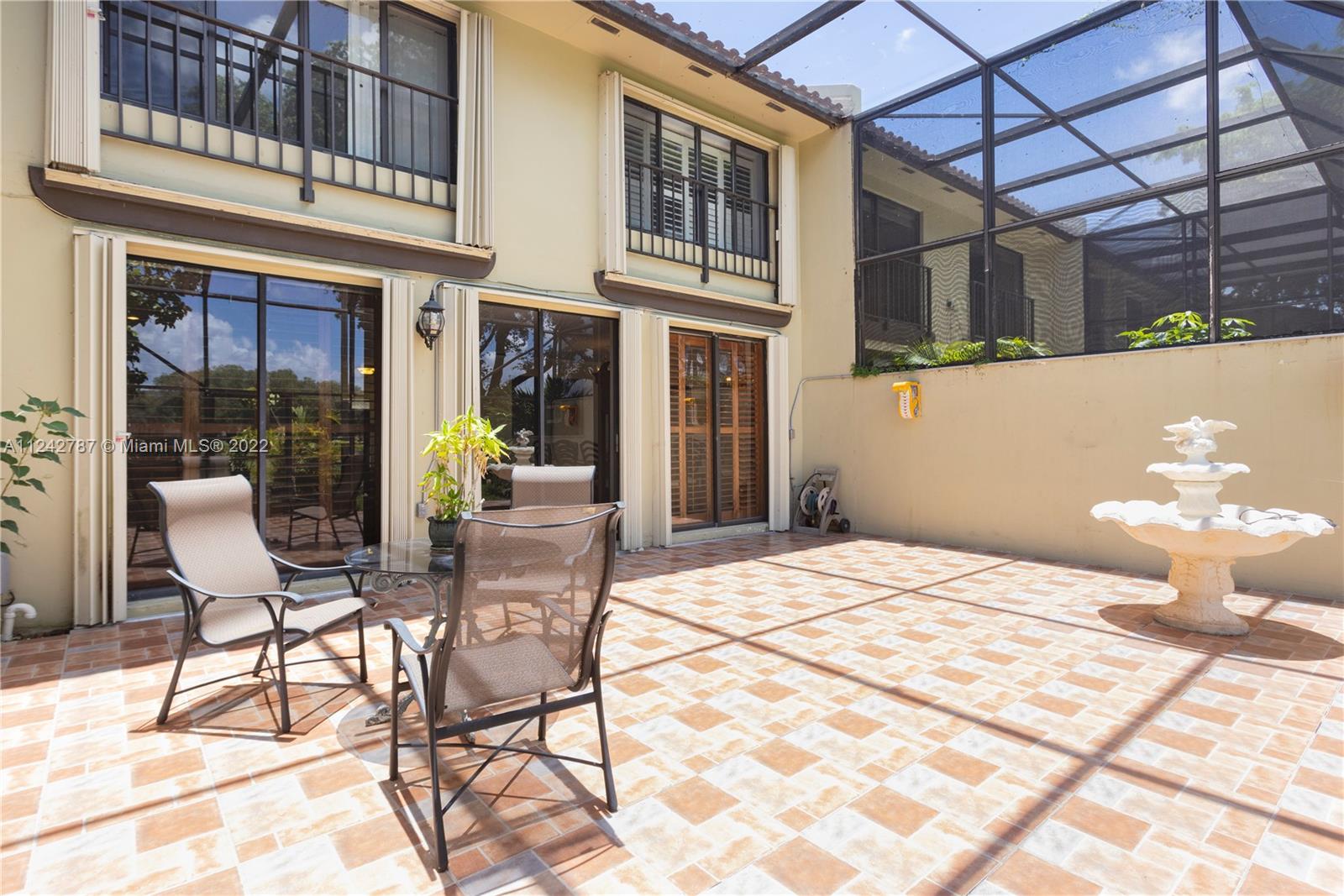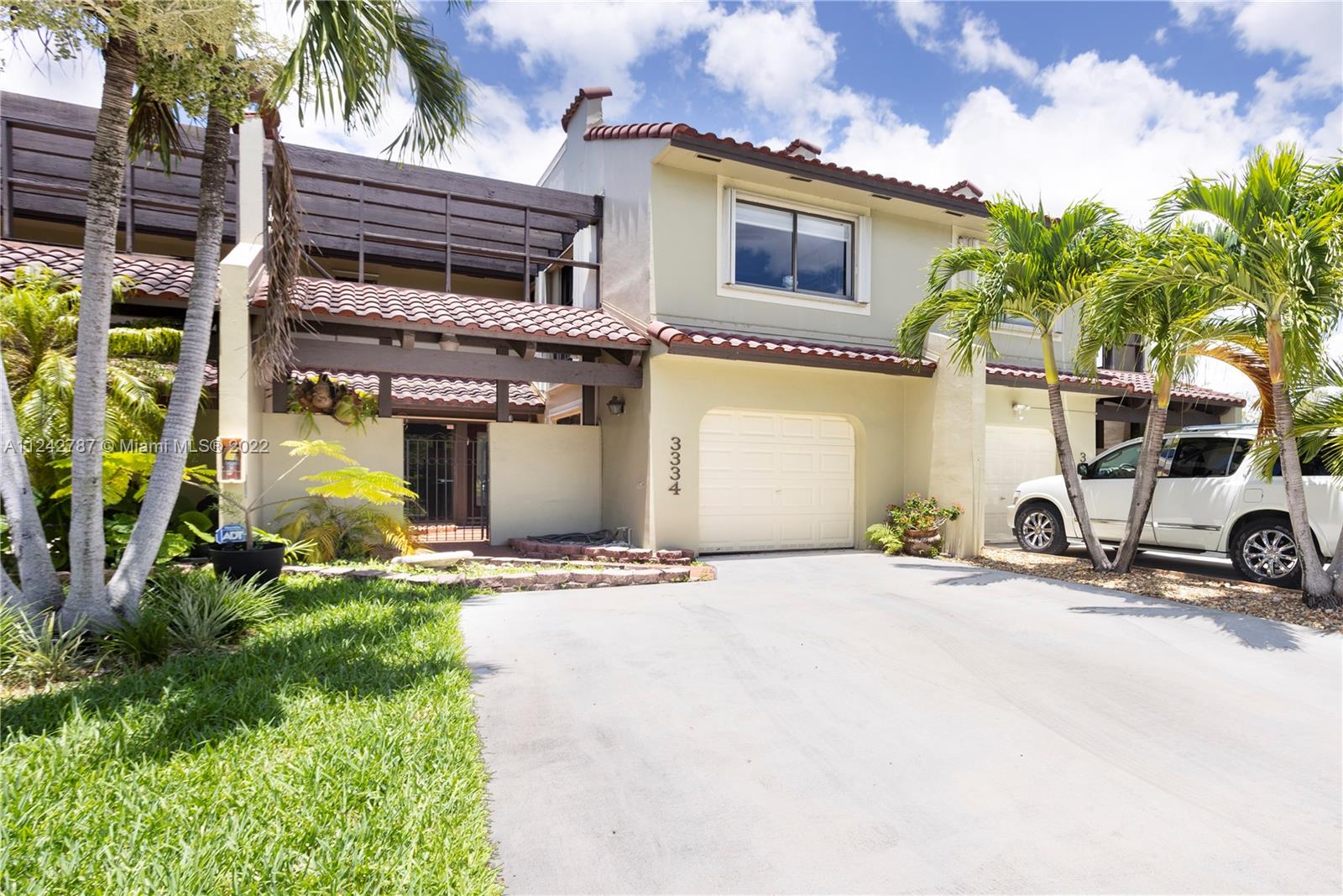 Beautiful two story Spanish style townhouse with golf and lake view. Excellent location, minutes from MIA, restaurants, shopping, entertainment, schools, and the new Jackson Hospital. Easy access to Palmetto Expressway and the Turnpike. Wood laminate flooring on the second floor and tile in main floor. Kitchen has stainless steel appliances. Gated community offers tennis, basketball, pool, clubhouse, golf, and gym. All bedrooms are located upstairs. Security on the property 24/7. First floor half bath converted to full. Garage can be converted to a 4th room and is fully tiled. Washer and dryer included.