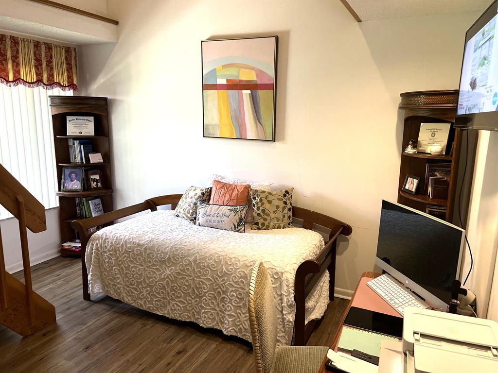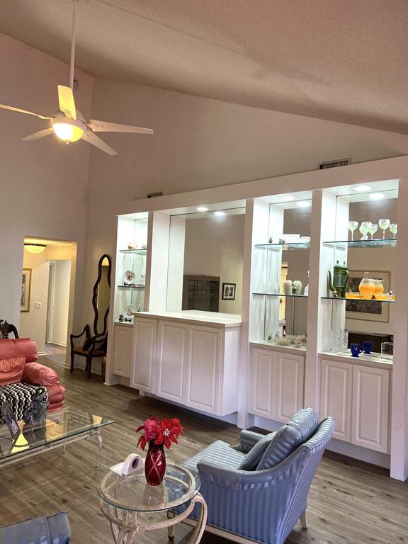 Spacious 3 bedroom, 2 bath single family home in desirable Villas of Bear Lakes Estates. Updated kitchen counter tops, and stainless-steel appliances. Recently installed wood flooring throughout. Vaulted ceiling, with lighted built in welcomes you into the living area. Large patio, and access from Master bedroom. Home is situated on quiet cul de sac, with a large backyard. Large laundry room, with new washing machine, and sink. Central Vac. Bonus loft in second bedroom, perfect as a playroom or office. Master bedroom has 3 closets and spacious master bath. All bedrooms come with large closets. Tennis courts and Pickle Ball Courts Bear Lakes Country Club very near, offers golf and tennis memberships. Close to outlets, Clematis, and I-95. A must see in an elegant, gated communit