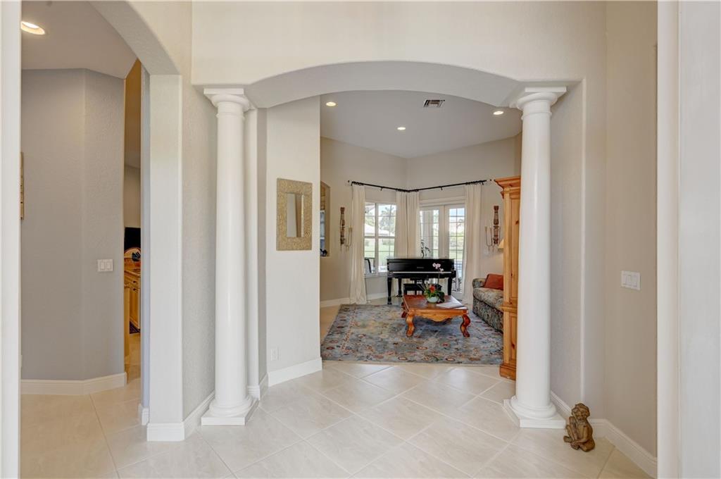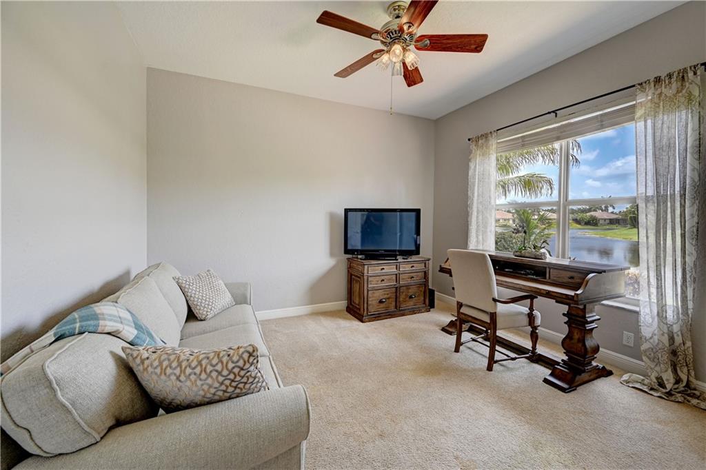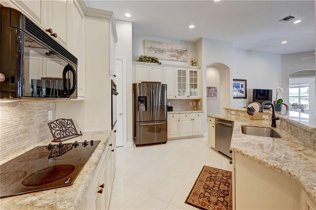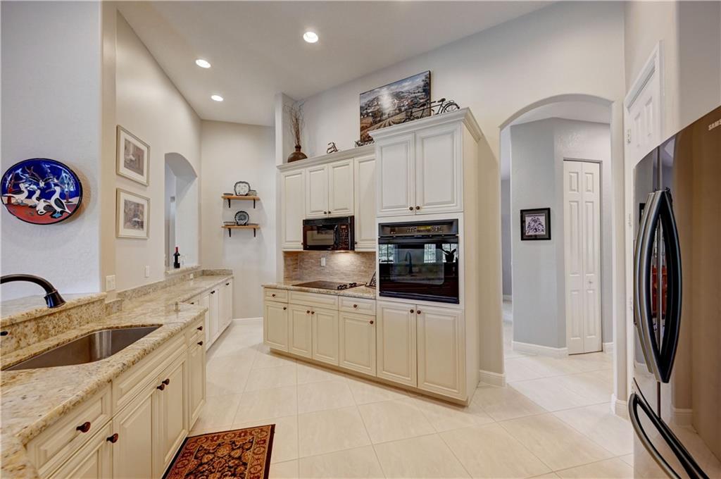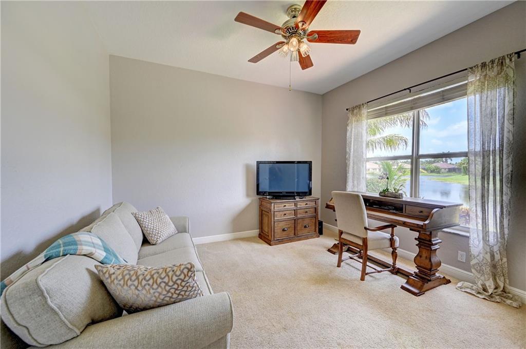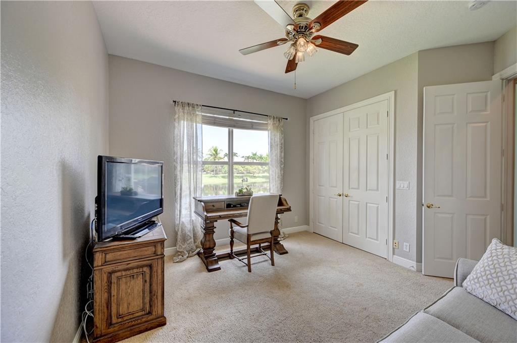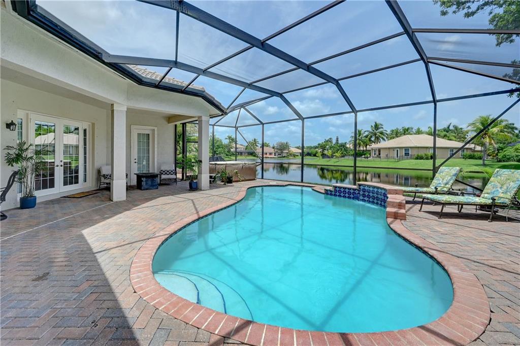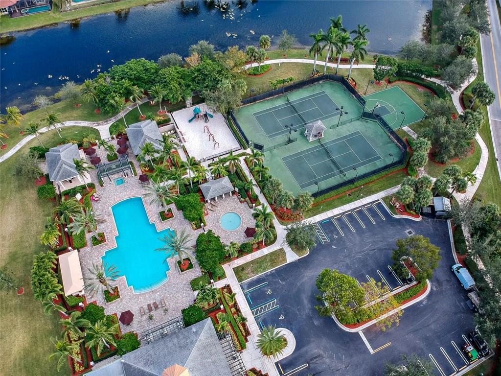 4 Bedrooms, 3 1/2 Bathrooms with pool & water views and 3-Car garage! Large master suite with sitting area and his & hers walk-in closets. Updated kitchen. New guest shower. Generator transfer panel. Maintenance includes Cable TV, Internet, Central Station alarm monitoring ++. Gated community with 24-hour guard gate, clubhouse, fitness room, tennis courts plus more.