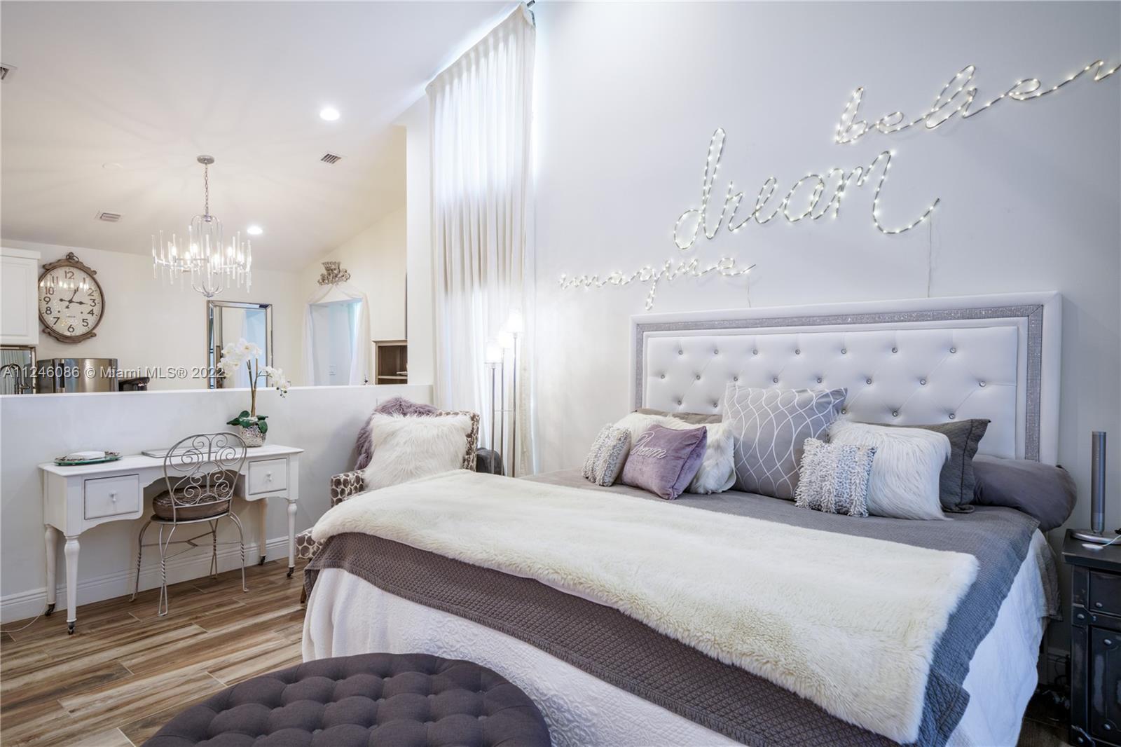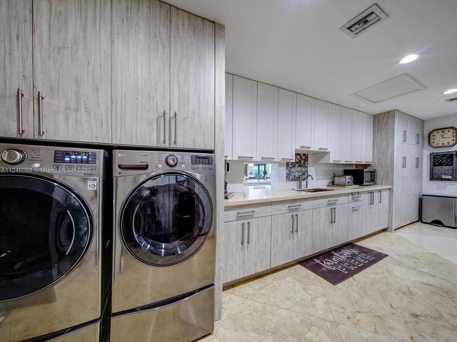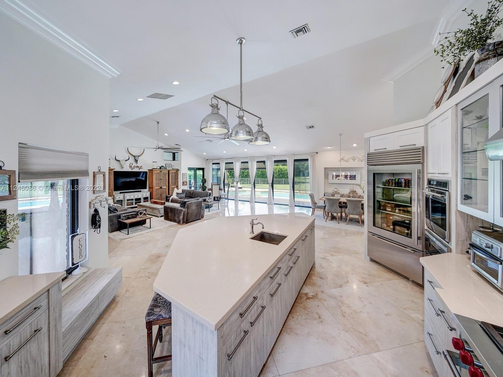The perfect primary residence or Florida retreat. Luxurious 5-bedroom/5.5-bath home. Fully updated with high-end finishes, and amenities. Featuring a true Chef’s Kitchen with Wolf, Sub-Zero and Miele appliances, a second caterer's kitchen, a family-friendly open living/entertainment area as well as a split bedroom plan with 4-ensuites all with custom walk-in closets, and a separate game room plus the primary master suite in its own private wing of the house; complete with a showstopper designer walk-in closet and huge bath with separate wet room. Also, a 1,000-gallon whole house generator, impact glass throughout, marble floors, a new saltwater pool system, and situated on an acre corner lot with lake views. School Bus pick-up inside. Brochure & video tour available upon request.