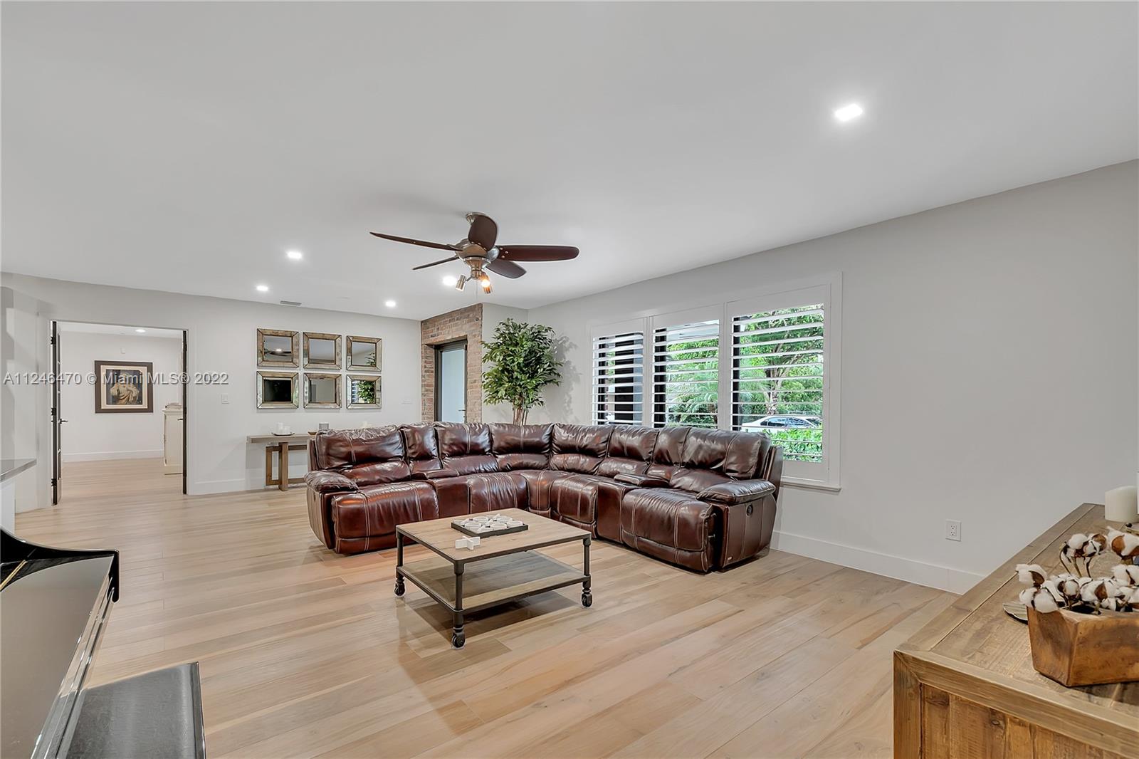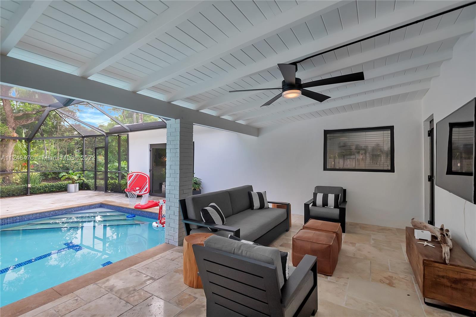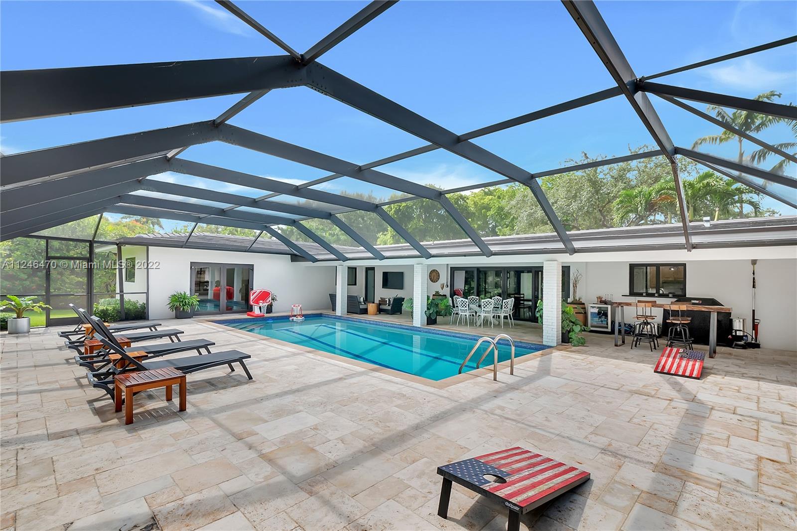 Modern 4 bd, 3 bath beauty in Pinecrest, newly renovated & ready for you! Grand entry w/ charming, exposed brick, opens to large entertaining spaces w/ clear view to back patio. Formal dining area off the kitchen which features wood cabinetry, subway tile backsplash, granite countertops & stainless appliances including double ovens. Warm blonde wood plank tile flooring. The bdrms are spacious w/ lots of light, plantation shutters & stylish, remodeled baths. Fabulous master suite w/ double walk-in closets, dual sinks & view out to the pool. Huge indoor laundry/utility rm. Impact windows/doors, new flat tile roof, circular driveway, 2 car garage. Spacious screened travertine patio w/ deep overhang & pool. Lush yet perfectly manicured landscaping, including a tranquil pond w/ waterfall.