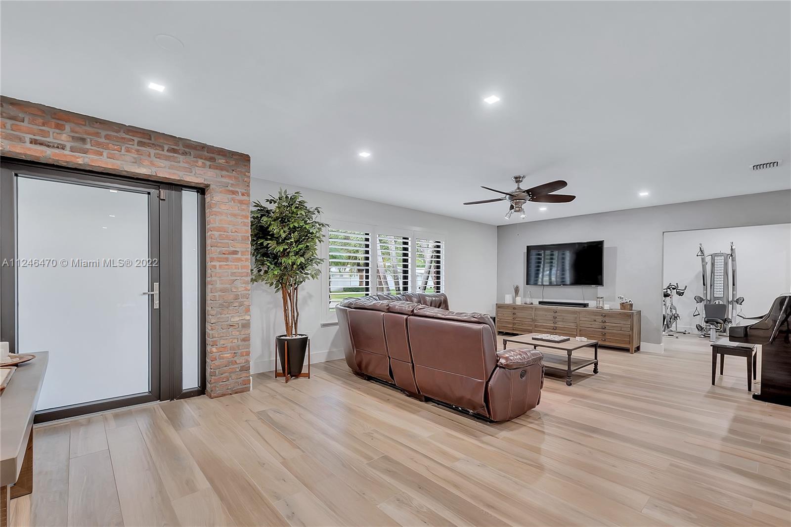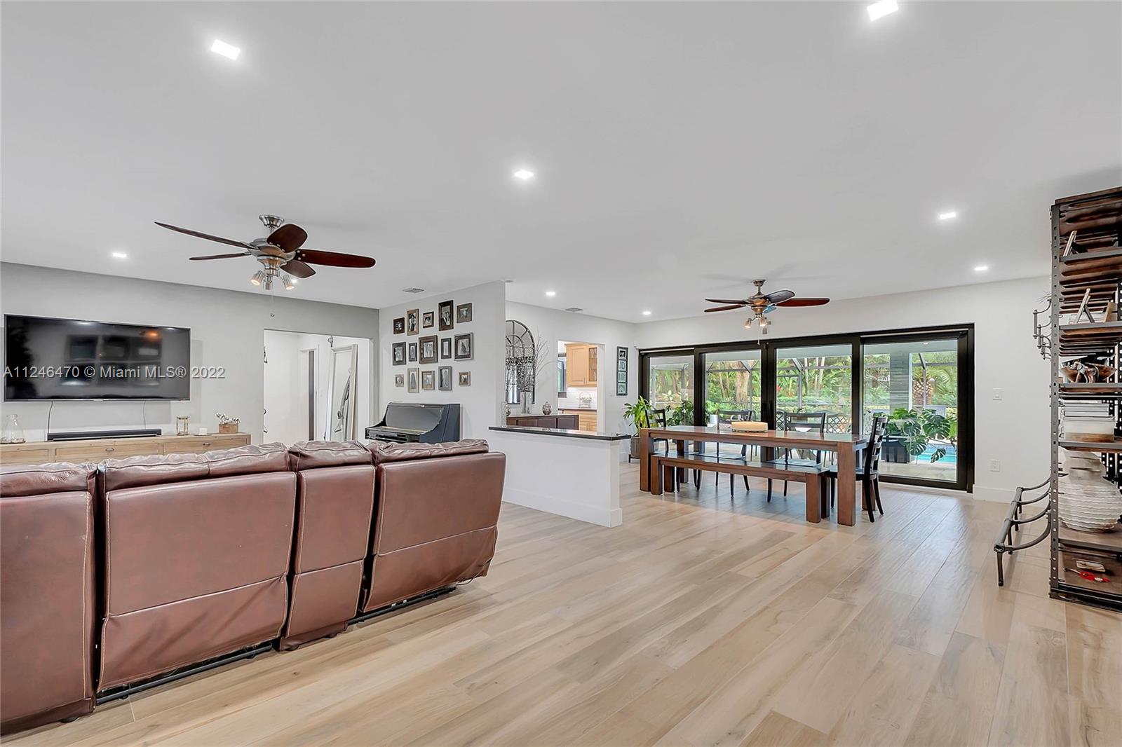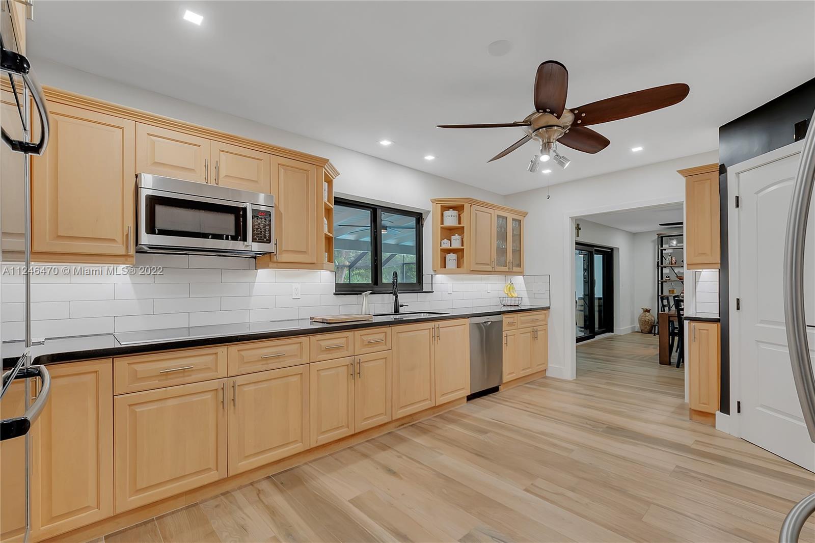 Modern 4 bd, 3 bath beauty in Pinecrest, newly renovated & ready for you! Grand entry w/ charming, exposed brick, opens to large entertaining spaces w/ clear view to back patio. Formal dining area off the kitchen which features wood cabinetry, subway tile backsplash, granite countertops & stainless appliances including double ovens. Warm blonde wood plank tile flooring. The bdrms are spacious w/ lots of light, plantation shutters & stylish, remodeled baths. Fabulous master suite w/ double walk-in closets, dual sinks & view out to the pool. Huge indoor laundry/utility rm. Impact windows/doors, new flat tile roof, circular driveway, 2 car garage. Spacious screened travertine patio w/ deep overhang & pool. Lush yet perfectly manicured landscaping, including a tranquil pond w/ waterfall.