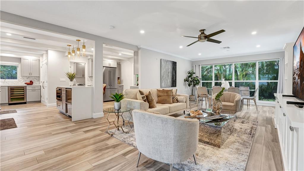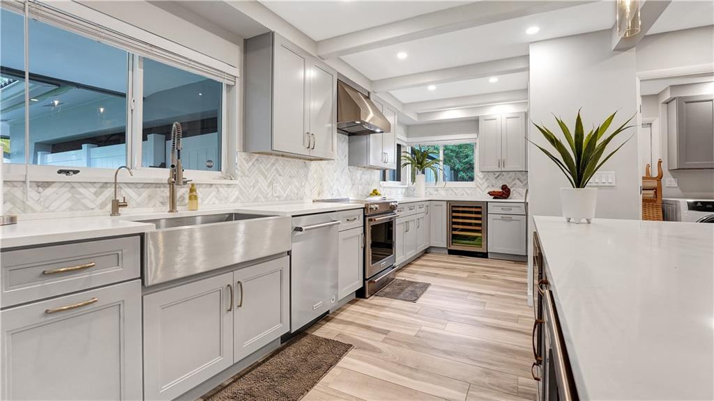 Remodeled. East of Bayview Drive. 2022 brand new salt water pool. KitchenAid w/ under counter two-drawer cooler + a wine cooler, microwave drawer, French door fridge/freezer, quartz island waterfall, marble backsplash and a huge pantry. Laundry room w/ full size W/D and utility sink. Porcelain "wood" flooring throughout. Lush landscaping. New air conditioning. Bayview Elementary school district. Move-In ready!