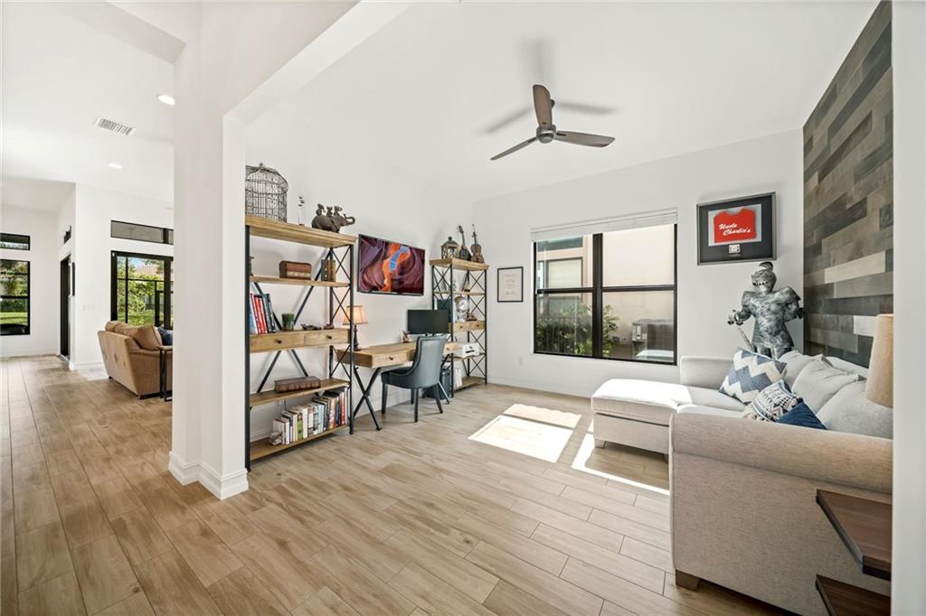 Amazing opportunity to live in the upscale 55+ Four Seasons community without waiting a year to build your home This striking home is on a premium lot and offers 2 bedrooms, 2 1/2 bathrooms plus a den, a 3-car garage and beautiful oversized screened-in lanai with a picturesque private view where you can relax and enjoy Florida’s weather all year round. Open floor plan with wide entrance foyer connecting the kitchen to the dining room, living room offering the perfect balance for casual or formal entertaining This lovely home features many MUST SEE upgrades such as gourmet kitchen, impact windows, , ceiling fans throughout, custom closets, epoxy flooring in garage and much more The four star resort style community features a grand clubhouse with 2 swimming pools and much more!