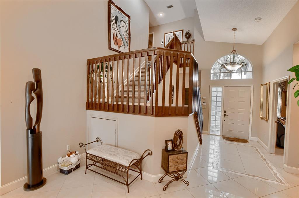 Two story home in Palomar at Boca Pointe with master and den/bedroom down plus 2 bedrooms up! This lovely home sits in perfect location with southern exposure and golf course behind home. Large patio has hedge for privacy! Neutral tile on first floor. Two bedrooms that share a bath upstairs. Built in bar in living room and formal dining room. Kitchen has granite tops, stainless appliances, double oven and extra built in cabinets for serving. Separate laundry room. Large storage area under stairs. master bedroom has nice size walk in closets. Priced to sell.