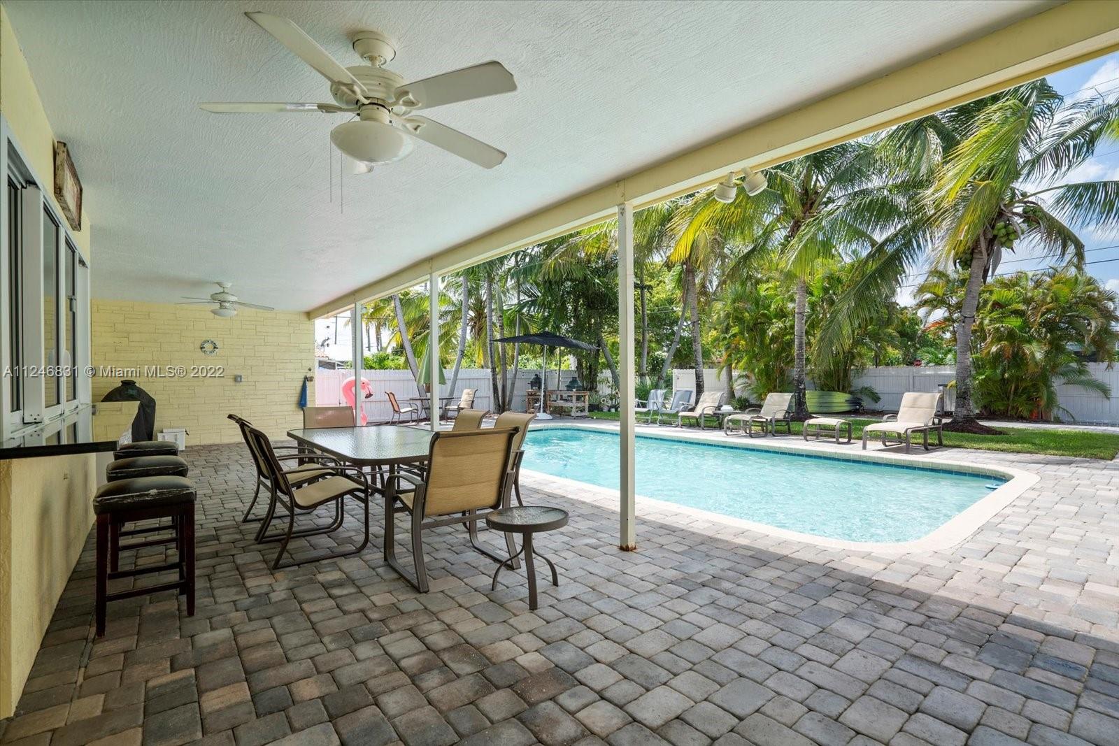 READY TO MOVE IN. Get ready to relax in this beautifully updated 4 Bedroom/2 Bathroom on a large corner lot. All of the upgrades are done, it’s ready to enjoy. Relaxation awaits on the oversized paver pool deck and patio. The saltwater pool is surrounded by lush tropical palm trees. There is plenty of room for your boat or RV on the additional 46’x13’ paver boat/RV pad (side street entry). Gorgeous Dining Room with cabinets, granite, and wine cooler. Kitchen has been totally upgraded with granite counter tops, appliances, and marble top on island. Both bathrooms and all flooring has also been beautifully done. All impact windows and doors. Roof (2015). A/C Central (2018). Garage cabinets and epoxy floor. Electrical Service updated. Samsung Washer and Dryer.