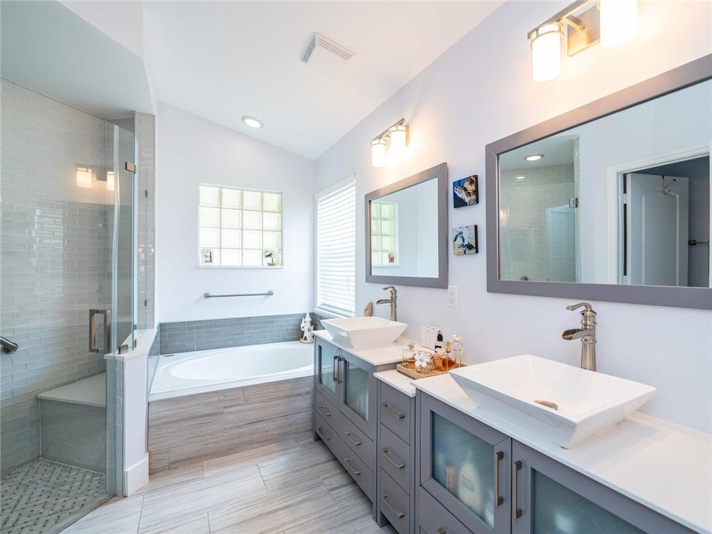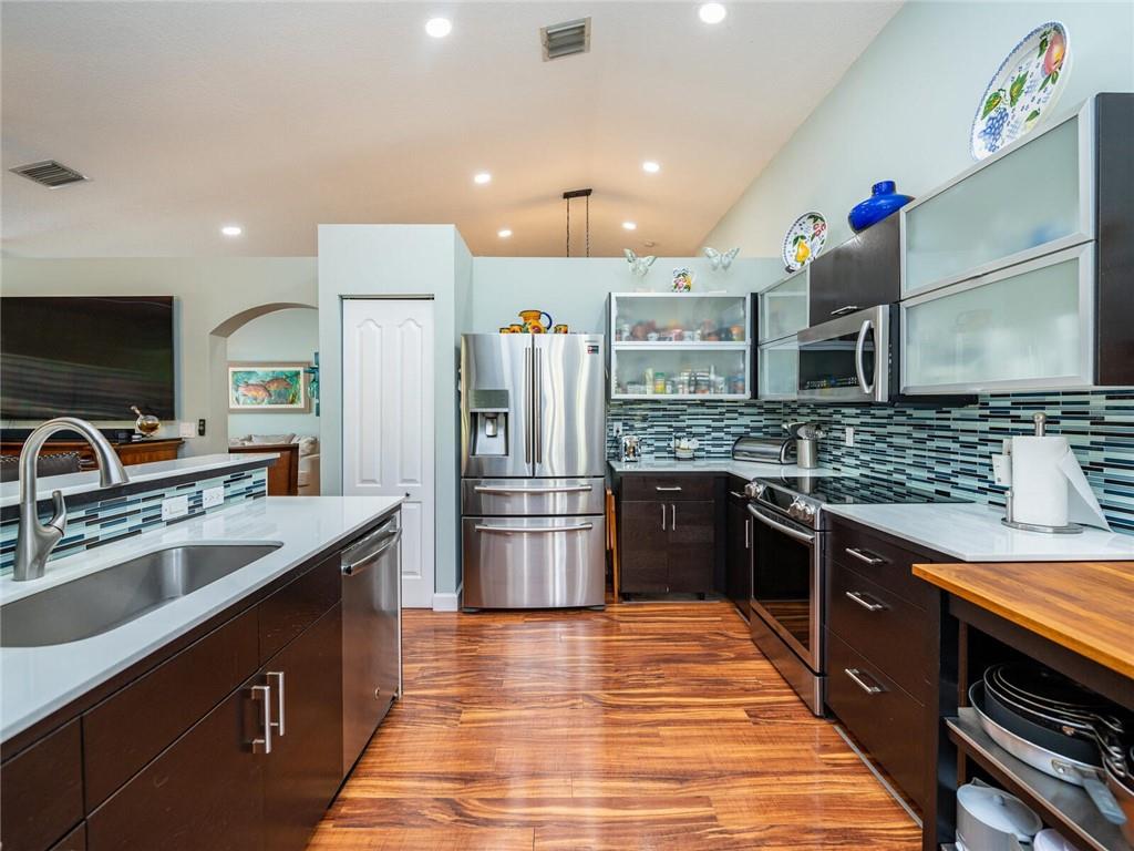 BIG REDUCTION!! WANT COMPELETLY REMODELED HOME? THIS IS IT! OPEN HM CHANGED TO 8/13, 1 TO 3. PICTURES SHOW WHY. TILE ROOF/WASH&DRY-2022.AC 2021.ACCORDION SHUTTERS. HURRICANE GARAGE DR. ONE OF BEST KITCHENS WE HAVE SEEN-CUSTOM COMPRESSED GLASS COUNTERS/LIFT UP CABINETS/BREAKFAST BAR TO FAMILY ROOM/2 PANTRIES/EXTRA WOOD COUNTER SPACE/LOTS OF STORAGE SPACE/FRENCH DR FRIG. TRULY BEAUTIFUL PATIO/YARD W/8 PERSON SPA/TIKI HUT KITCHEN W/ELECTRIC/CUSTOM TRAVERTINE TILES/ROOFED AREA/3 SHADE SAILS/13 TREES & PLANTS. ALL VINYL LAMINATE FLOORS ENTIRE HOME. MASTER BDRM W/VLTD CEILING/2 CLOSETS. EXCEPTIONALLY UPGRADED BATH W/ROMAN TUB/BIG SHOWER W/BENCH/CUSTOM VANITY.2ND BATH REMODELED. LOTS OF NATURAL LIGHT. HI HATS. NO POPCORN. ALL "A" SCHOOLS. SIDEWALKS. MUST ASK YOUR AGENT SEND 4 PG BROCHURE TO YOU.