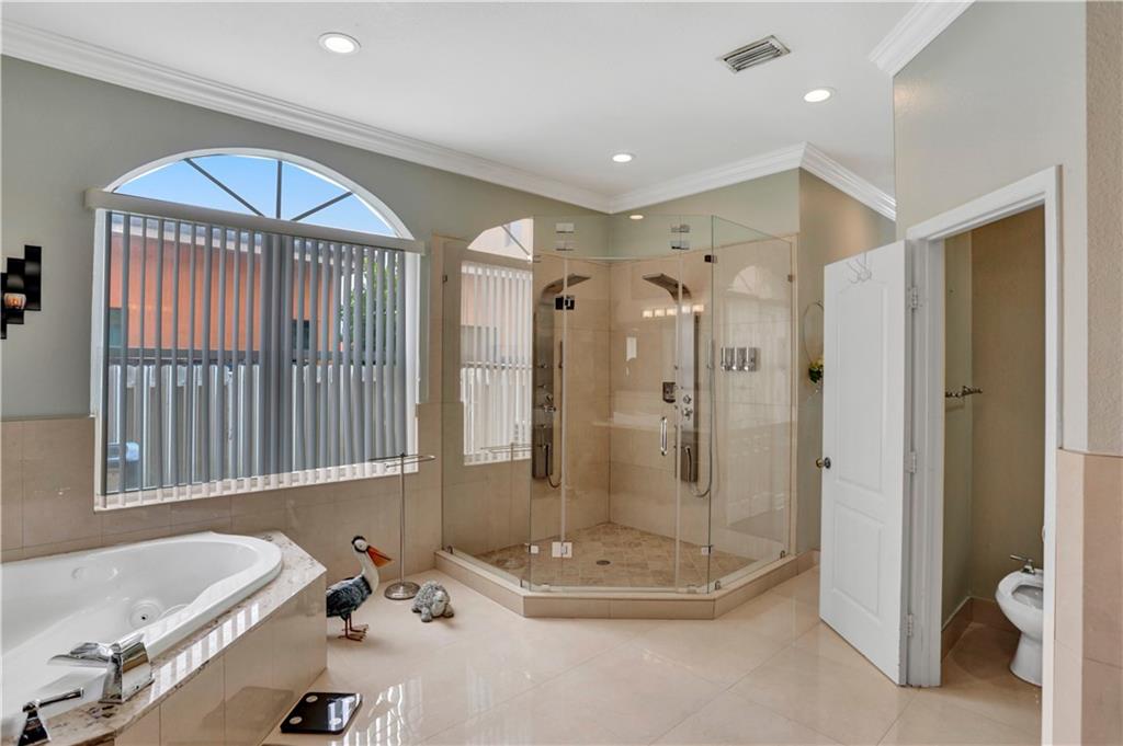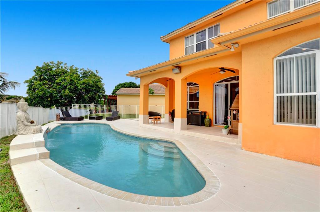 TWO-STORY LAKEFRONT HOME WITH A POOL LOCATED IN THE ESTATES OF TEQUESTA COVE. 5 BEDROOMS, 3 ½ BATHS WITH THE MASTER LOCATED ON THE 1st FLOOR. THE MASTER HAS HIS AND HER SINKS, AND LARGE BUILT-IN AND WALK-IN CLOSETS. ALL BATHROOMS HAVE BEEN UPDATED. THE KITCHEN IS UPDATED WITH BEAUTIFUL REAL WOOD CABINETS. THE SECOND FLOOR HAS 4 BEDROOMS EACH WITH BUILT-IN CLOSETS. THIS HOME HAS A 3-CAR GARAGE. A PORTION OF THE GARAGE INCLUDES A STATE-OF-THE-ART MEDIA AND BAR/PARTY ROOM AND CAN EASILY BE CONVERTED BACK. TANKLESS HOTWATER TANK AND ALARM SYSTEM. INCREDIBLE LAKE VIEWS, 40X12 POOL WITH A WATERFALL, AND EXTENDED DECK AREA FOR ENTERTAINING. THE PATIO IS COVERED AND IS EASILY ACCESSED THROUGH THE FAMILY ROOM OR MASTER BEDROOM.