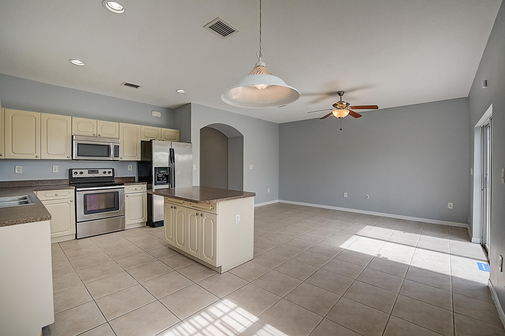 Come see this charming 3 bedroom, 2 bathroom home now on the market in Miramar! You'll enjoy preparing meals in the gorgeous kitchen with sleek counters, stainless appliances, center island and beautiful spacious cream cabinetry. Discover a bright interior with neutral tile floors and plush carpet in all the right places. Lighting, ceiling fans, and fixtures flow through areas of this home. The main bedroom boasts a private ensuite bathroom and large closet. Other bedrooms offer plush carpet and sizable closets. Lush landscapes surround this home. Don't wait! Make this beautiful home yours today.