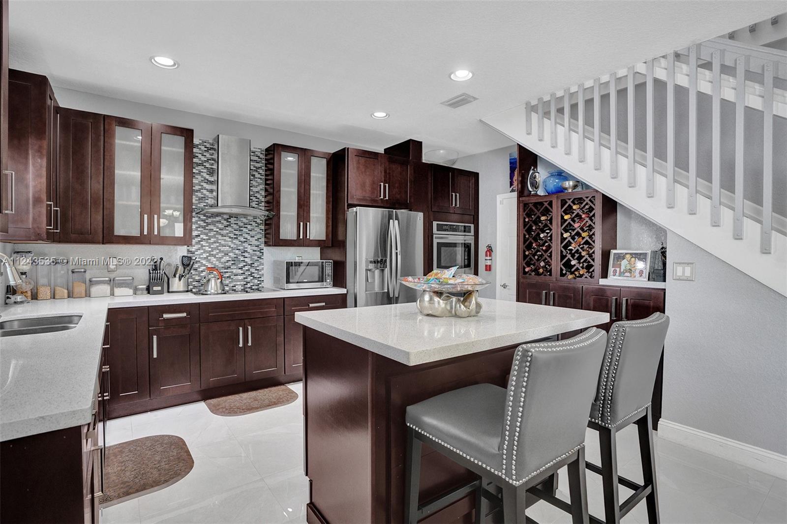 Beautiful 3/3 2-Story Home Located in Prestigious Community of Walnut Creek. Home Features a Brand-New Kitchen w/Wood Cabinet, Wine Rack, Island, Quartz Countertops, SS Appliances, Cooktop Stove w/Hood, Wall Convection Ovens, and Spacious Formal Living Rm and Dining Rm. Flooring: Porcelain Tile Downstairs, Laminate Upstairs. All Rms Located Upstairs w/Sm are for Office & Washer/Dryer. Master Bedroom Features a Walk-In Closet; Master On-Suite Features Soaker Tub & Standing Shower. Dual Sinks. Other Bedrooms Are Incredibly Spacious & Fit Queen/King Sz Beds Easily. Storm Protection: Accordion Shutters. Low HOA Fees Include: Xfinity Cable TV/Internet, ADT Alarm, 24/7 Security, Lawn Maintenance. Clubhouse Featuring Resort Style Pool, Gym, Aerobics Studio, Child Jungle Gym Area, Tennis Court.