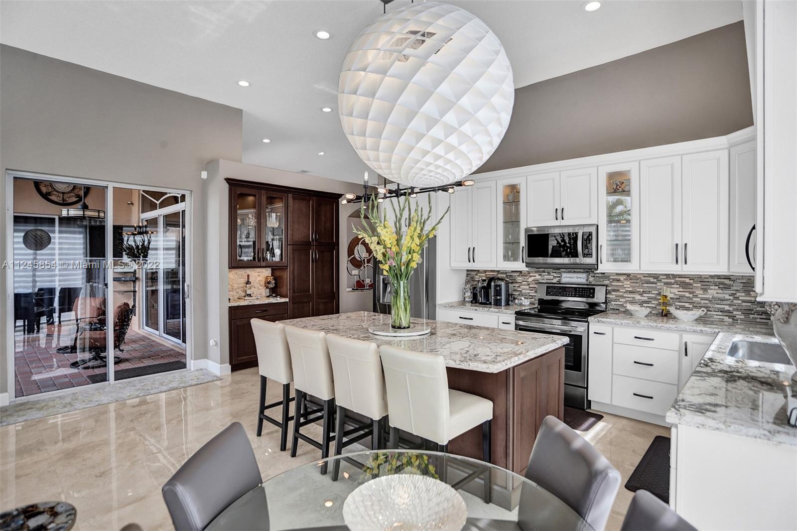Classic & elegant home with a welcoming foyer. Spectacular living room w/ breathtaking views of the nature preserve serves as the centerpiece of this stunning home.A gem in the heart of the sought-after guard gated community of Estancia. Remodeled spacious kitchen by KabCo w/oversized island & built-in dry bar, polished porcelain flooring throughout main living area & an open floor plan are only a few of the highlights.The words peaceful & pristine will come to mind when you visit this property & are immediately enveloped by the warmth of a well-loved home.Enjoy gatherings outdoors in the covered patio overlooking the lake w/paved backyard big enough for a pool. Accordion shutters throughout. This home is ideally located near top-rated schools,soccer park,major shopping & major roadways.
