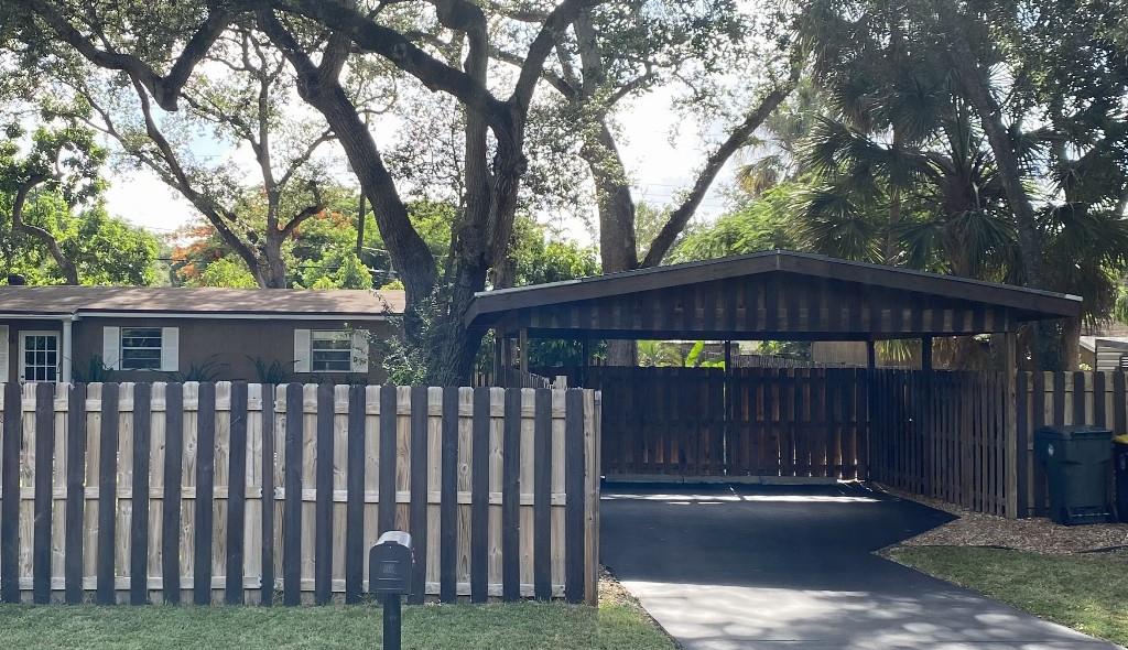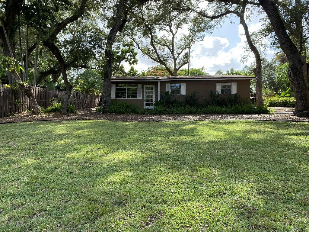 Rare park like setting, over 1/4 acre, entire property enclosed with 6' privacy fence. Walking distance to city park (two dog parks, lap pool, tennis, basketball). 3 bedrooms, full bath has Jacuzzi jet tub, 1/2 bath in owner's suite. Large room (425 sq ft) with its own AC, impact windows, can easily be converted to make the house 4-5 rooms (bedroom, office, workout rooms). Newer: roof, AC units, instant water heater, electric breaker panels inside and outside. Reverse osmosis water filtration system. Carport for two vehicles with adjacent fenced storage space. Tool shed, dog house. Trees in yard include oak, avocado, mango, mulberry, pomegranate, pineapple, aloe vera. Conveniently located near FLL airport, I-95, Turnpike, beaches, and shopping at Dania Pointe.