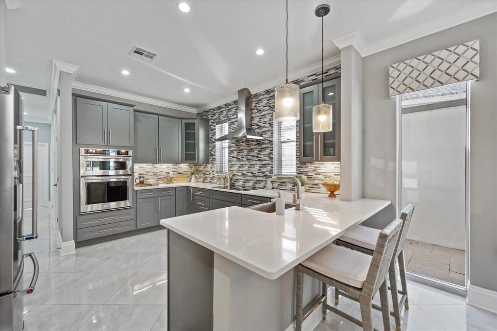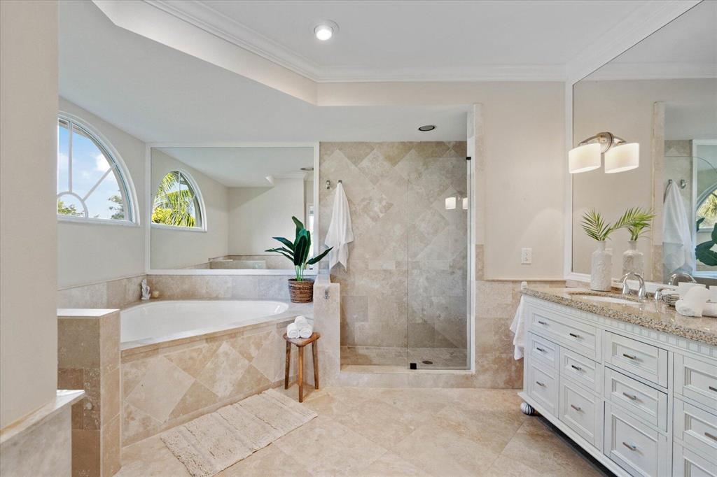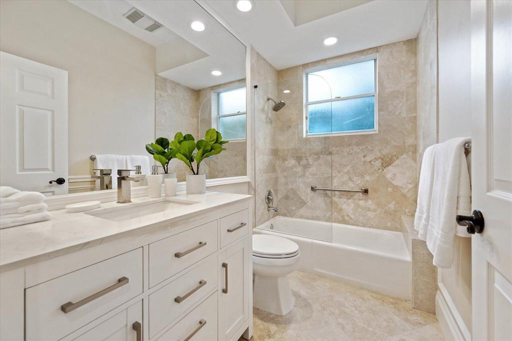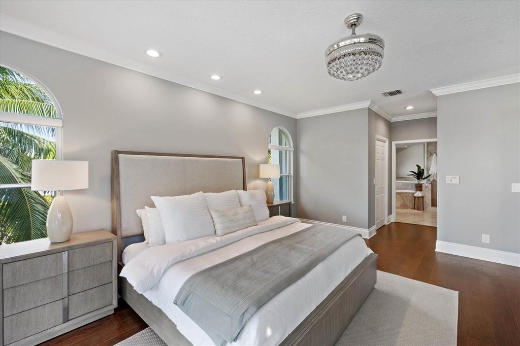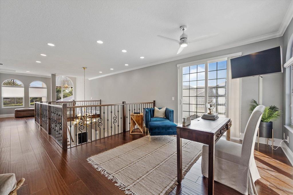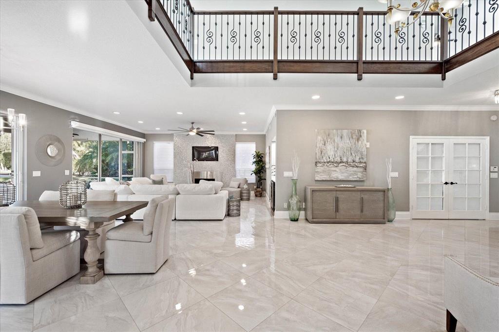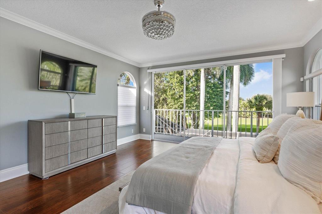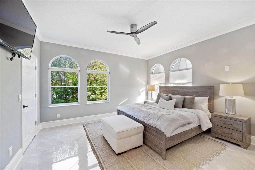 Just what you have been waiting for... Elegant & sophisticated 3 Bedroom+Loft, 3.5 Baths home with sweeping golf course views in sought-after gated community of Breakers West in West Palm Beach. Located on hedged cul-de-sac street, this home boasts manicured landscaping, Royal Palms as well as other specimen palms all high-lighted by landscape lighting. The contemporary interior finishes in this 2-story home will immediately catch your eye with its porcelain tile floors on the 1st floor, wood floors upstairs and high ceilings. The Great Room features fireplace with mosaic tile surround, wet bar and wall of sliding doors opening to a gorgeous screened outdoor entertainment patio with marble stone deck & outdoor grill/bar area. The 10' x 35'