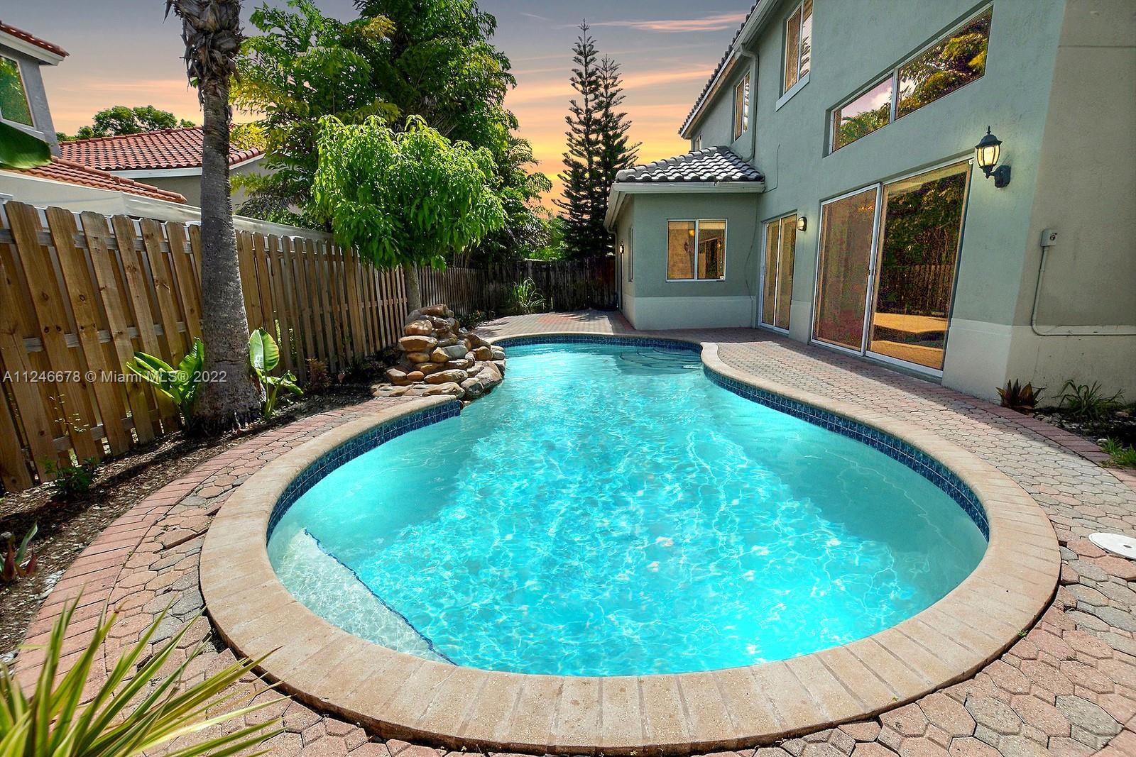 GORGEOUS 3 BED 2.5 BATH POOL HOME IN GATED SUBDIVISION OF REFLECTIONS IN HIGHLY SOUGHT-AFTER ROCK CREEK. ENJOY GORGEOUS HARD CHERRY WOOD FLOORS & SOARING CEILINGS. BRAND NEW ROOF JUST COMPLETED. SPACIOUS KITCHEN W STAINLESS STEEL APPLIANCES & DIRECT ACCESS TO PATIO. UPSTAIRS PRIMARY SUITE HAS SPACIOUS ENSUITE BATH W SEPARATE TUB & SHOWER. SPARKLING FREE-FORM POOL IN PRIVATE FENCED YARD IS THE PERFECT BACKYARD OASIS. DEDICATED LAUNDRY ROOM, NEW AC, 2 CAR GARAGE W NEW DOOR. ROCK CREEK IS A PET FRIENDLY COMMUNITY W 2.75 MILE JOG/WALK PATH, PARKS, LAKES, SPORTS COURTS, TOT PLAYGROUNDS ON TREE LINED STREETS. POOL & TENNIS CENTER OFFERS 8 TENNIS COURTS, POOL, LIT B-BALL COURTS, FITNESS ROOM FOR A SMALL FEE. ZONED FOR DESIRABLE COOPER CITY SCHOOLS & WALKING DISTANCE TO EMBASSY CREEK ELEMENTARY.
