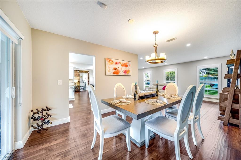 Immaculate, updated, and move-in ready! Impact windows and doors, manufactured hardwood flooring, updated kitchen, laundry room with a tub, custom blinds, black-out zebra shades, formal dining room, and a new water heater. Split floor plan with tons of storage and closet space! Both bathrooms have gorgeous subway tile in the showers. A unique accent wall in the family room adds to the character and charm. You’ll love the flow of this floor plan that leads out to the fully covered screened-in patio, with a pass-through from the kitchen, ceiling fans, and newly tiled floors. Beautiful pool with screen enclosure and large private fenced-in yard. Brand new pool heater and pump, 26 solar panels! 5 ton A/C unit and new irrigation well in 2019, barrel tile roof.