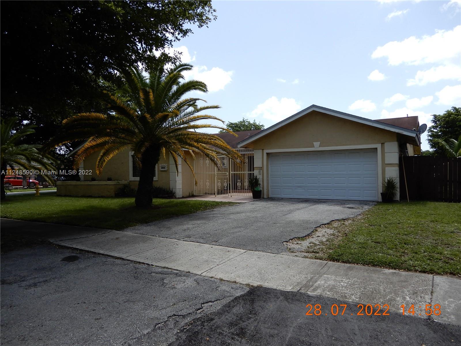 GREAT CORNER HOME IN MUCH DESIRED COUNTRY LAKE MANORS ESTATE SUBDIVISION. TAX RECORDS SAY 3 BEDROOMS, BUT IT IS A TRUE 4 BEDROOMS. UPDATED OPEN KITCHEN AND BATHROOM ROOMS, 2 CAR GARAGE, EXTRA LARGE CORNER LOT TO ACCOMMODATE POOL IF DESIRED. SPLIT PLAN, HUGE MAIN BEDROOM AND CUSTOM BATHROOM, WALK IN CLOSET, 3 BEDROOMS ON THE OTHER SIDE OF THE HOUSE. LIVING ROOM, DEN AND KITCHEN ARE OVERSIZED. GREAT HOME FOR THE FAMILY AND ENTERTAINMENT OF FRIENDS. CENTRALLY LOCATED TO ALL MAYOR FREEWAYS AND RESTAURANTS AND AIRPORTS. LOCATED BETWEEN MIRAMAR PARKWAY AND MIAMI GARDEN DRIVE AND NW 57TH TO THE EAST AND NW 67TH TO THE WEST. MAJOR PRICE REDUCTION, SELLERS MOTIVATED, BRING YOUR BUYER IN THIS WELL SOUGHT AFTER AREA!