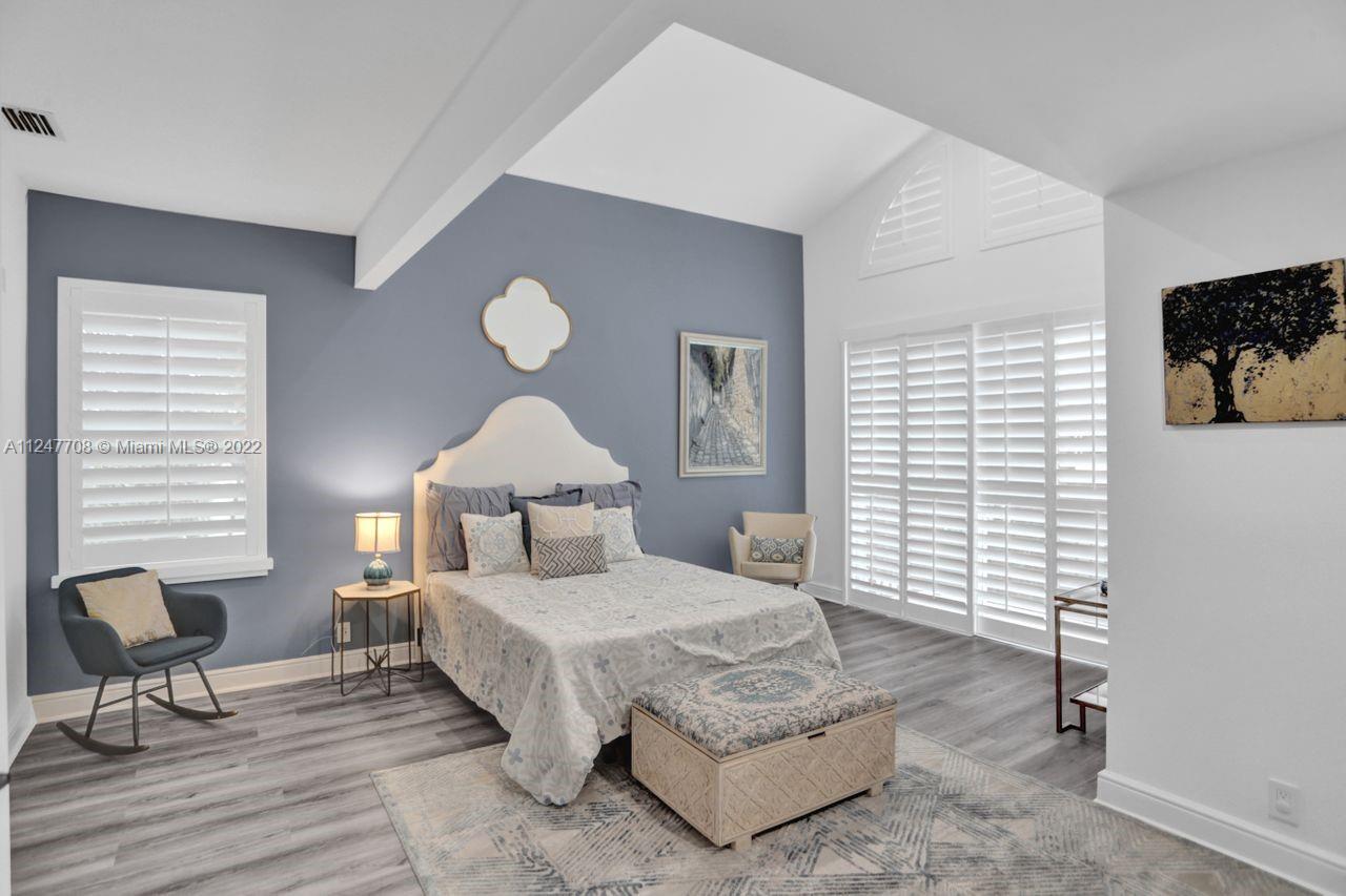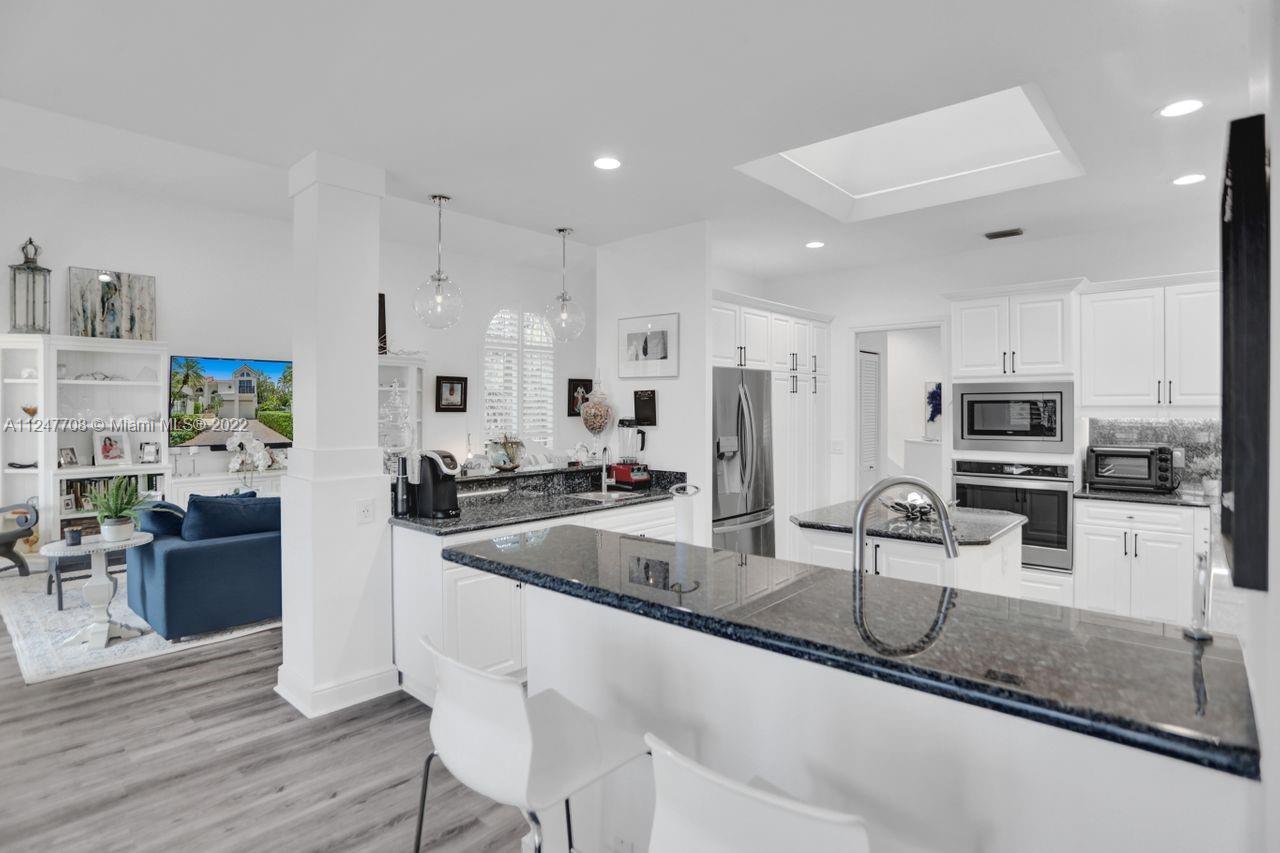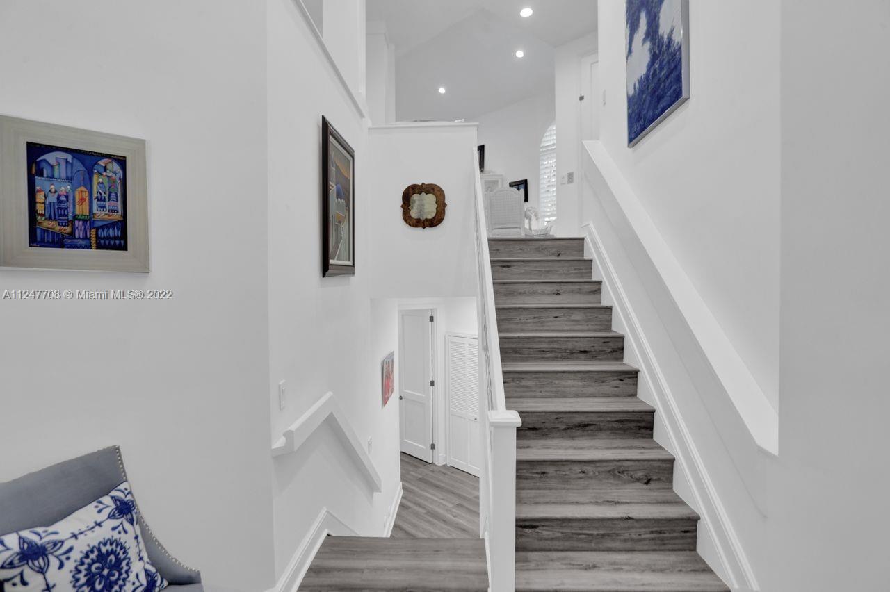 Rarely available lakefront, end unit, w/large lot, in exclusive community of Swan Lake. This quiet, secure, walled community of 47 residences, has a 24-hour manned front gate, community pool & newly remodeled clubhouse & gym. This spacious, light filled unit has vaulted ceilings, plantation shutters, brand new impact windows, washer/dryer & elevator control panel & landing system. Kitchen is open w/skylight, white cabinetry, 2yr-old stainless-steel appliances & dark grey/blue granite counters. Bathrooms have been updated to today’s tastes. Floors are luxury, vinyl plank. Unit boasts 2 large terraces overlooking the lake & waterfalls. Also has a spacious, fenced, side yard w/ artificial grass, outdoor shower plus whole house Generac generator and 2 car garage. Hurry, won’t last!