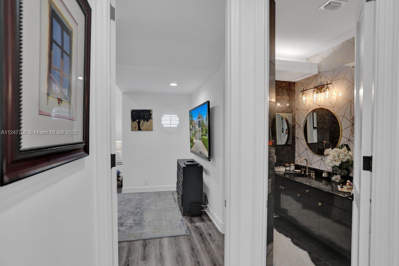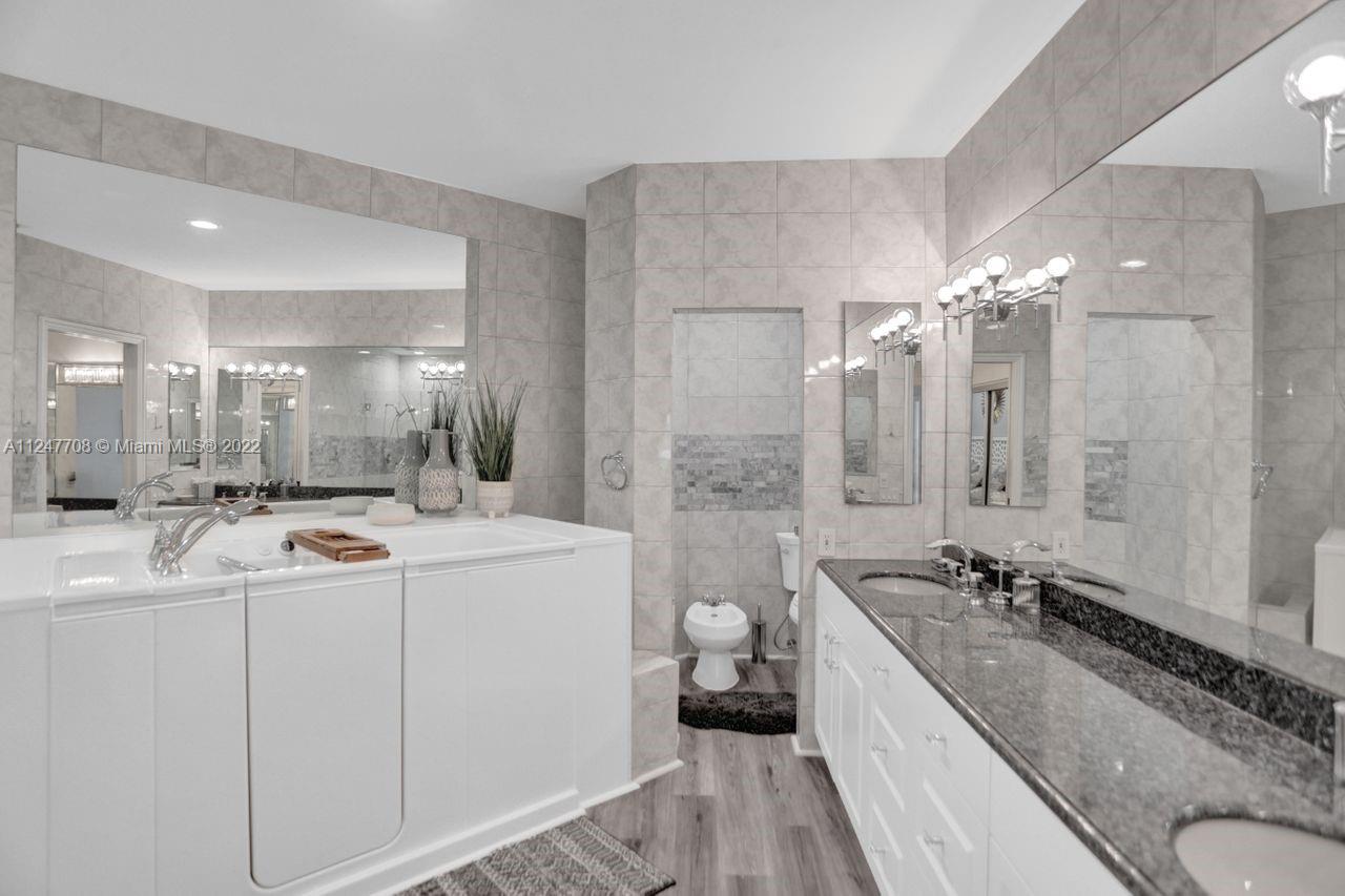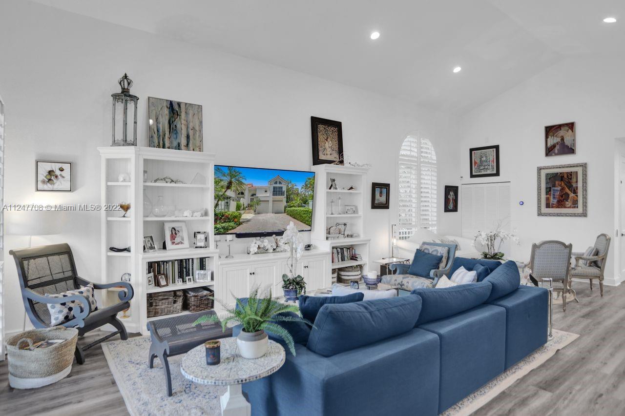 Rarely available lakefront, end unit, w/large lot, in exclusive community of Swan Lake. This quiet, secure, walled community of 47 residences, has a 24-hour manned front gate, community pool & newly remodeled clubhouse & gym. This spacious, light filled unit has vaulted ceilings, plantation shutters, brand new impact windows, washer/dryer & elevator control panel & landing system. Kitchen is open w/skylight, white cabinetry, 2yr-old stainless-steel appliances & dark grey/blue granite counters. Bathrooms have been updated to today’s tastes. Floors are luxury, vinyl plank. Unit boasts 2 large terraces overlooking the lake & waterfalls. Also has a spacious, fenced, side yard w/ artificial grass, outdoor shower plus whole house Generac generator and 2 car garage. Hurry, won’t last!